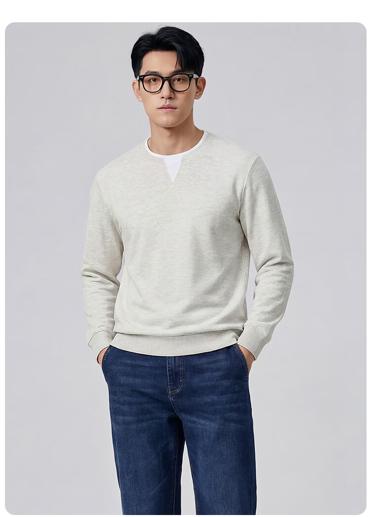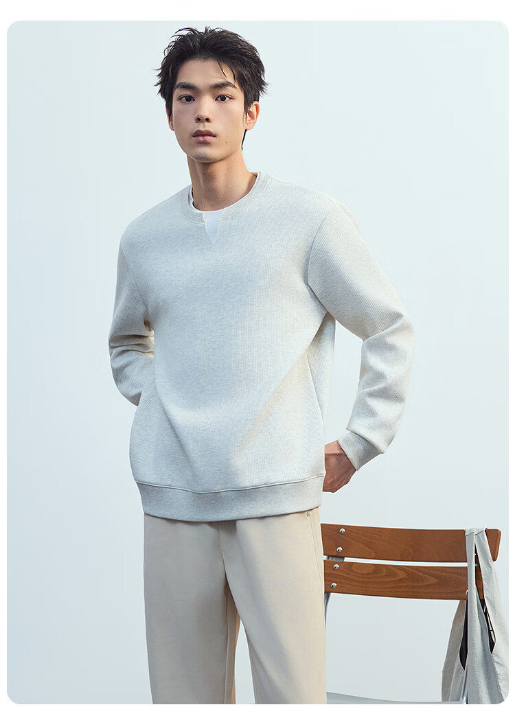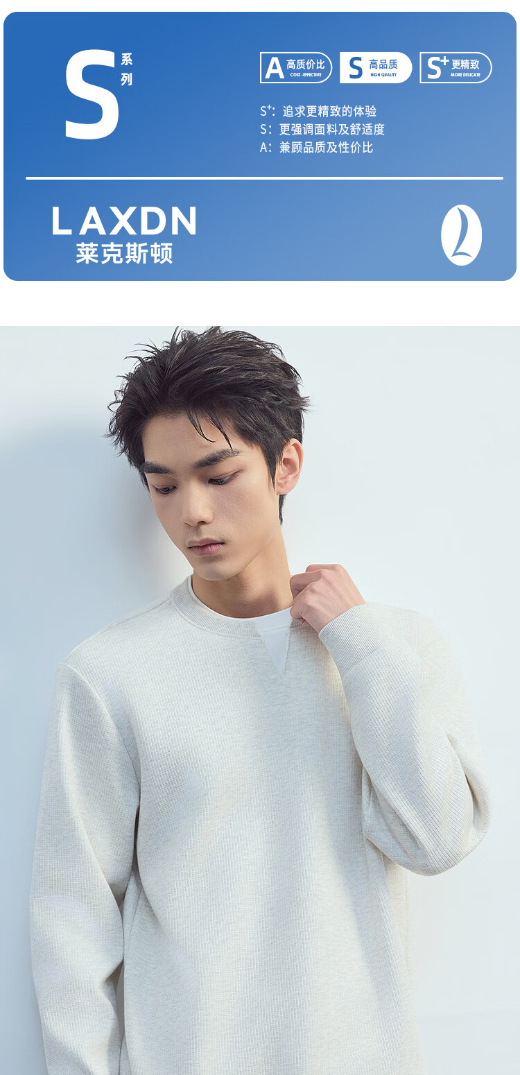 莱克斯顿(laxdn)卫衣男春秋套头华夫格假两件层次感吸湿透气简约时尚百搭长袖上衣 浅杏色 S