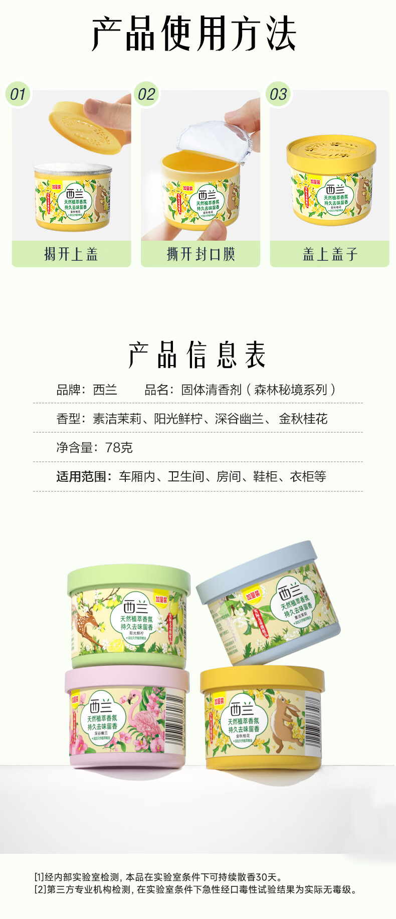西兰空气清新剂柠檬香3盒固体香薰厕所卫生间空气芳香剂除臭除异味