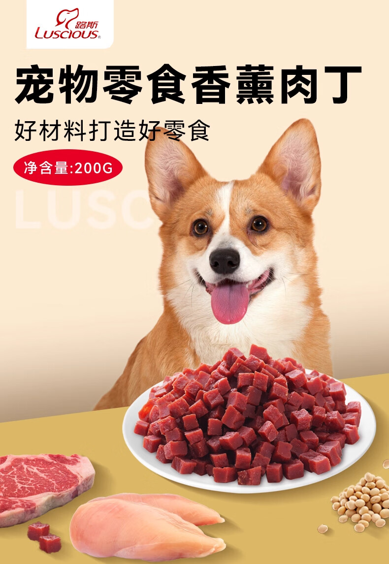 路斯狗零食牛肉粒鸡肉粒宠物狗训犬零食大中小型犬通用200g 牛肉棒200g