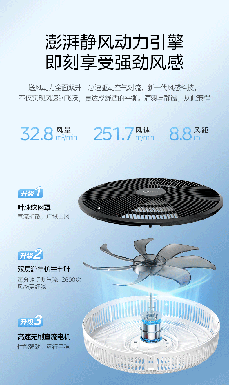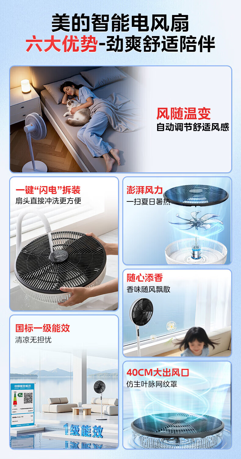 美的(Midea)落地扇语音遥控智能电风扇儿童家用台式桌面客厅卧室办公室大风力纯铜电机静音电风扇 白色bsj