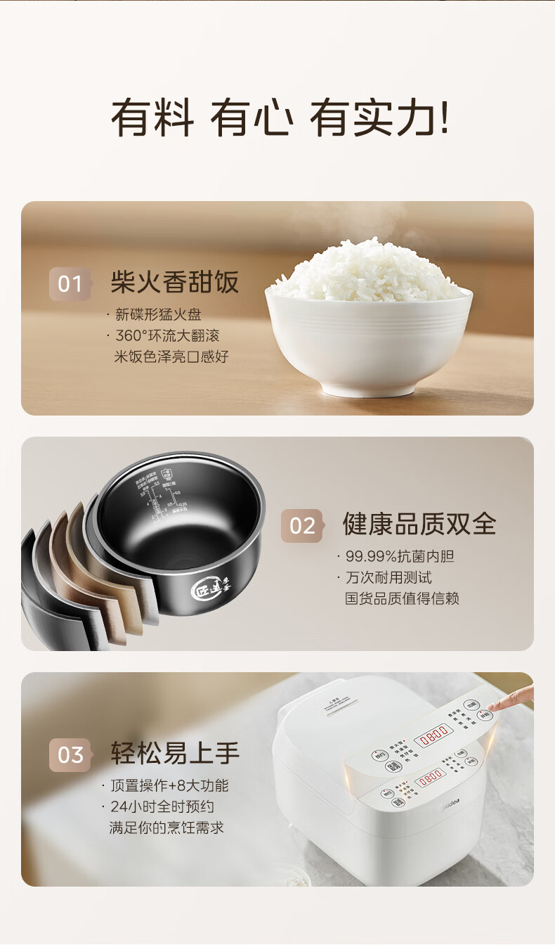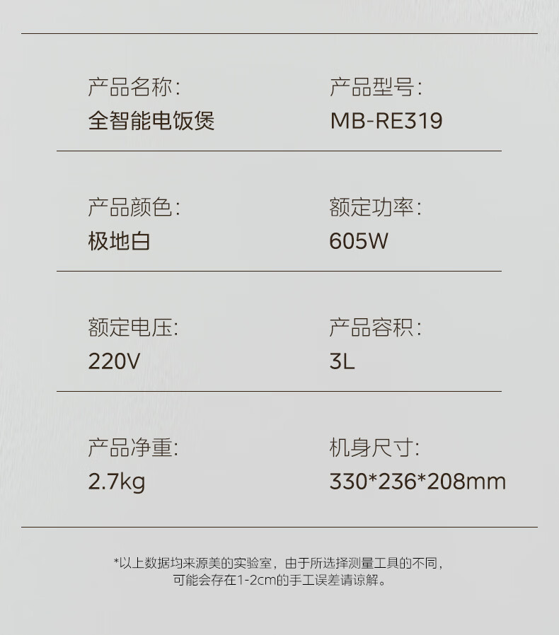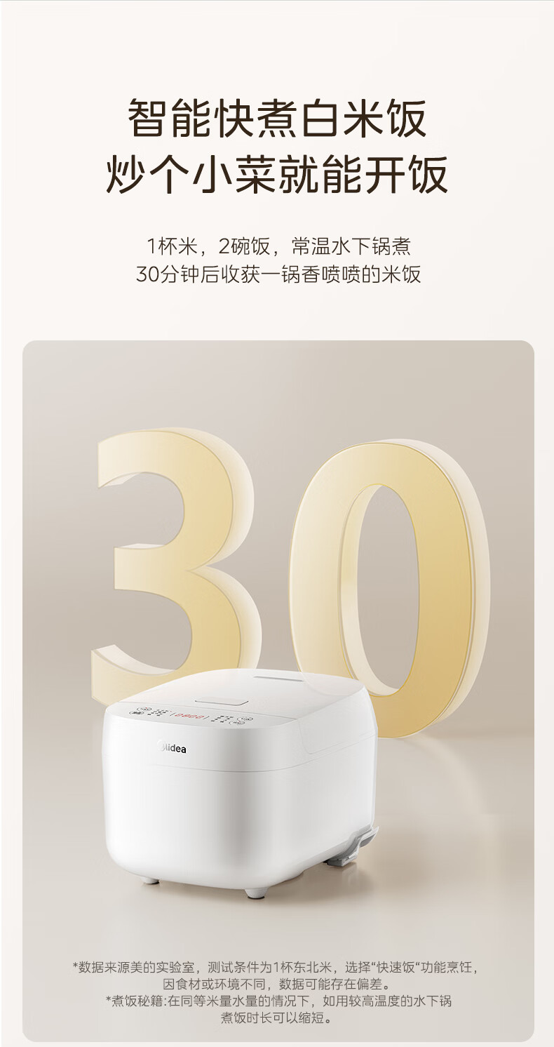 美的(Midea)电饭煲电饭锅3-4人家用3L大容量 快速饭多功能微压智能预约电饭煲 MB-RE319