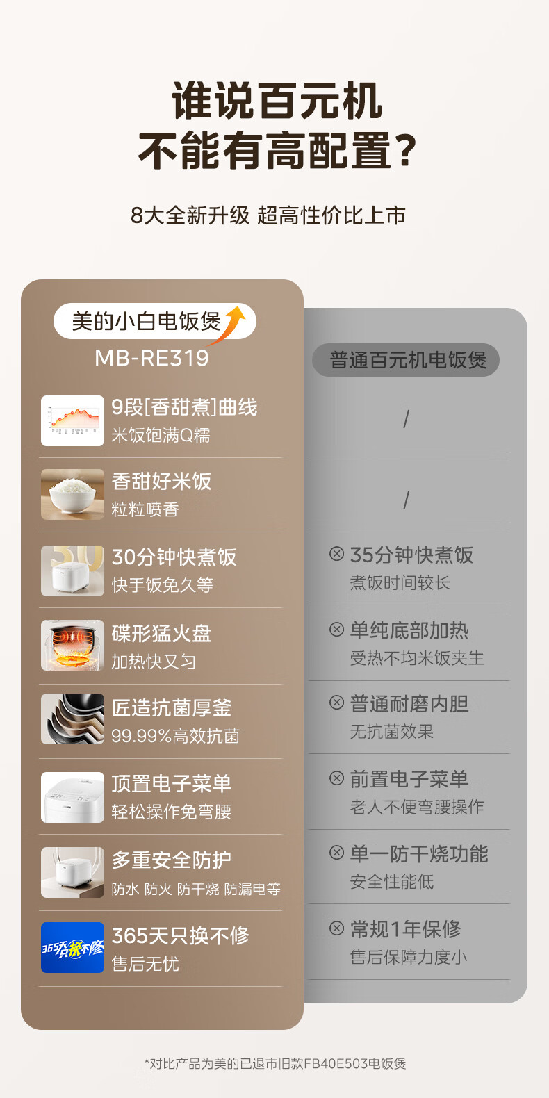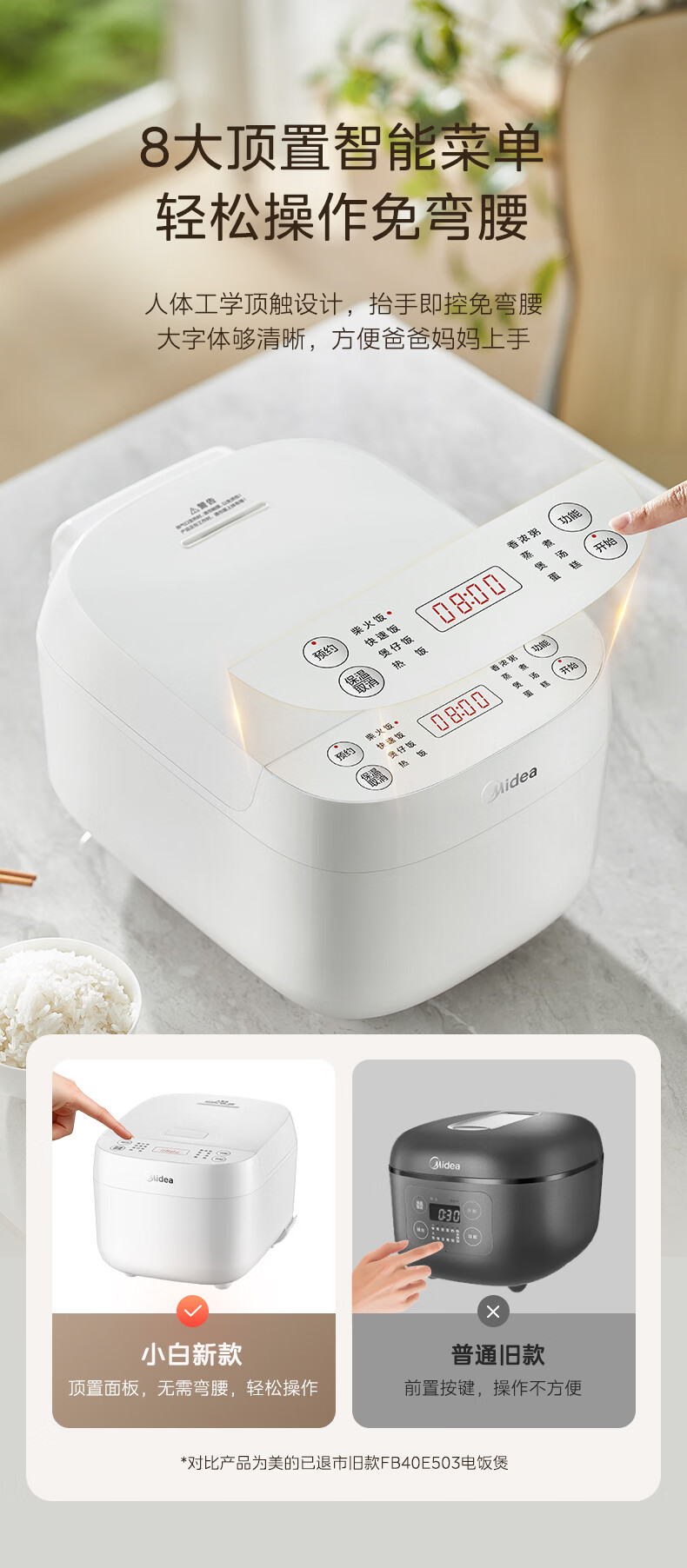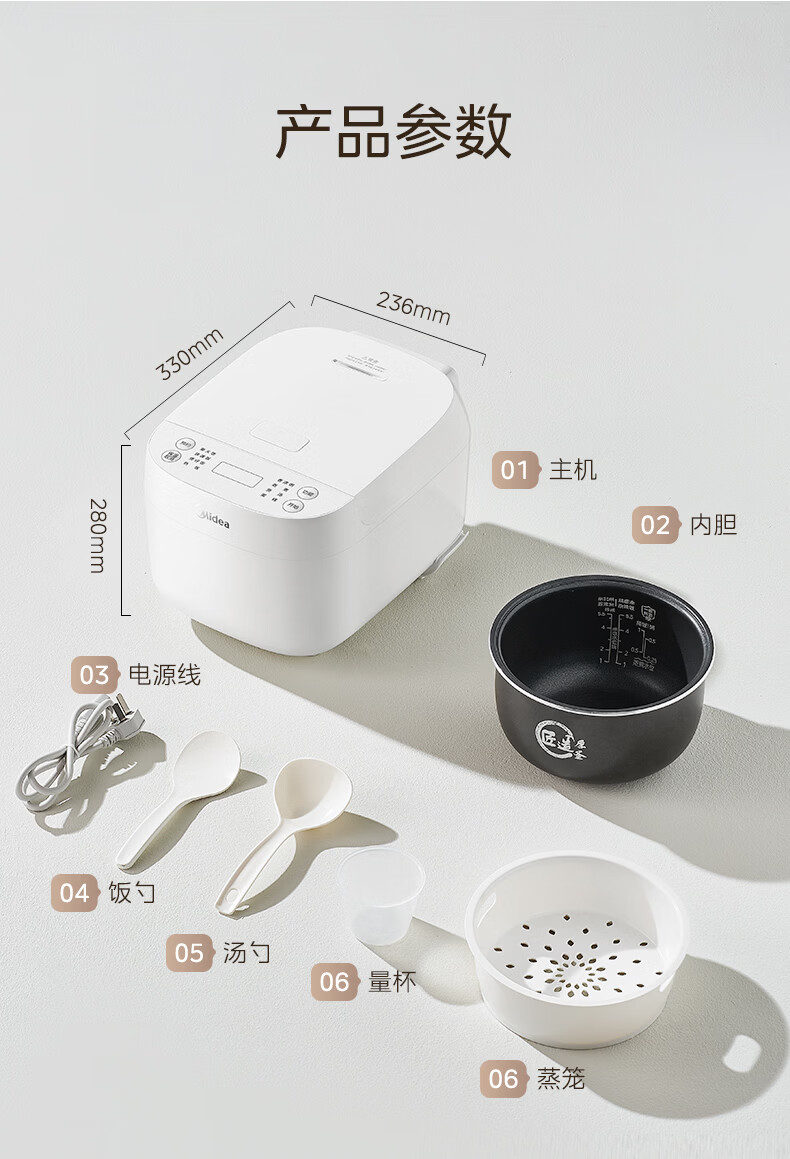 美的(Midea)电饭煲电饭锅3-4人家用3L大容量 快速饭多功能微压智能预约电饭煲 MB-RE319