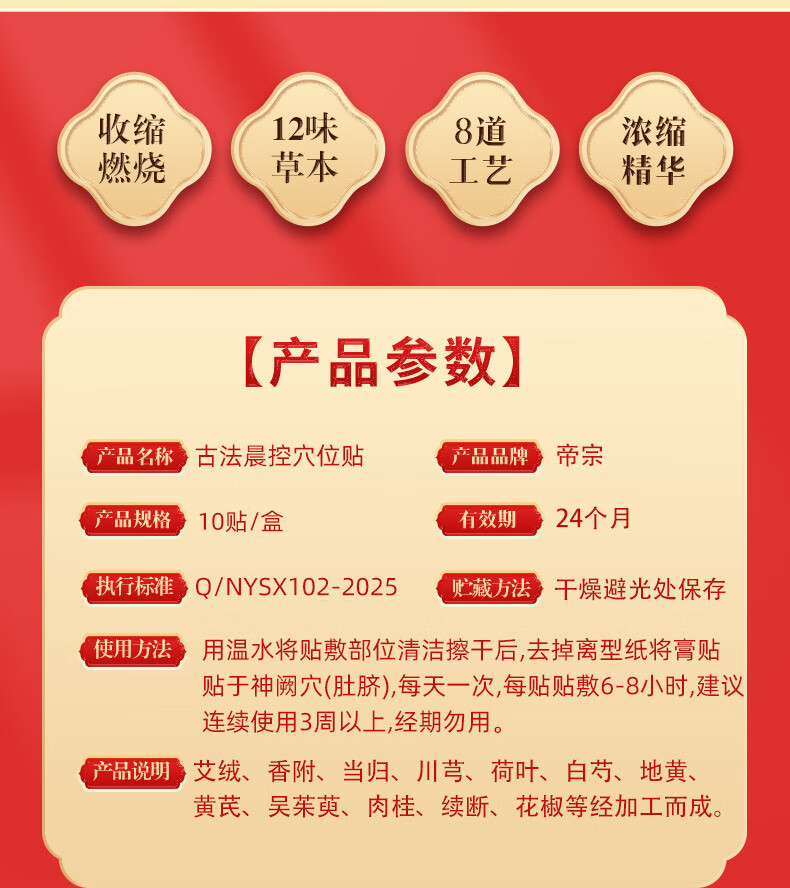 李时珍国医古法晨控穴位贴瘦肚子贴塑身肚脐贴晨控膏贴正品 5盒装*10贴【周期甄选好价囤货】 古法晨控穴位贴