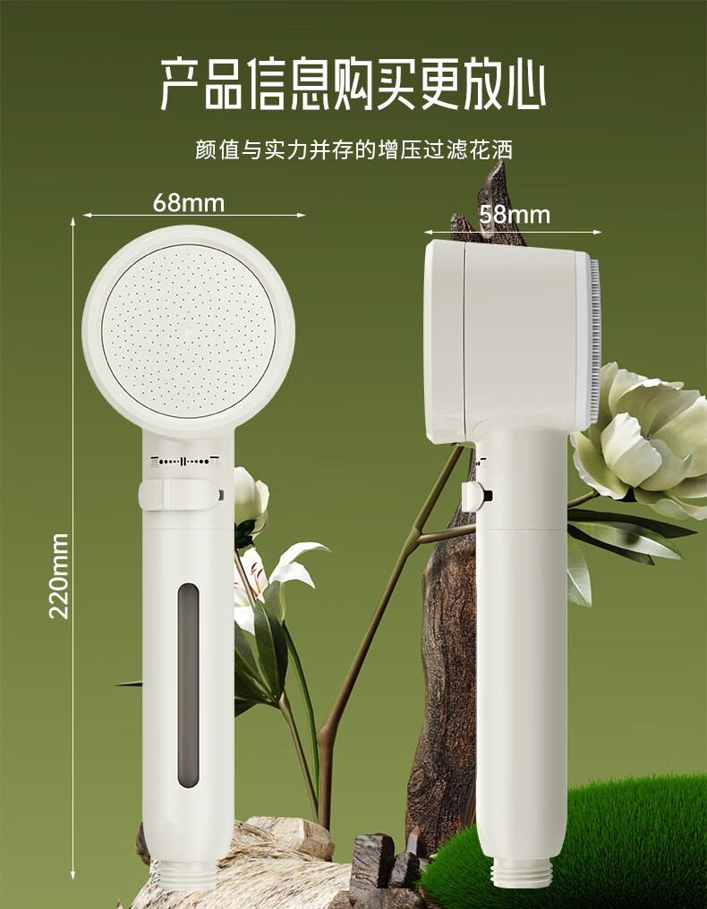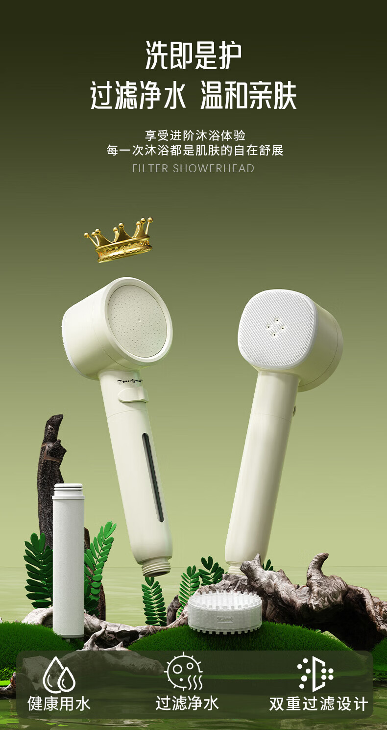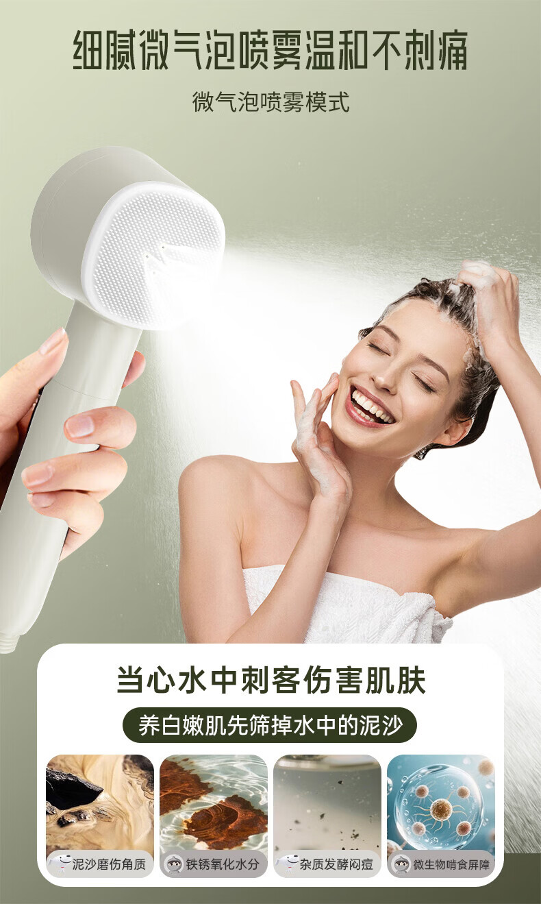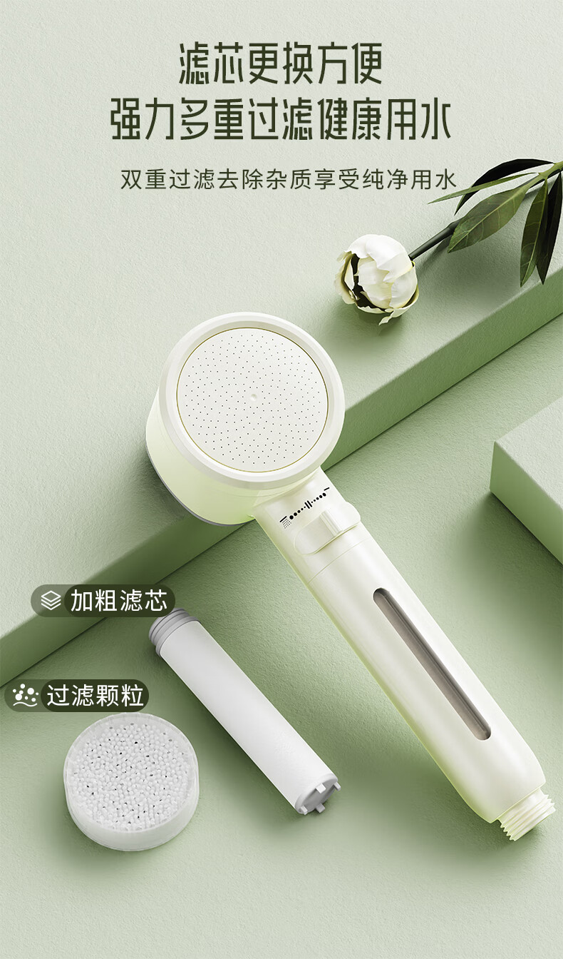 GuGuGo【德国】增压过滤花洒淋浴喷头除氯洗澡卫生间通用喷淋浴室莲蓬头 【月光白】双面出水按摩花洒 除氯护肤丨涡轮增压丨按摩刷洗