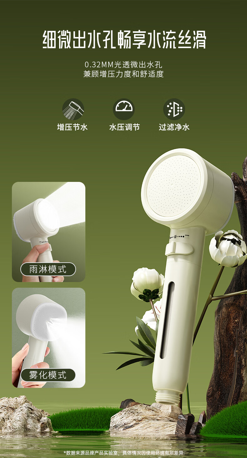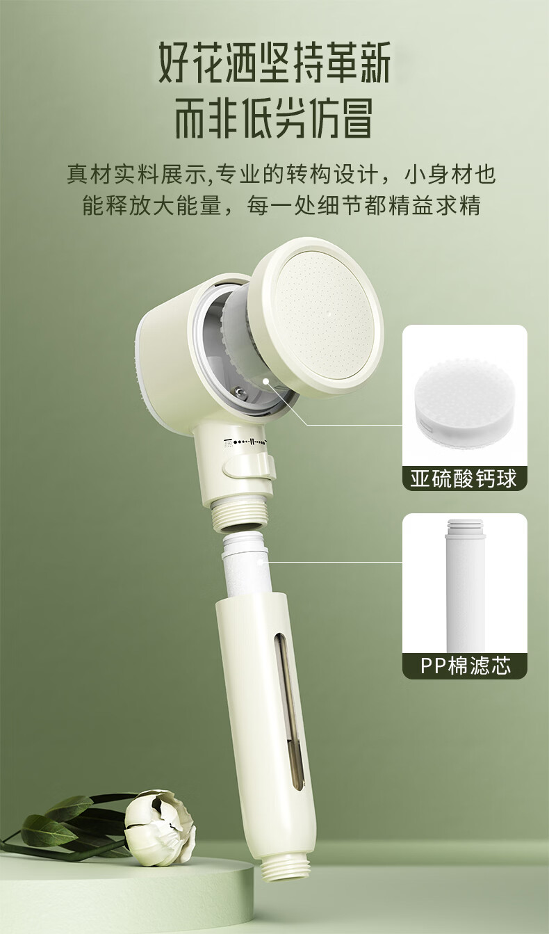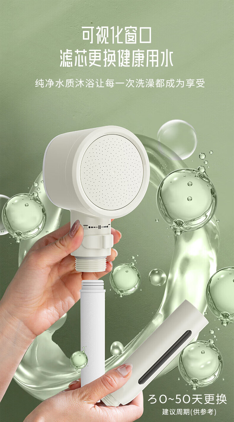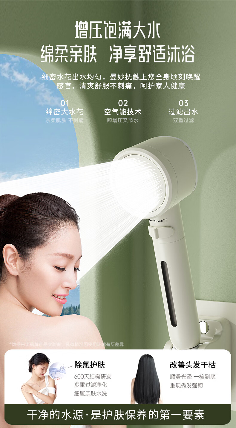 GuGuGo【德国】增压过滤花洒淋浴喷头除氯洗澡卫生间通用喷淋浴室莲蓬头 【月光白】双面出水按摩花洒 除氯护肤丨涡轮增压丨按摩刷洗