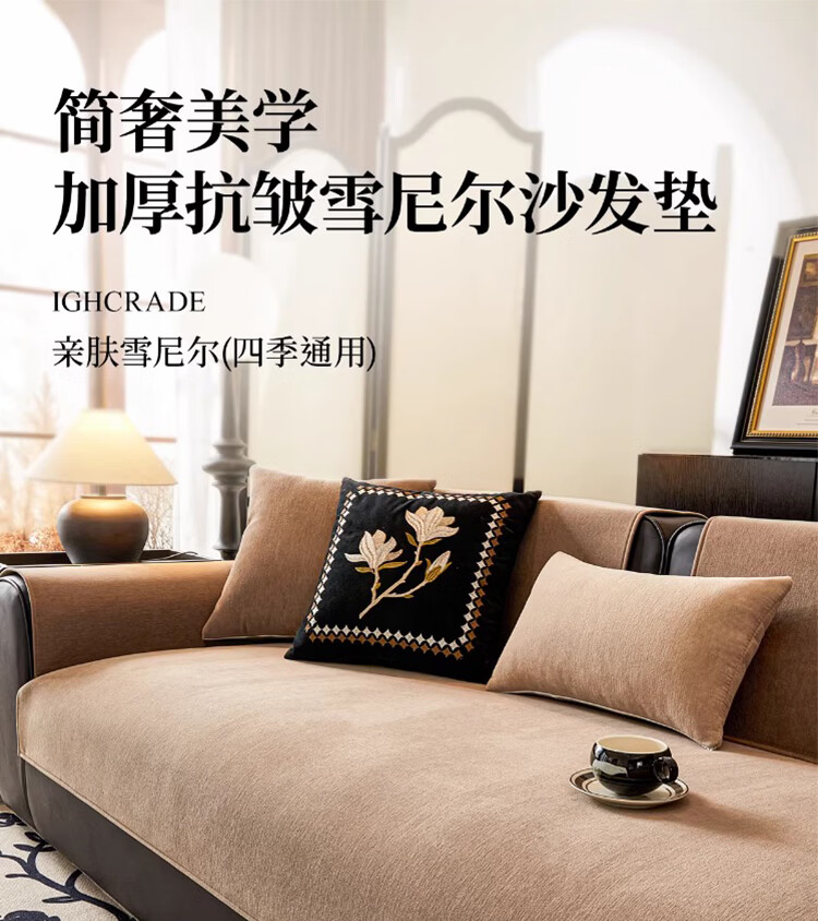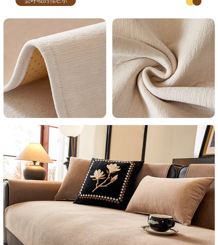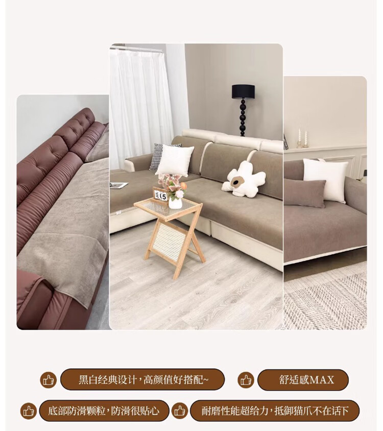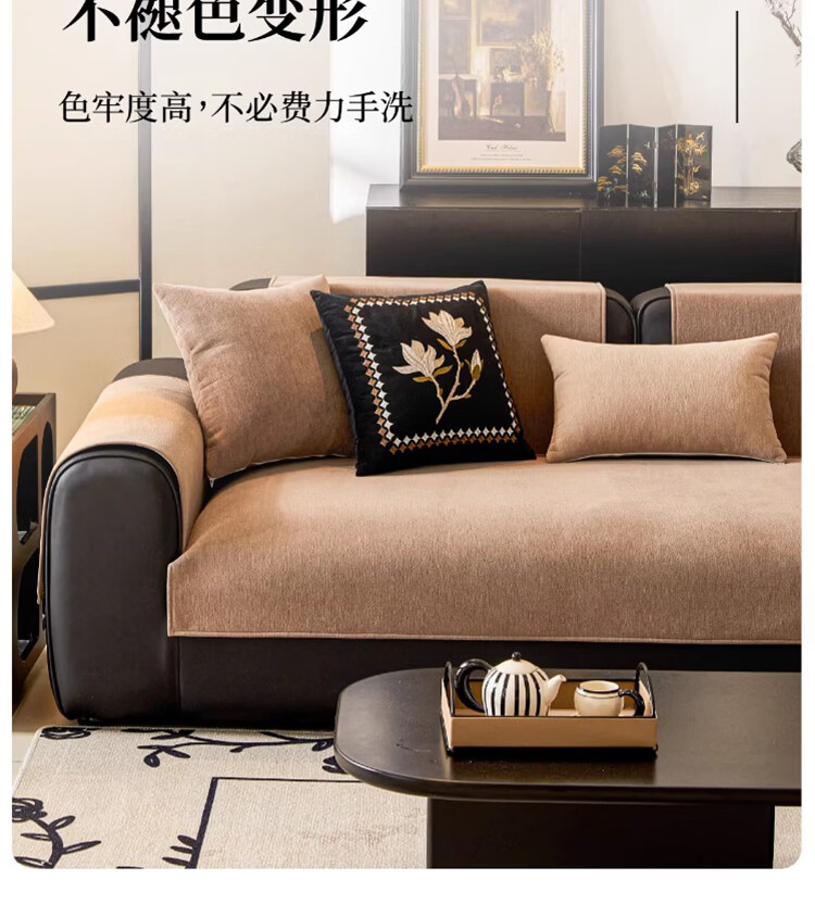 无印良品沙发垫子高档轻奢防滑耐磨沙发座垫四季通用坐垫防滑固定沙发套罩 清绮-深咖色 (强力止滑 无甲醛添加 机洗不褪) 70*70cm (可用作扶手和靠背)