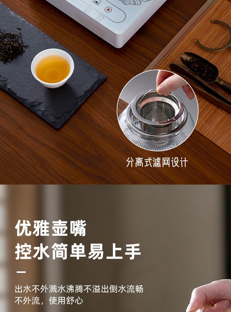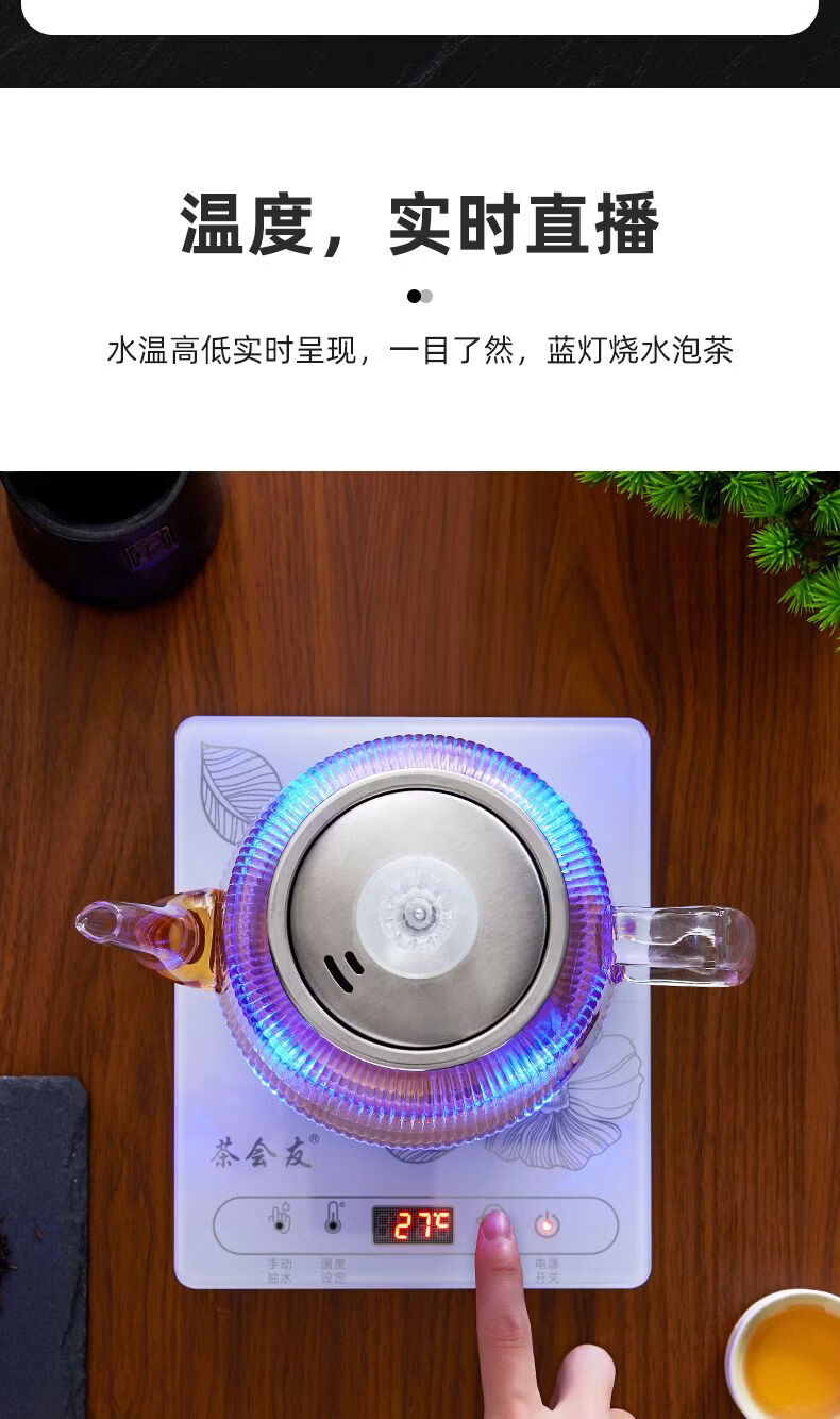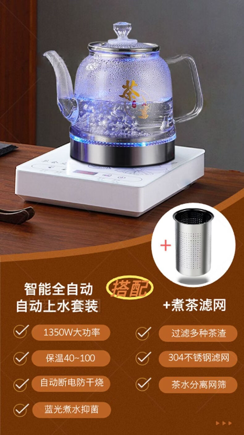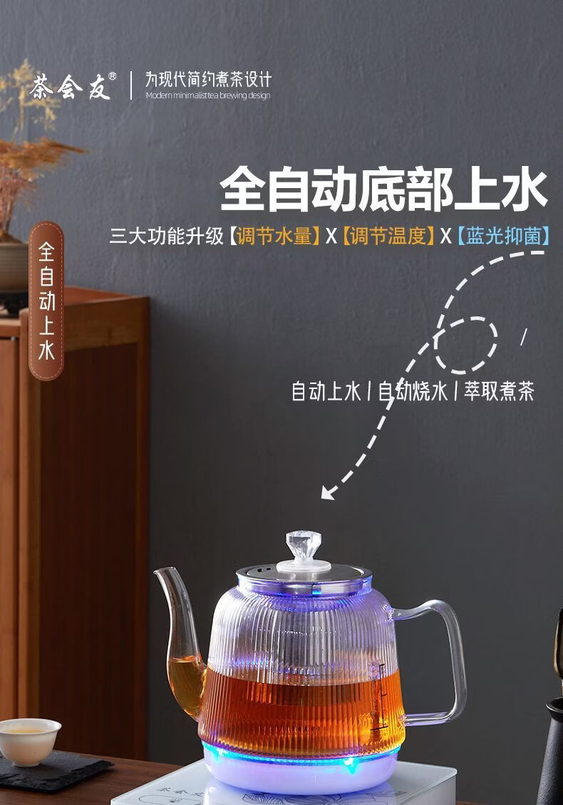 茶会友全自动上水电热水壶茶台烧水壶饮水烧水一体机玻璃底部上水单壶茶几煮茶壶保温泡茶壶开水壶养生壶 1L 黑色青春款十蓝光