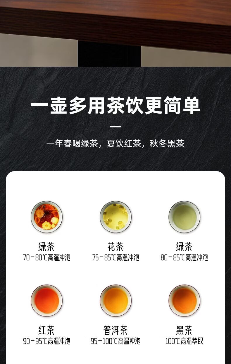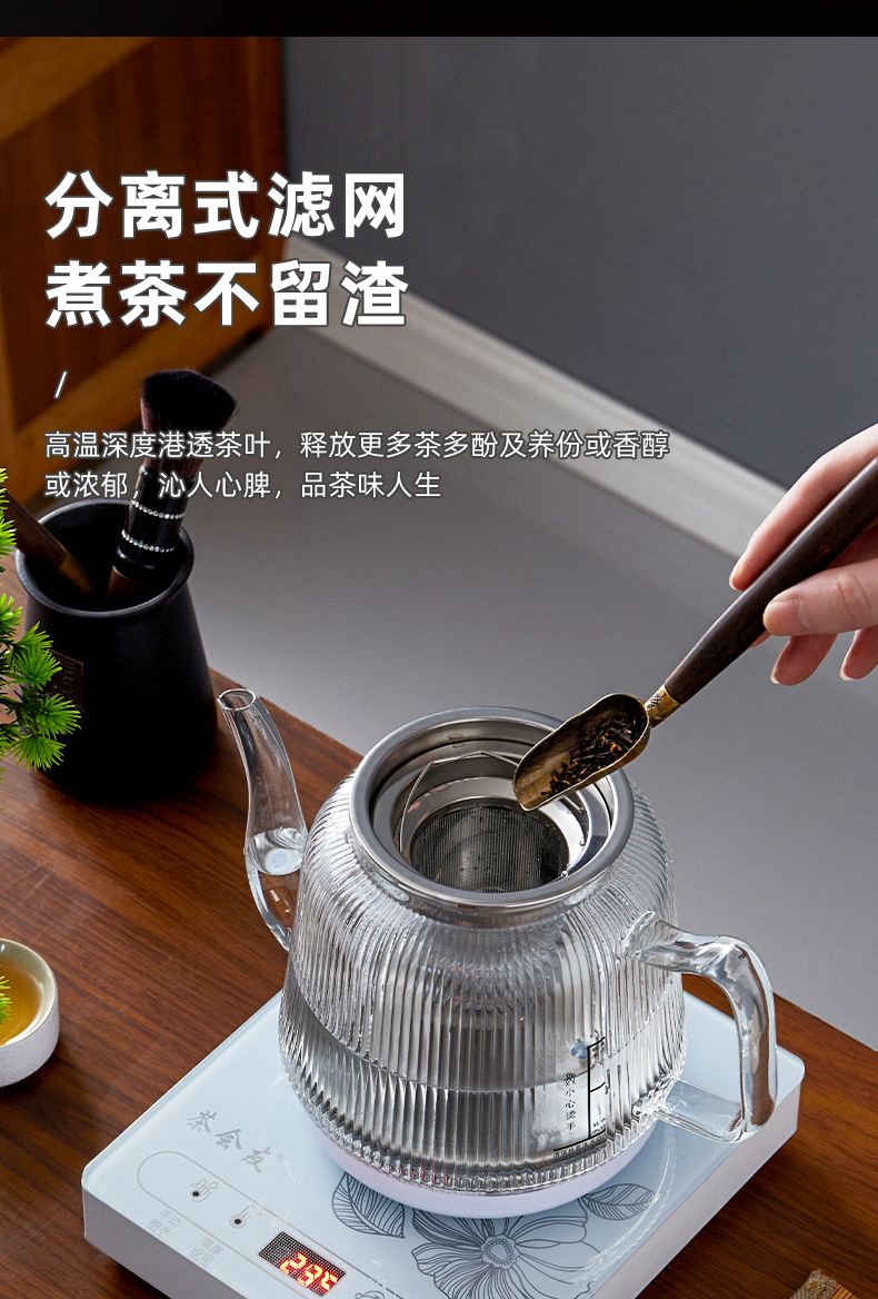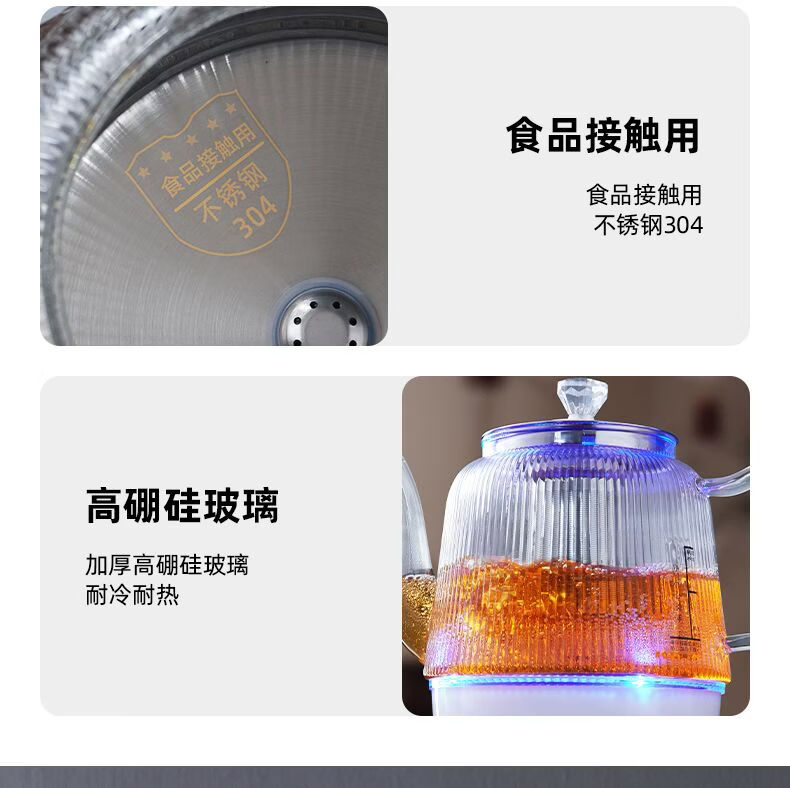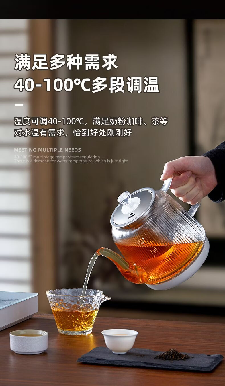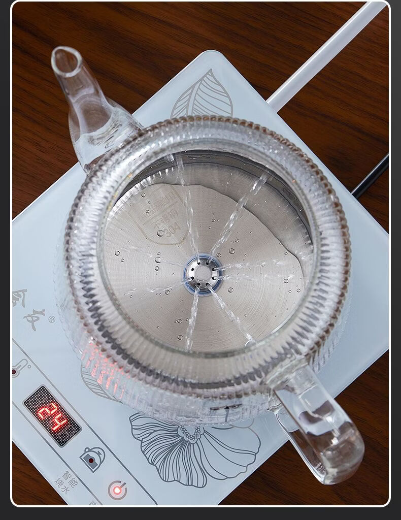 茶会友全自动上水电热水壶茶台烧水壶饮水烧水一体机玻璃底部上水单壶茶几煮茶壶保温泡茶壶开水壶养生壶 1L 黑色青春款十蓝光