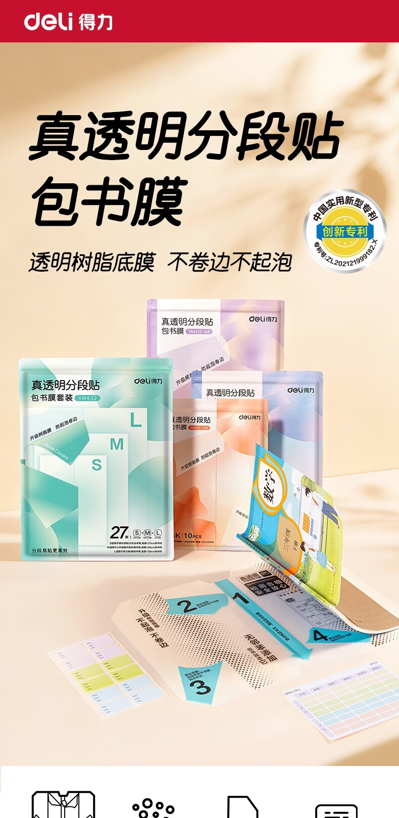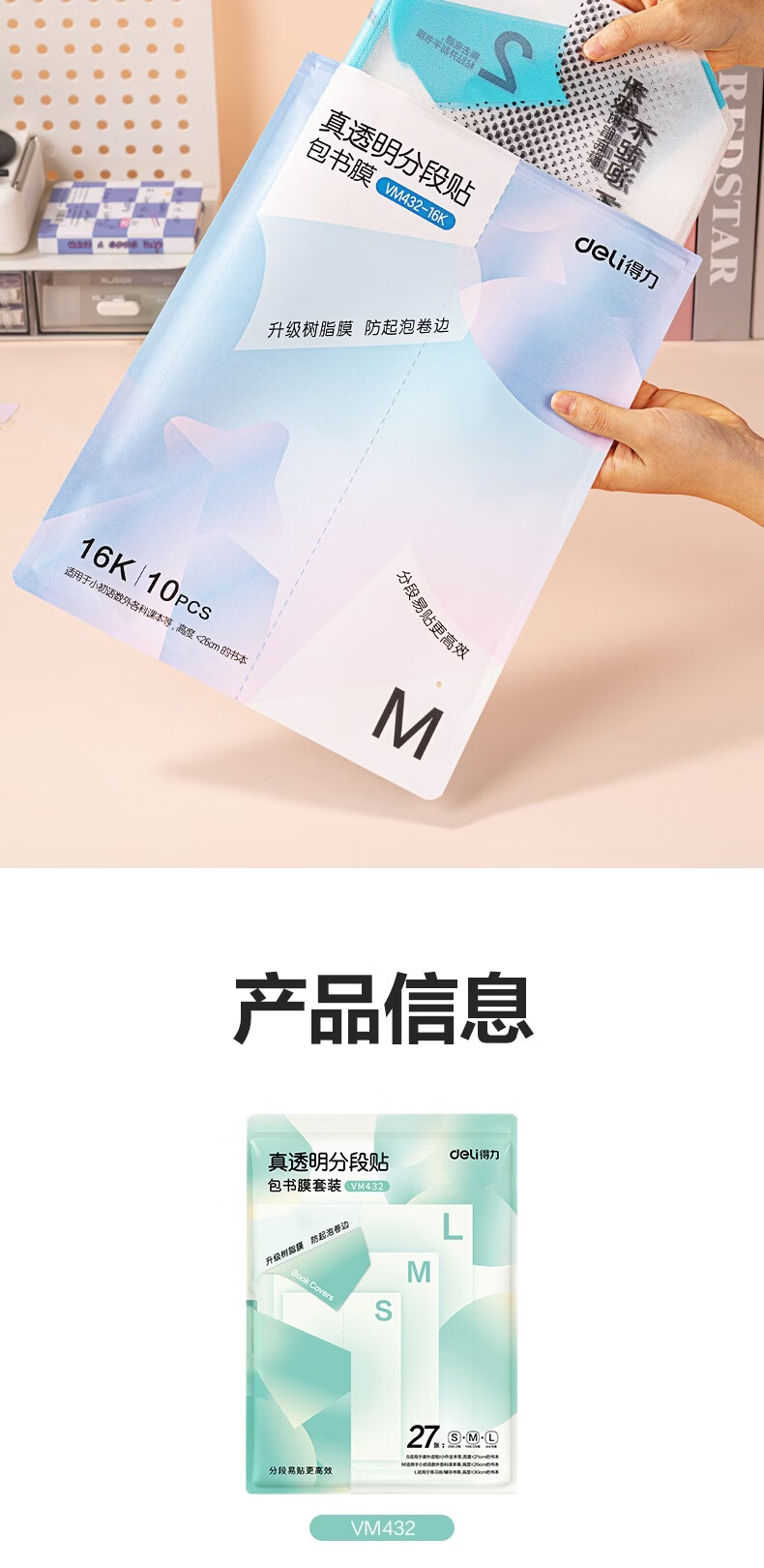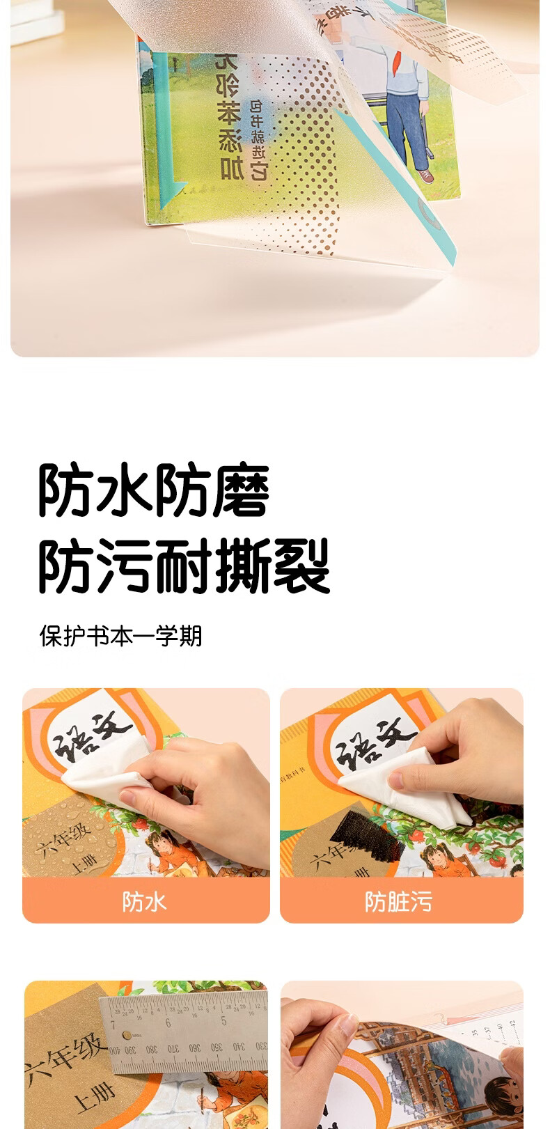 得力(deli)10张16K中号分段式包书皮学生防水防污防卷边保护书套透明树脂底膜包书膜升级款分段式