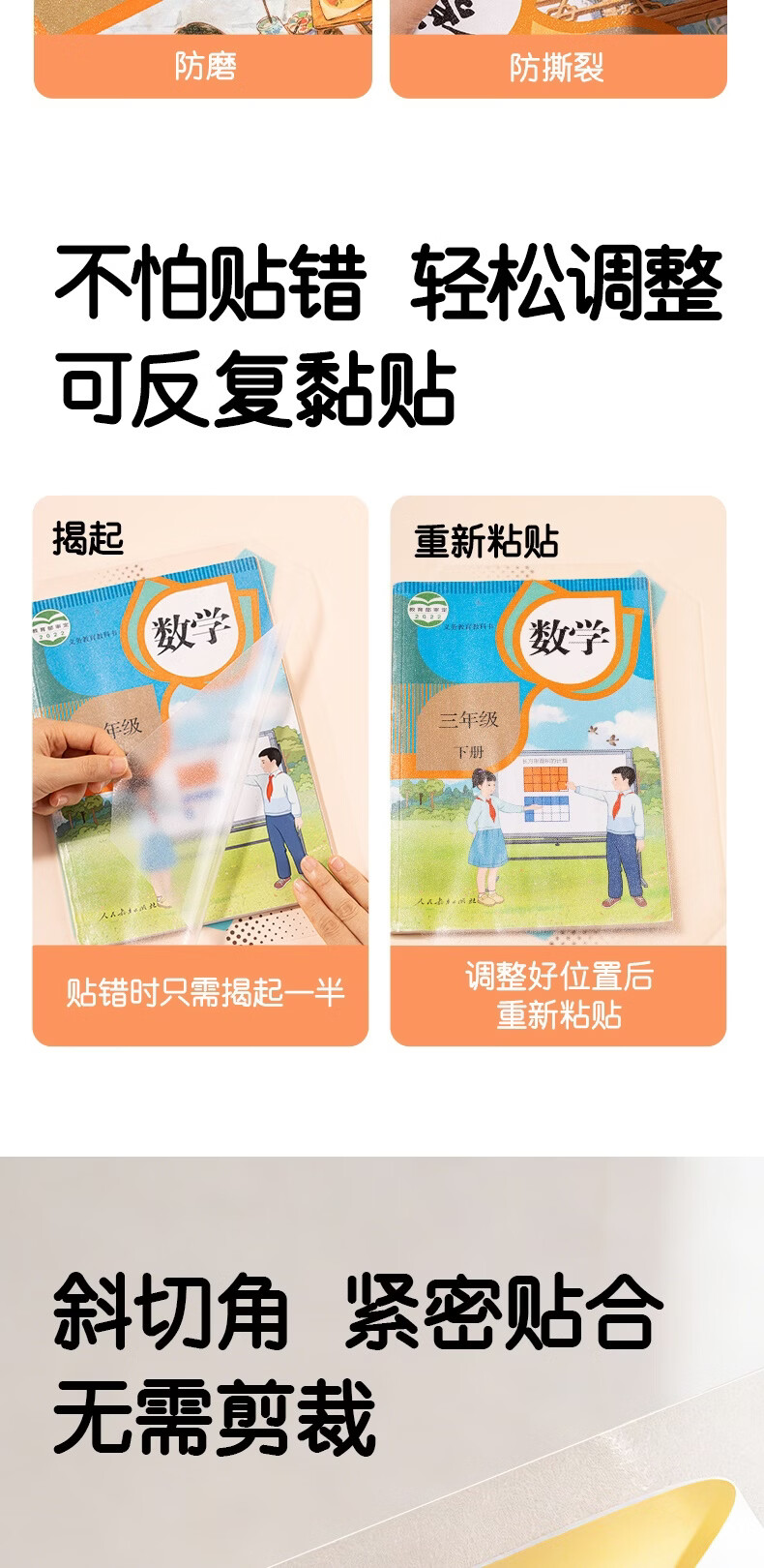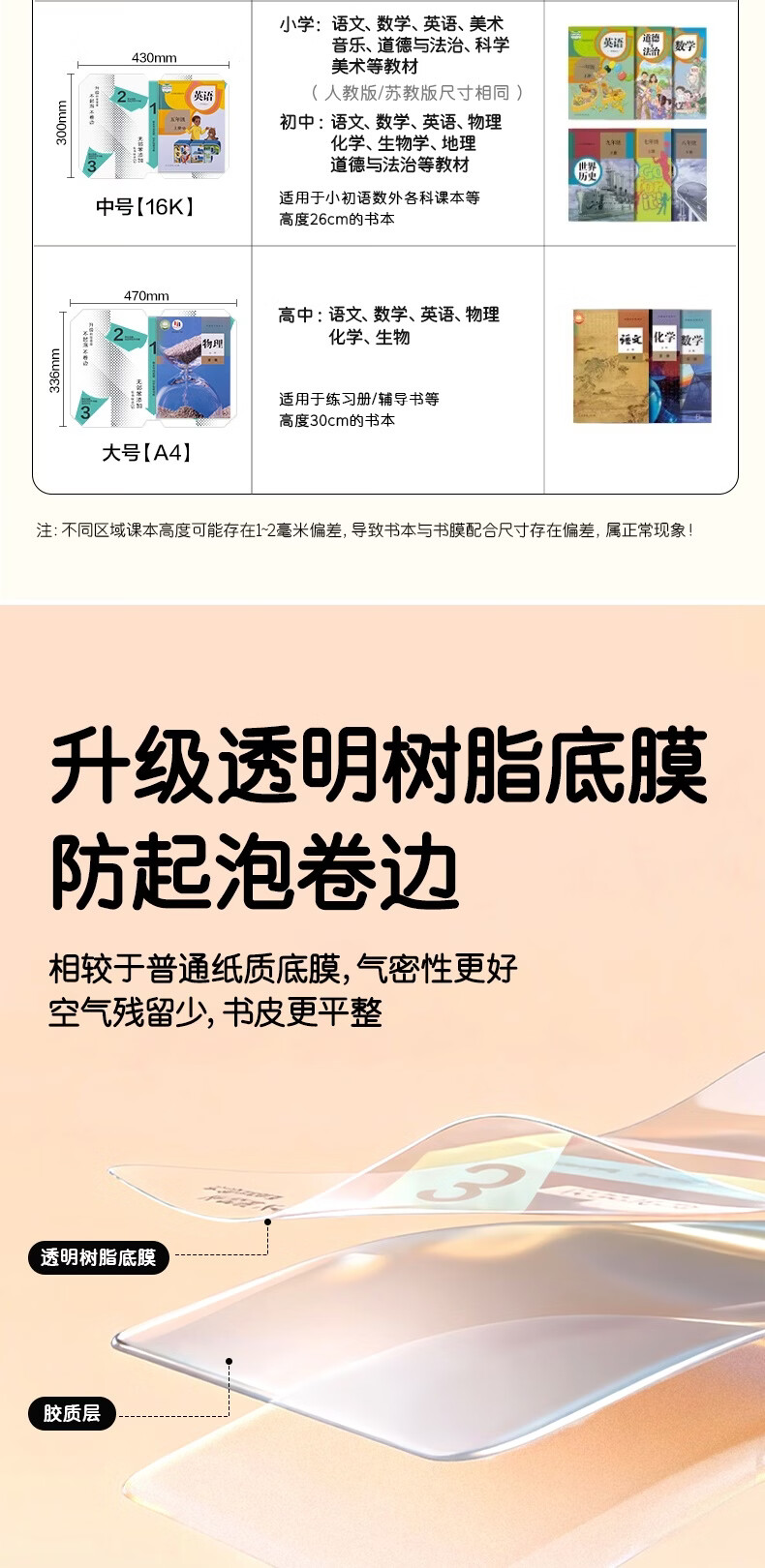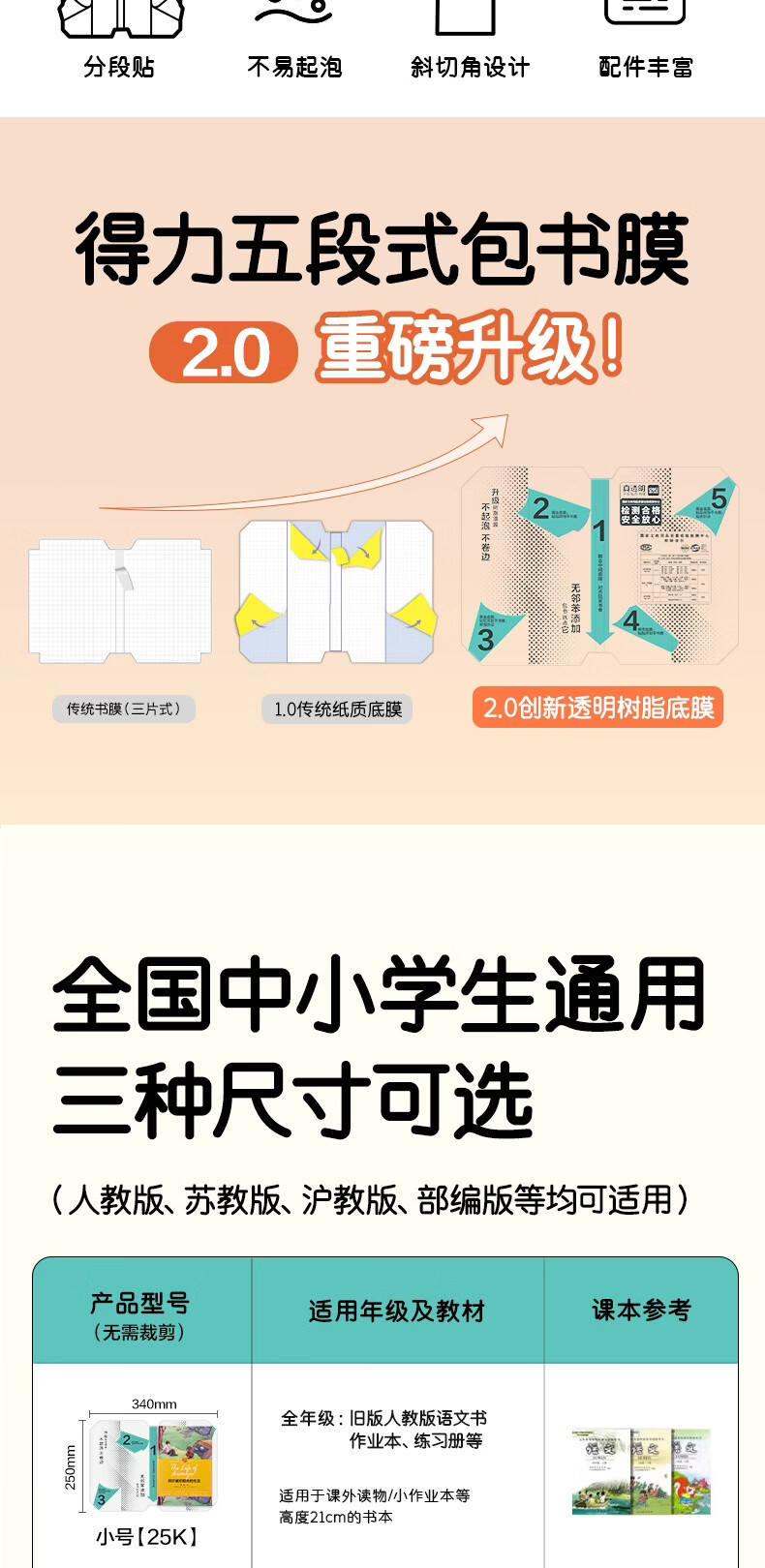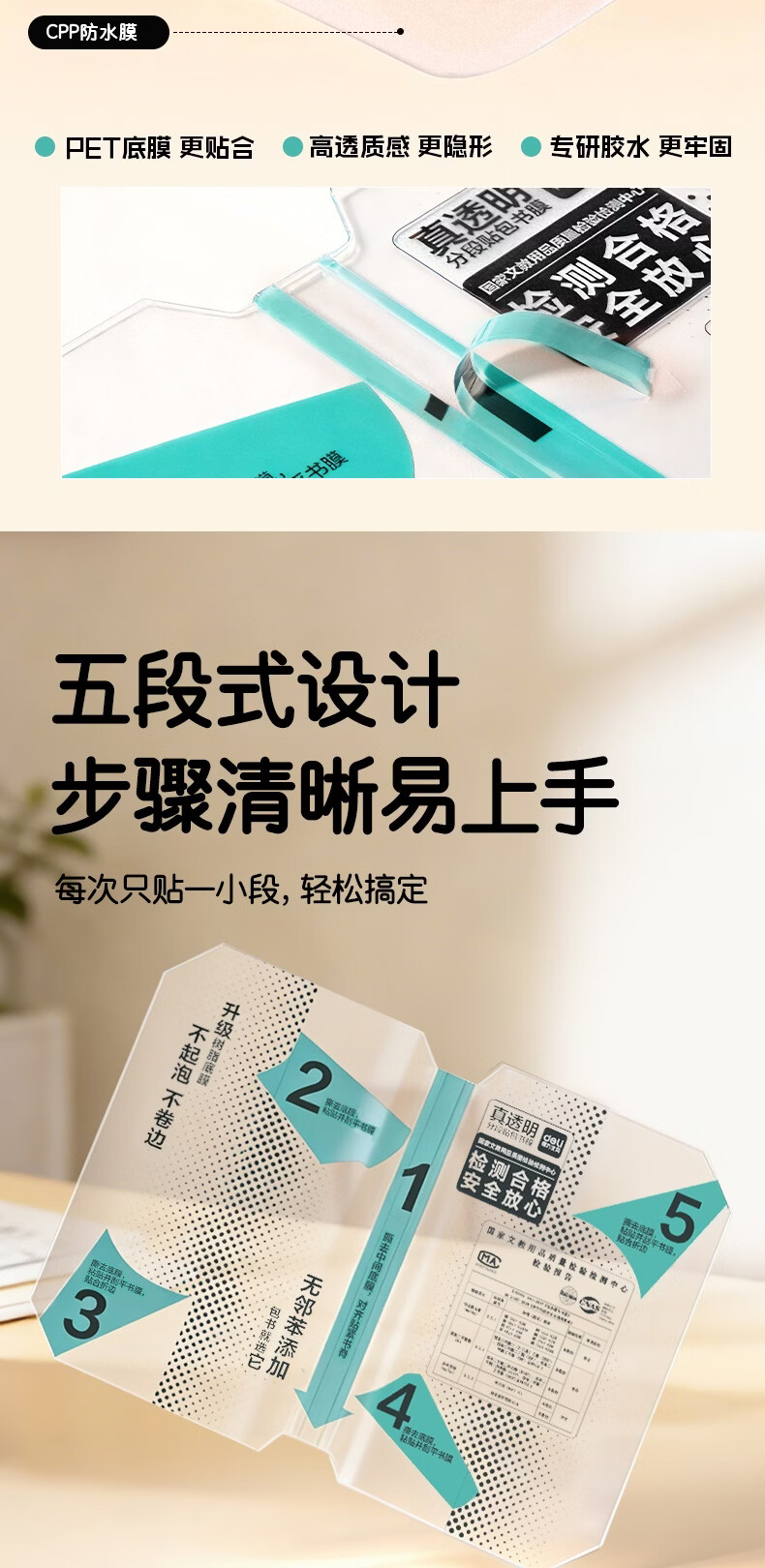 得力(deli)10张16K中号分段式包书皮学生防水防污防卷边保护书套透明树脂底膜包书膜升级款分段式