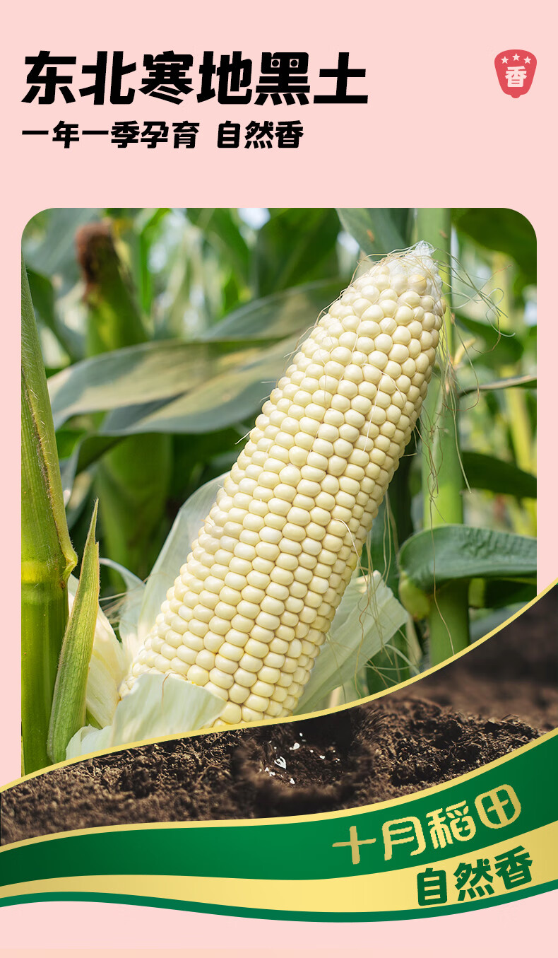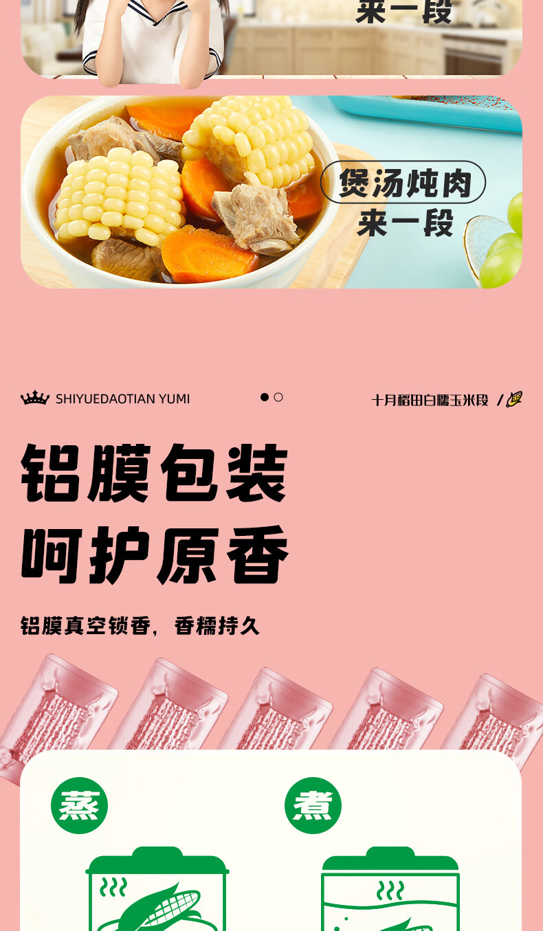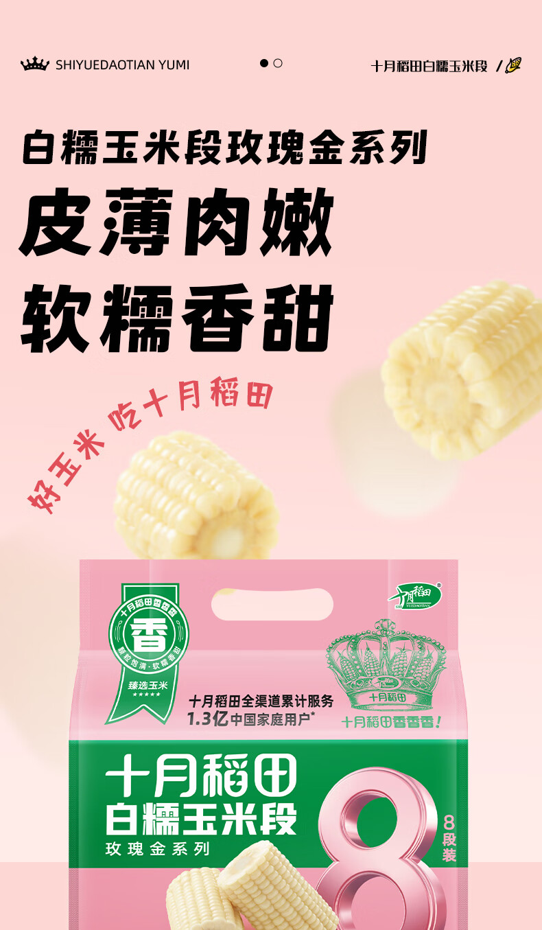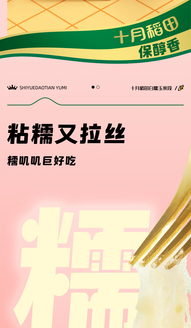 十月稻田 白糯6cm玉米段 1.6斤8段 杂粮粗粮 真空包装 低脂早餐 火锅食材