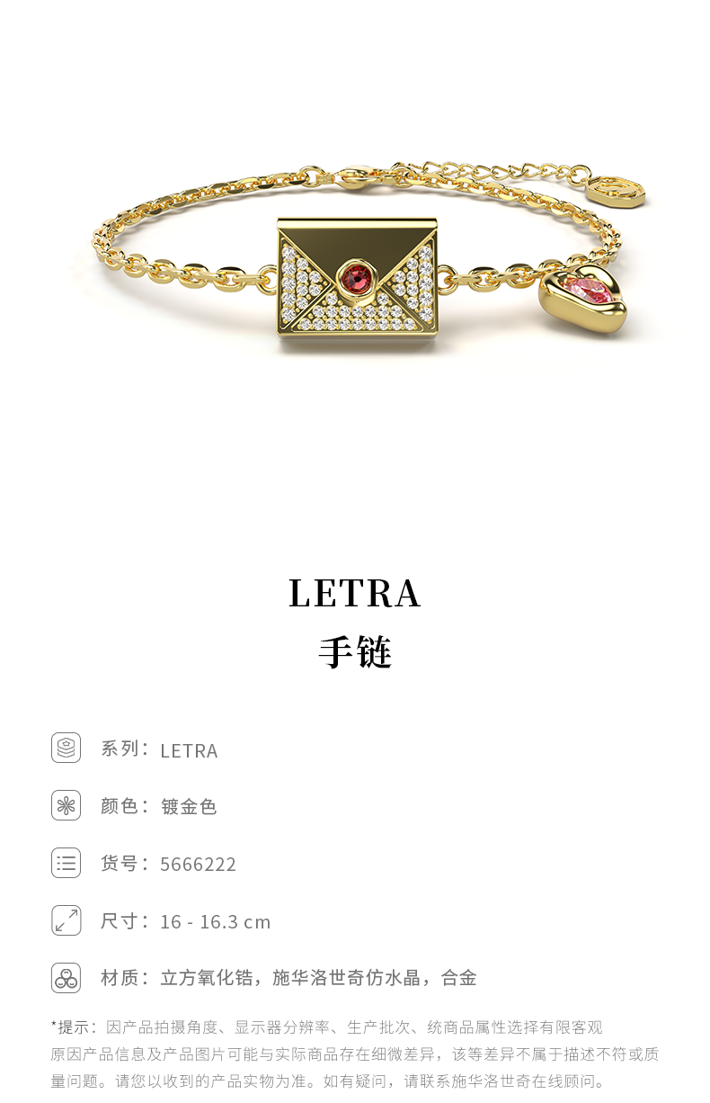 施华洛世奇LETRA手链女 信封情书送女生日礼物女38女神节礼物5666222