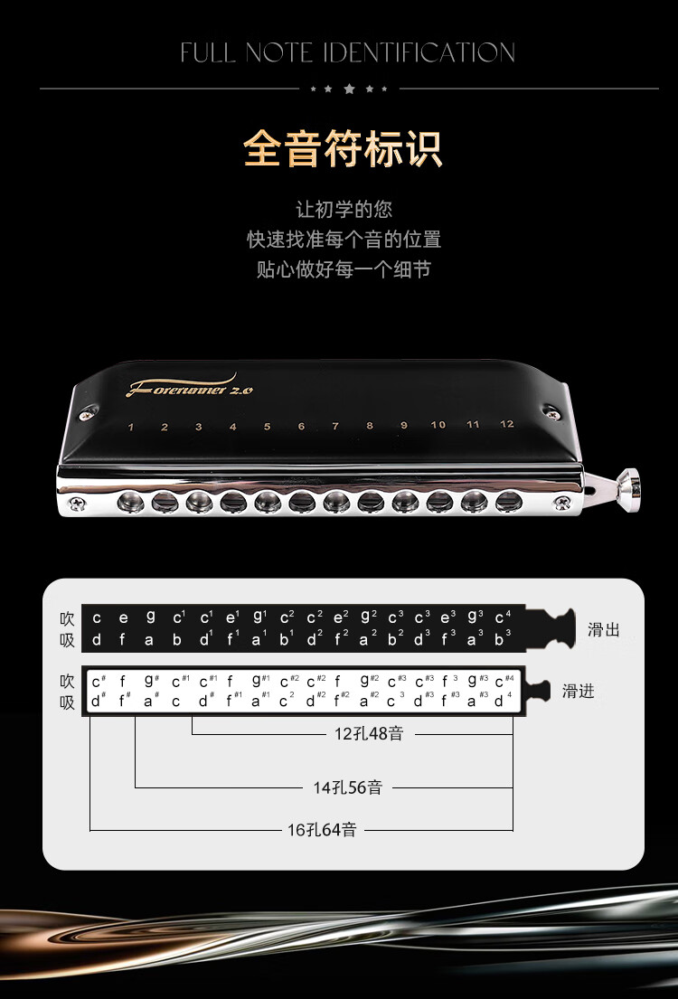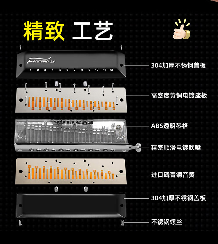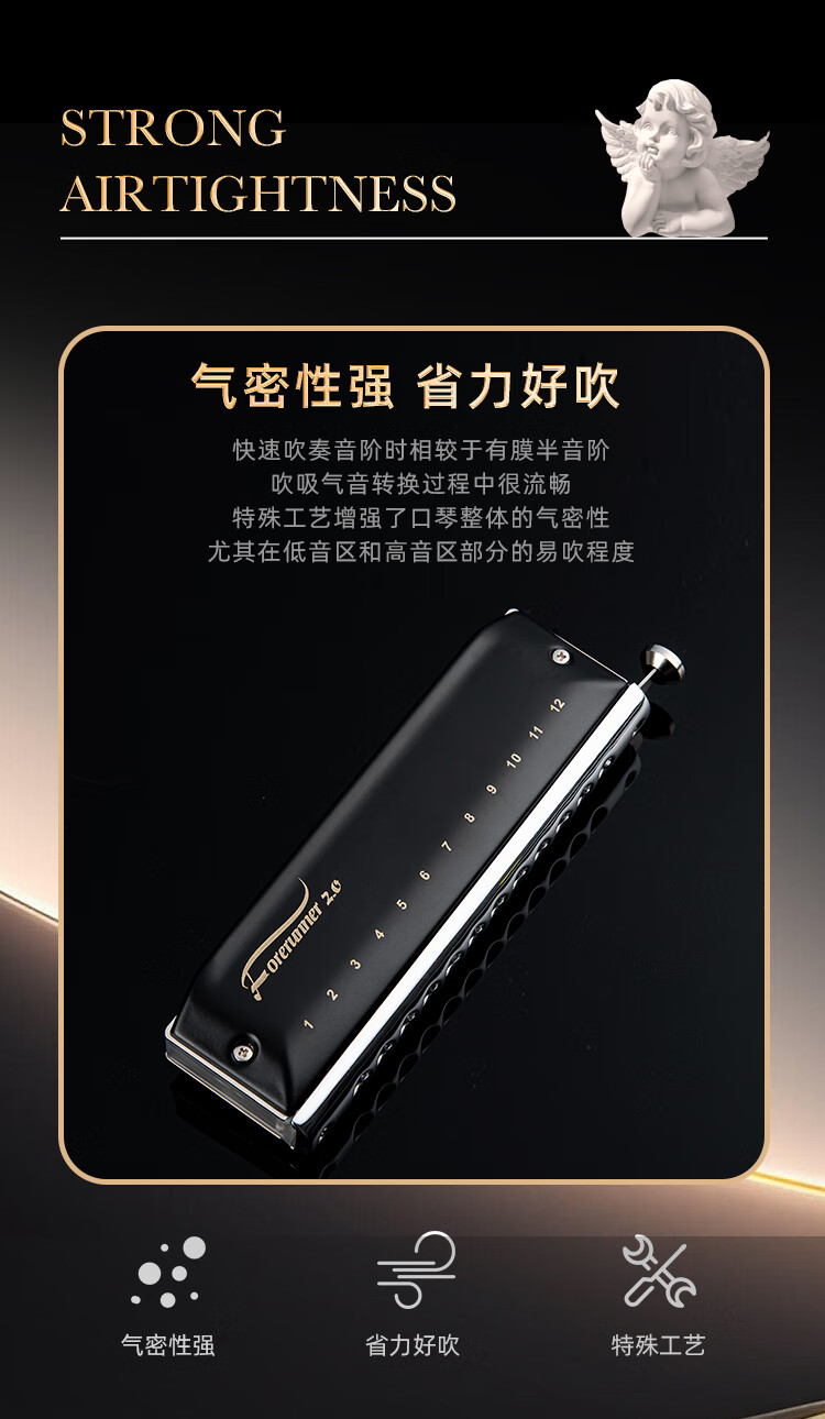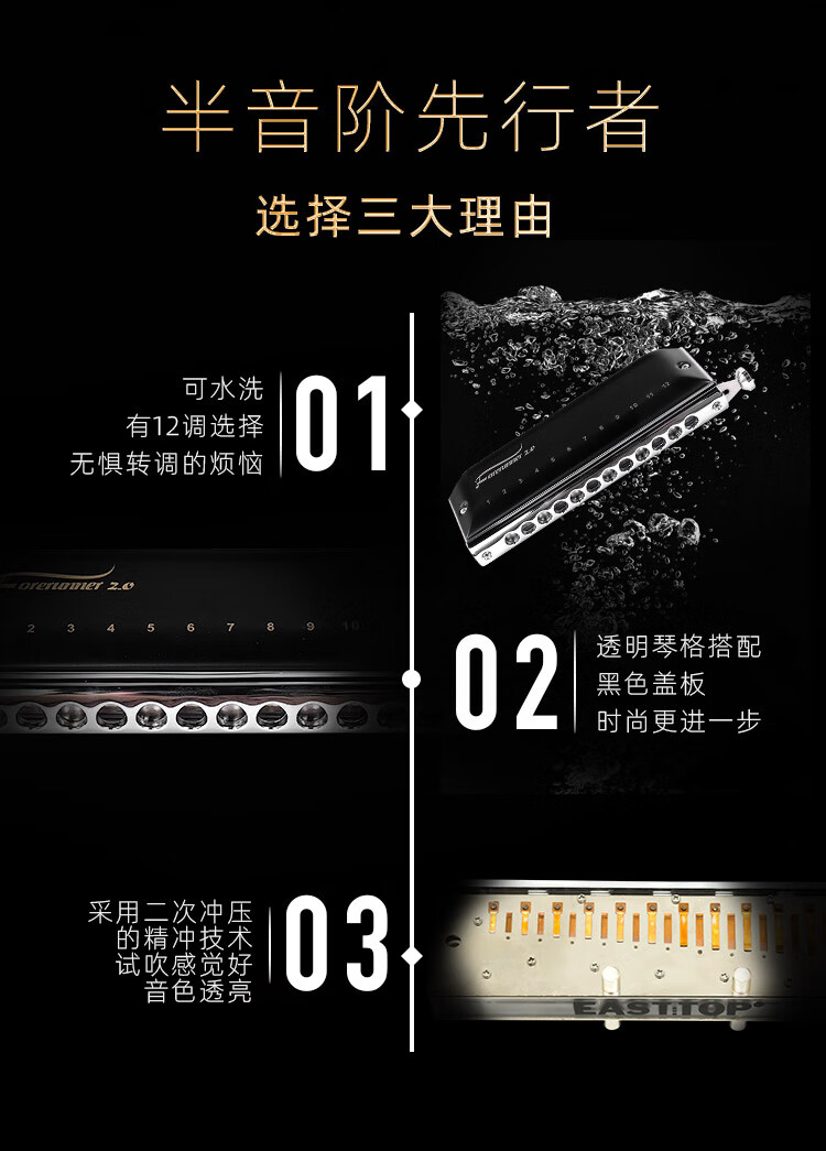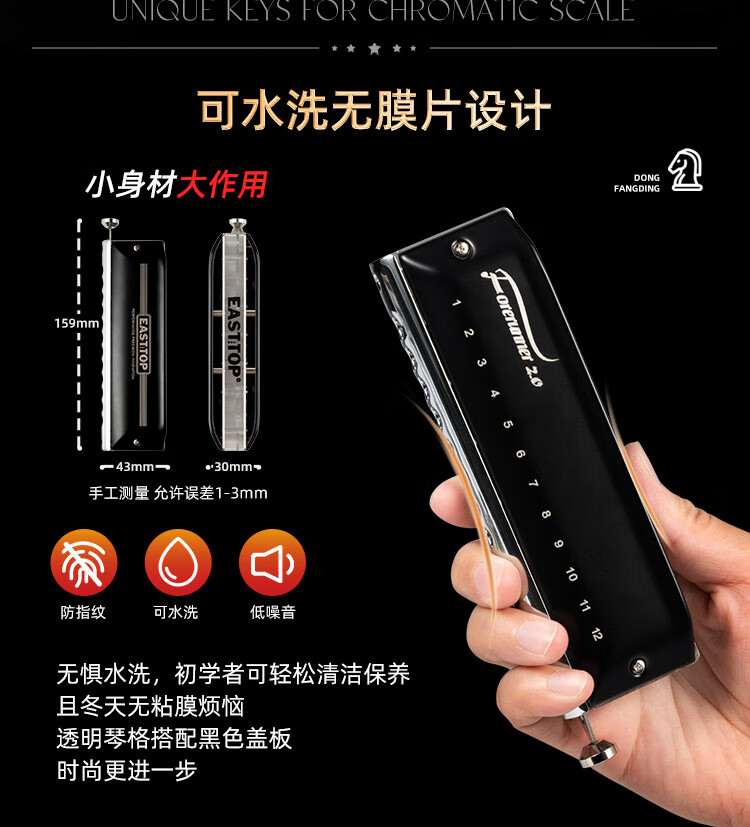 东方鼎(EAST TOP)半音阶口琴12孔48音 先行者2.0 初学推荐 无膜不粘膜可水洗