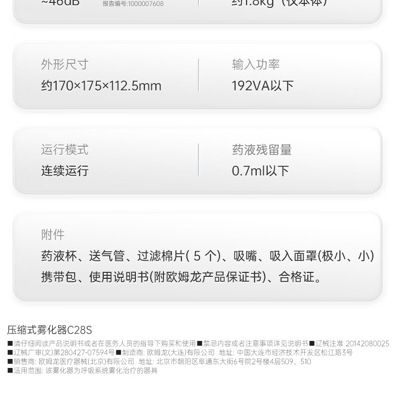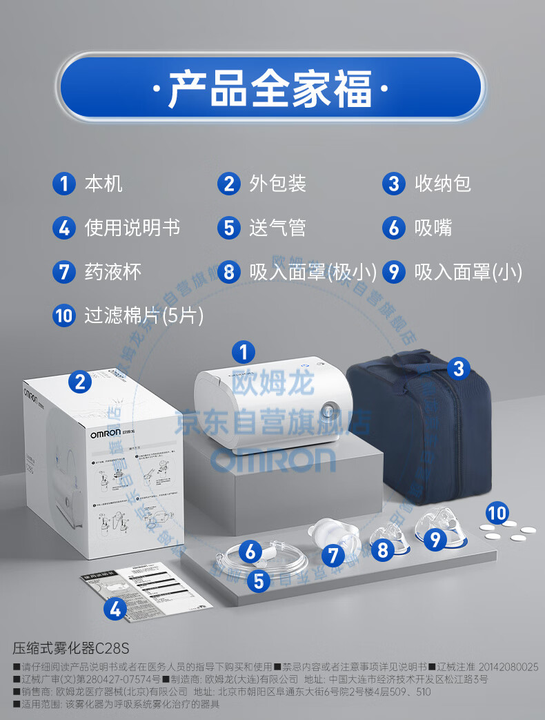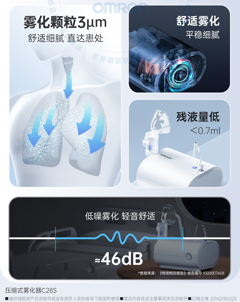 欧姆龙(OMRON)儿童家用雾化机老人医用升级轻音款压缩式雾化器C28S赠问诊卡