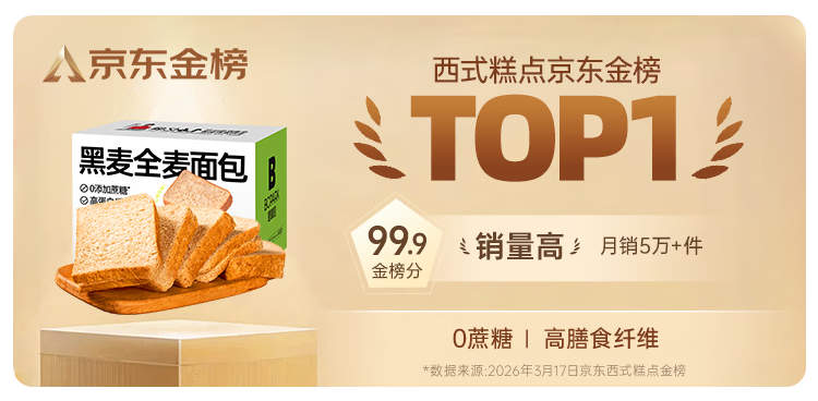 碧翠园全麦面包0脂0蔗糖黑麦吐司1000g粗粮面包早餐健身代餐食品零食