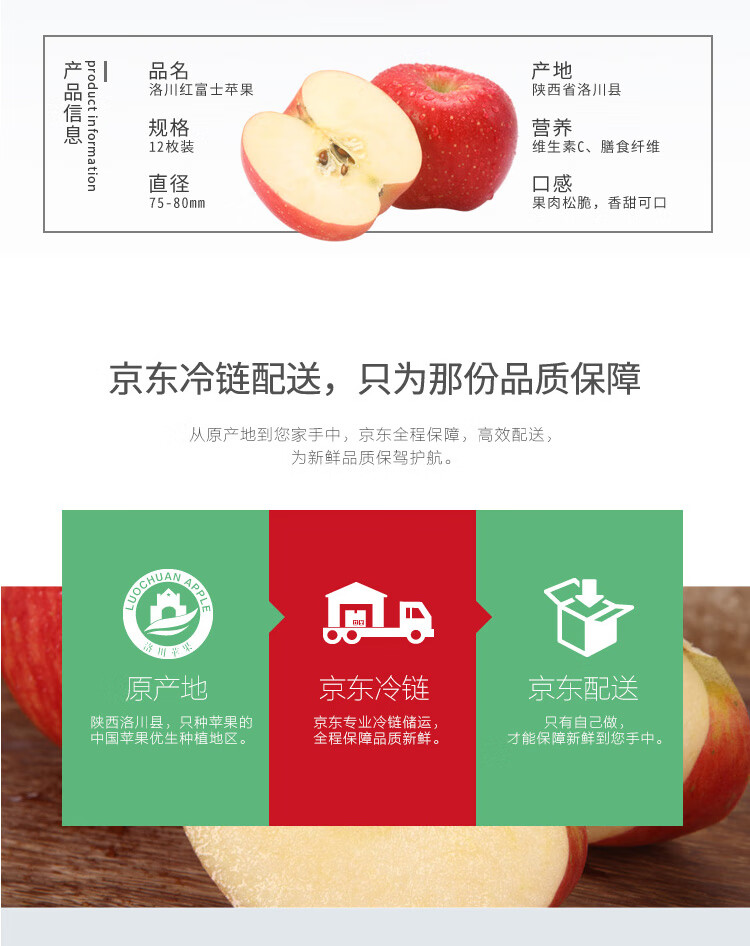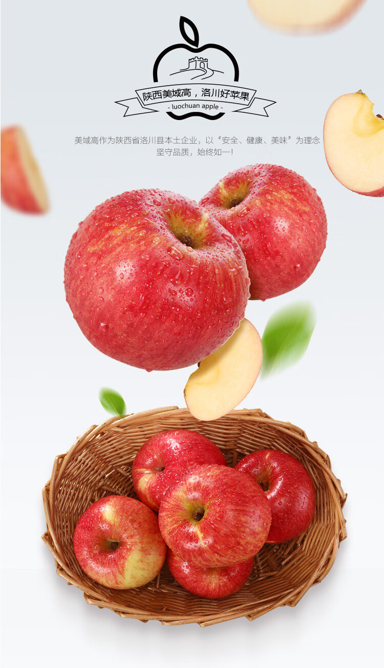 京鲜生 陕西洛川苹果红富士 净重5斤 单果200g+ 生鲜水果