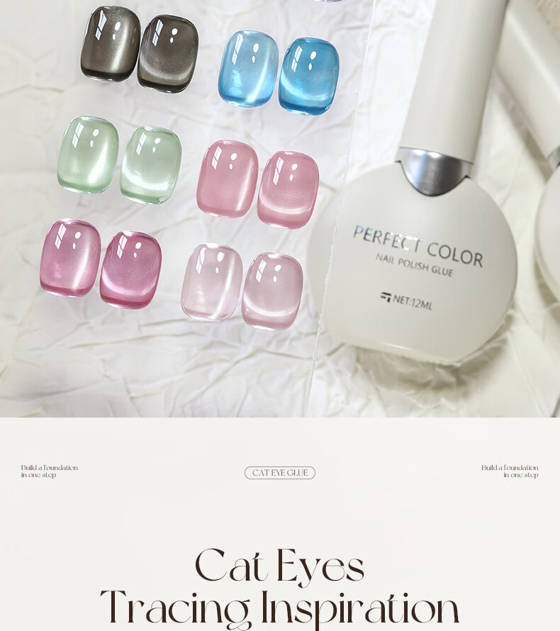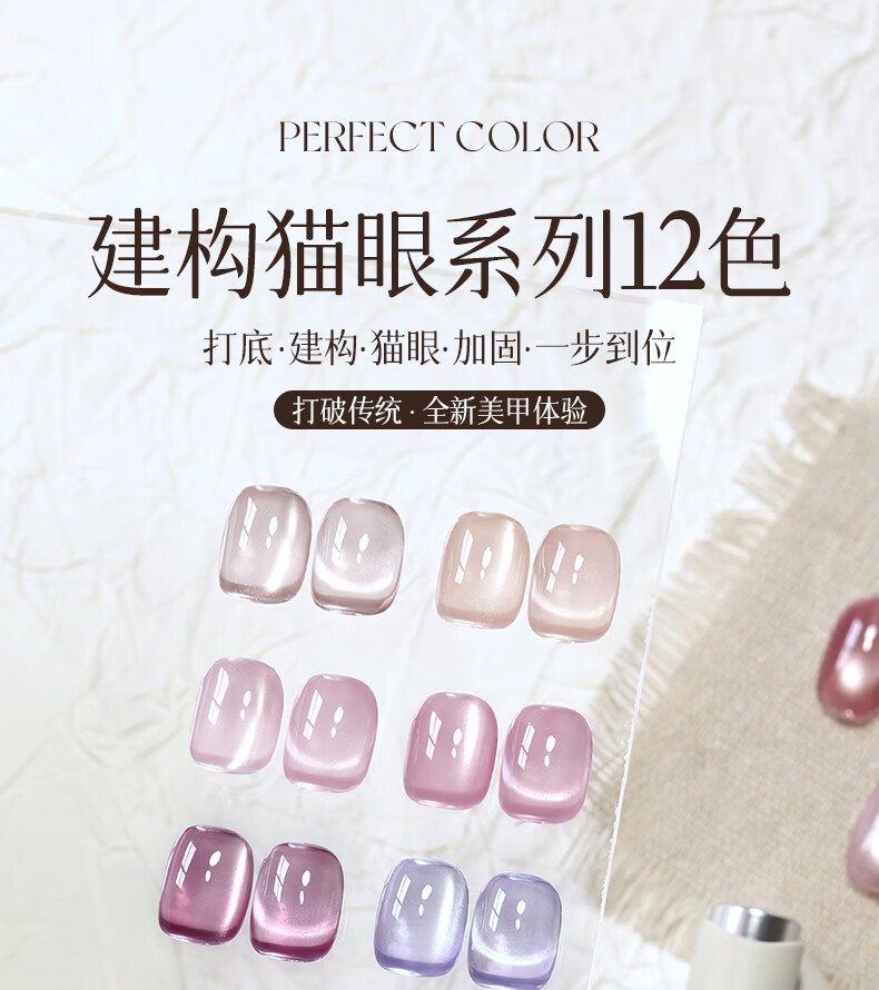 PERFECT COLOR素颜建构底胶红色猫眼甲油胶2025秋冬新款玻璃珠美甲指甲油 红石榴【赠送圆柱磁铁】