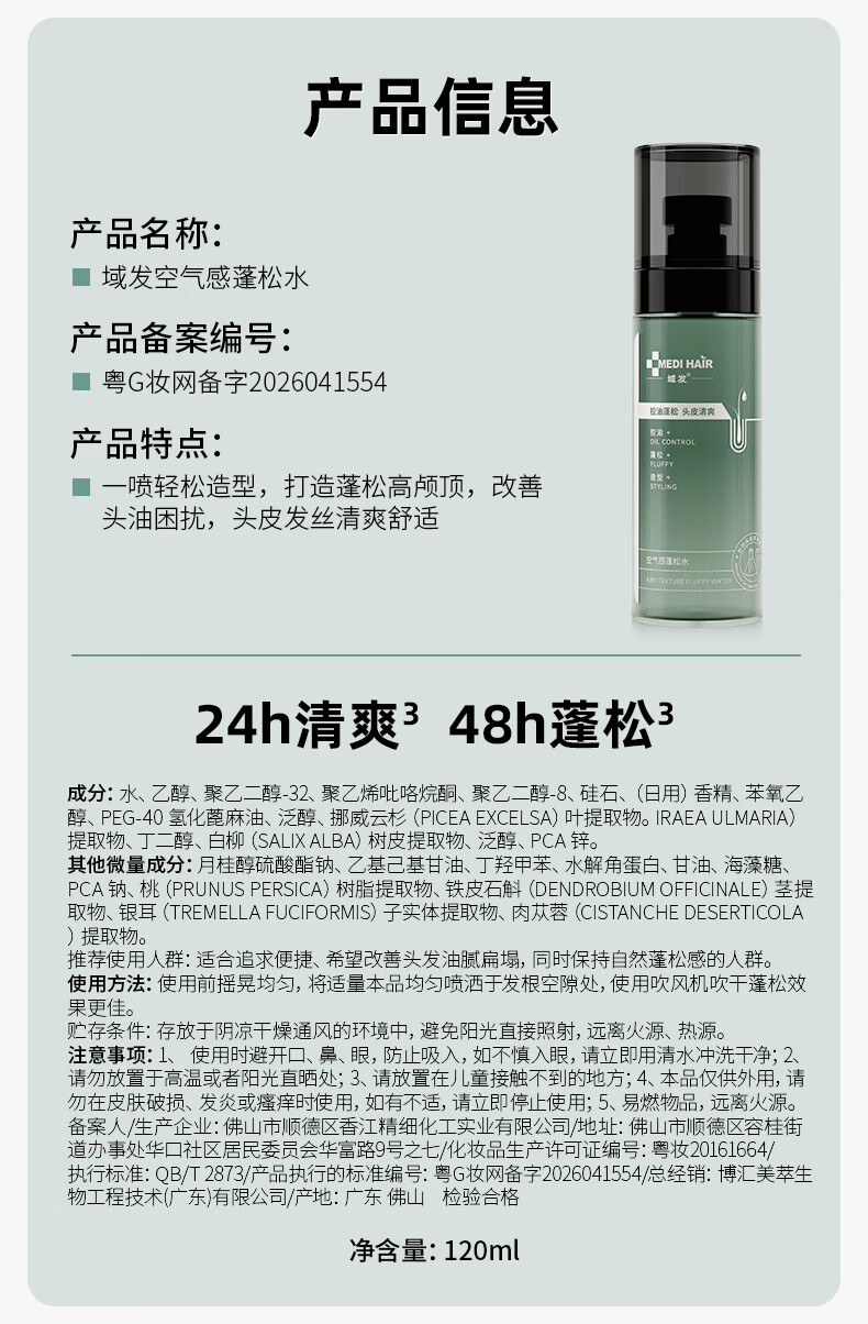 域发空气感蓬松水120ml 造型打底蓬松水喷雾男士女士发胶定型自然持久 120 0基础易上手