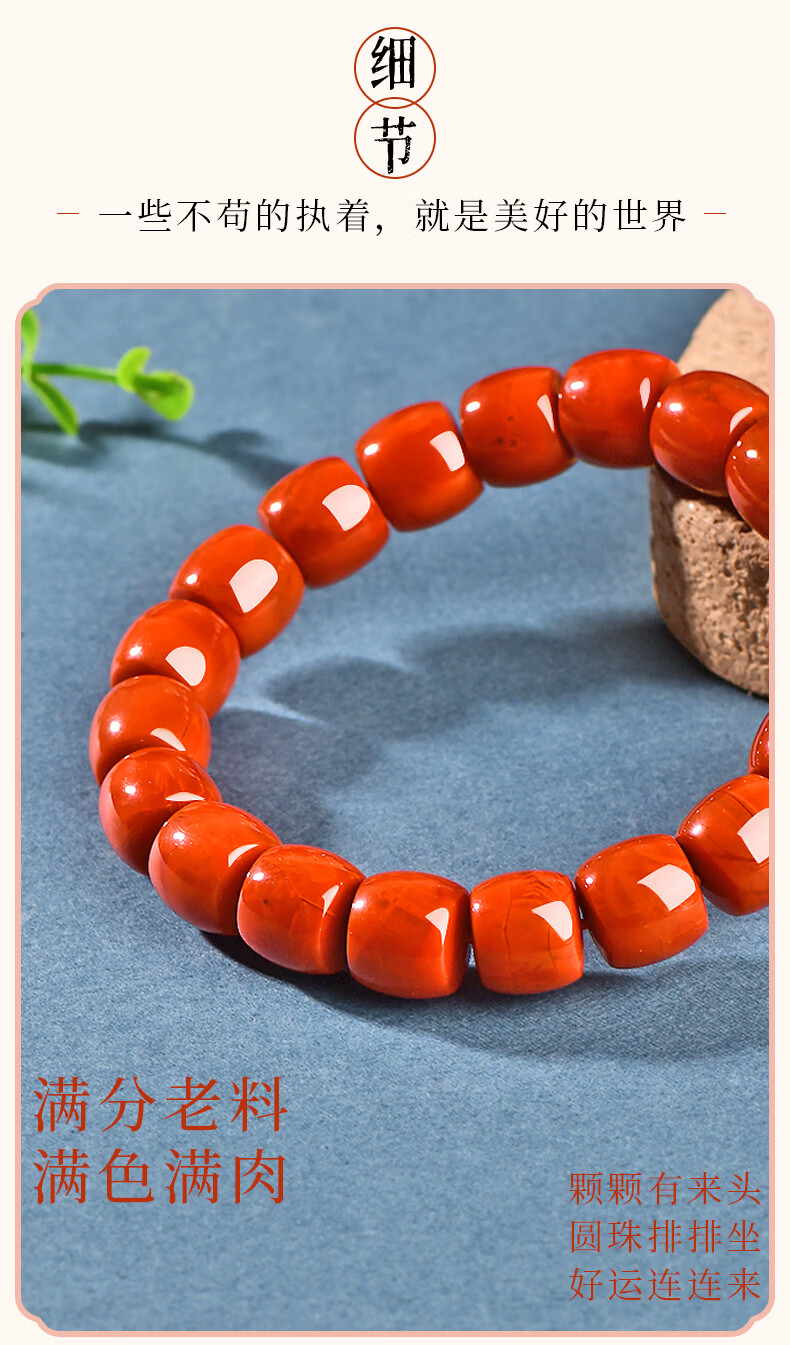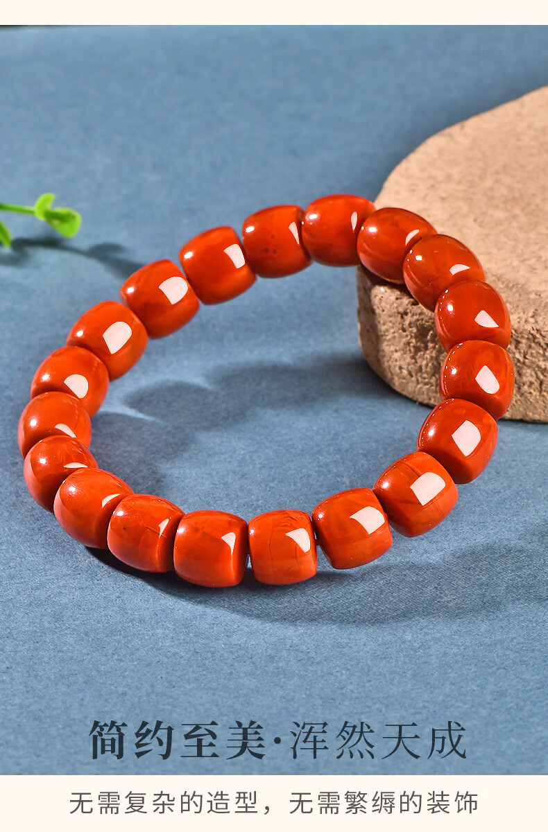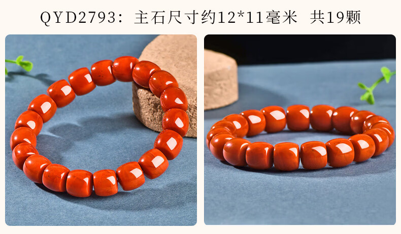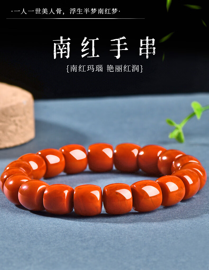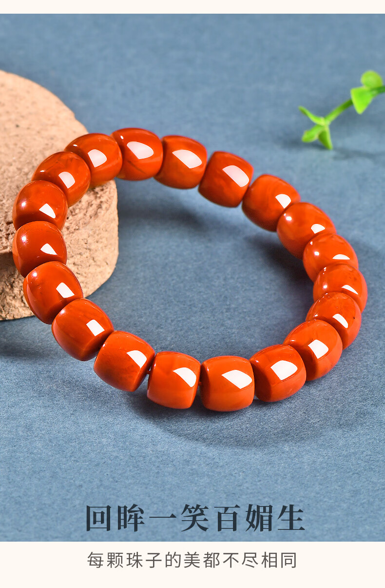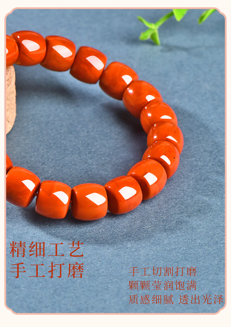 神翠鸟南红手串男女单圈直切玛瑙手链柿子红古风串珠送人生日礼物 款一 约12*11毫米QYD2793i