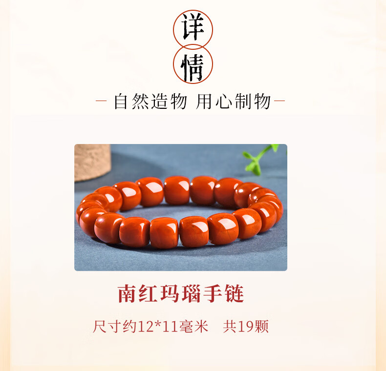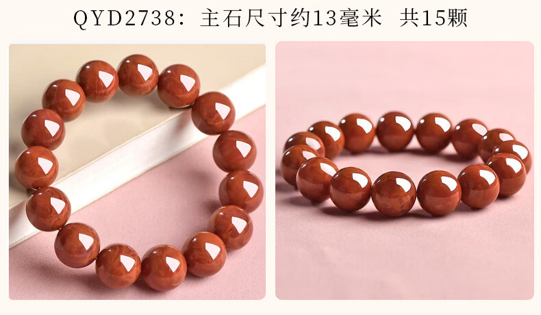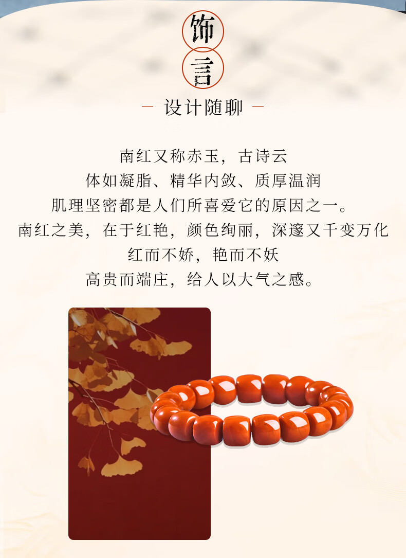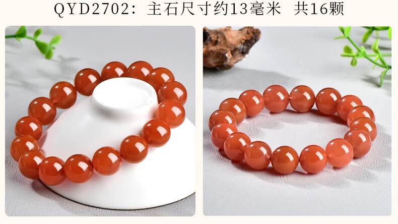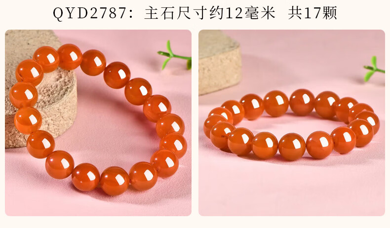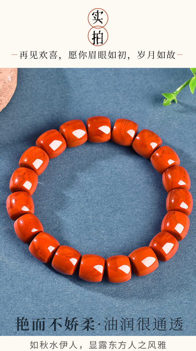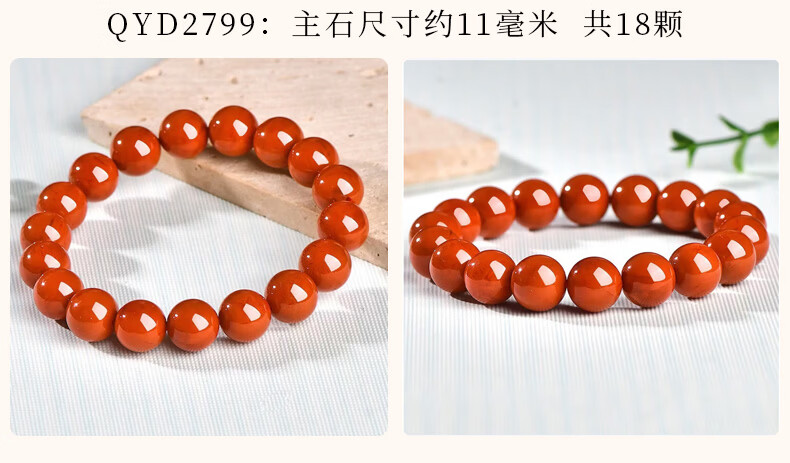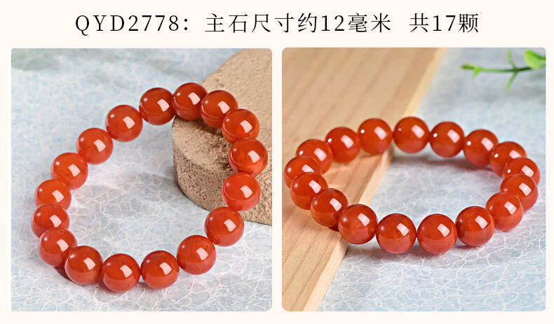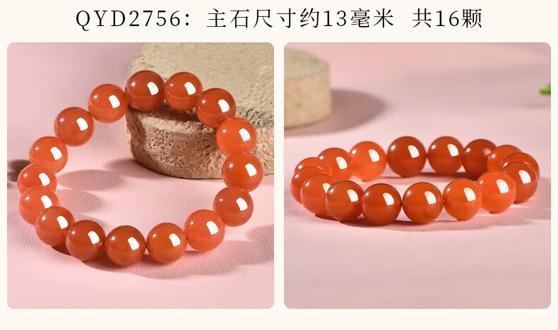 神翠鸟南红手串男女单圈直切玛瑙手链柿子红古风串珠送人生日礼物 款一 约12*11毫米QYD2793i