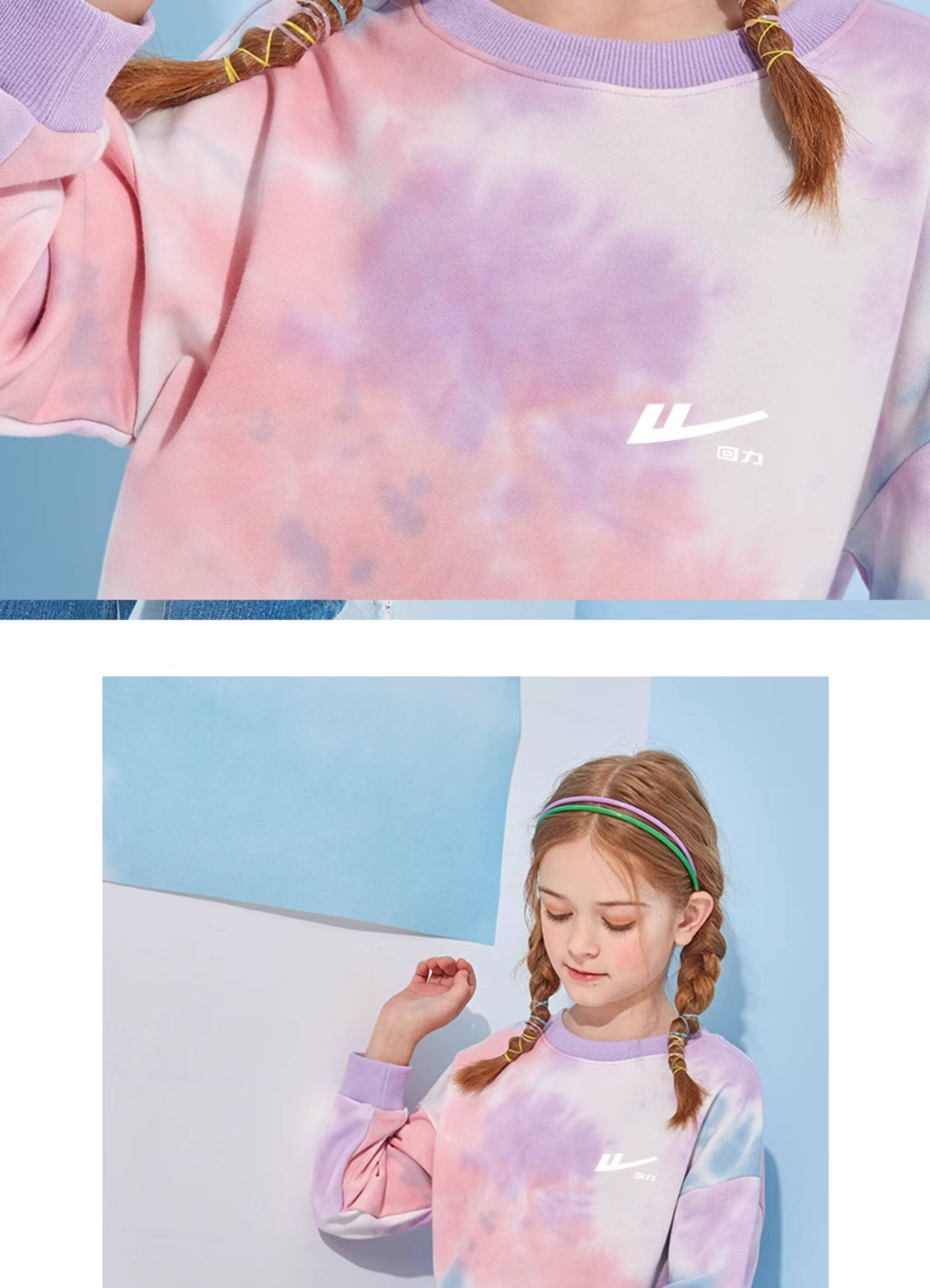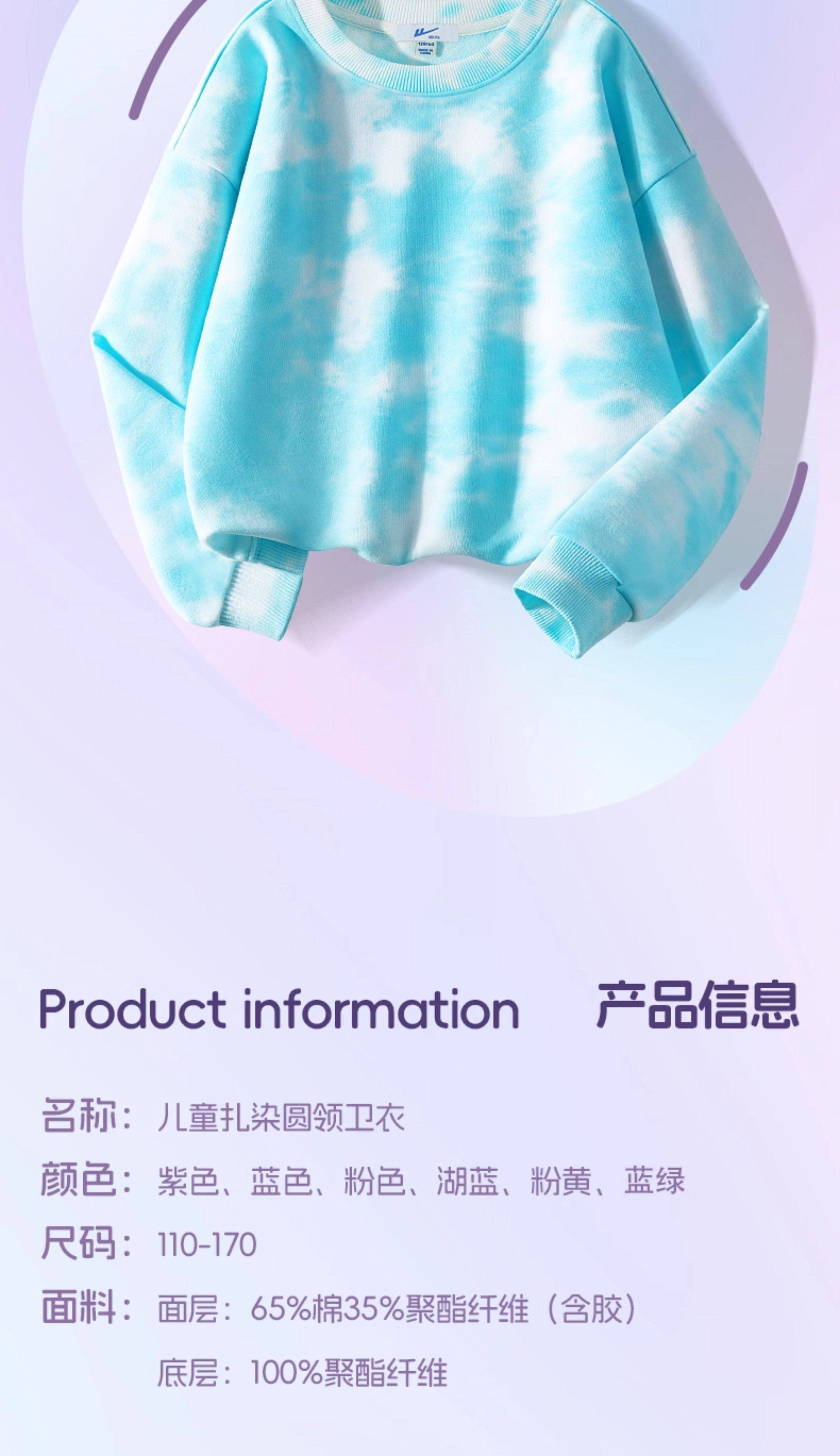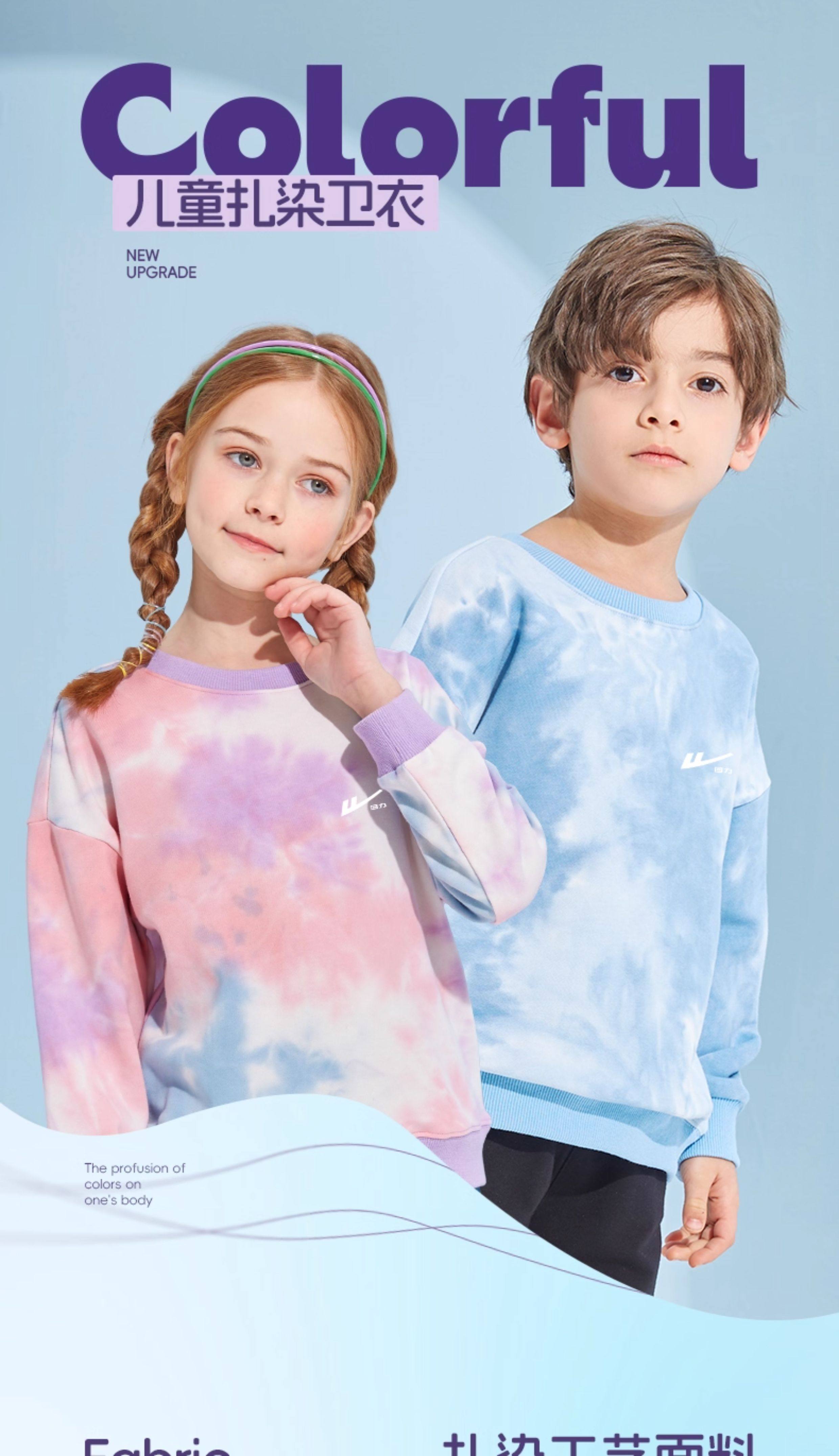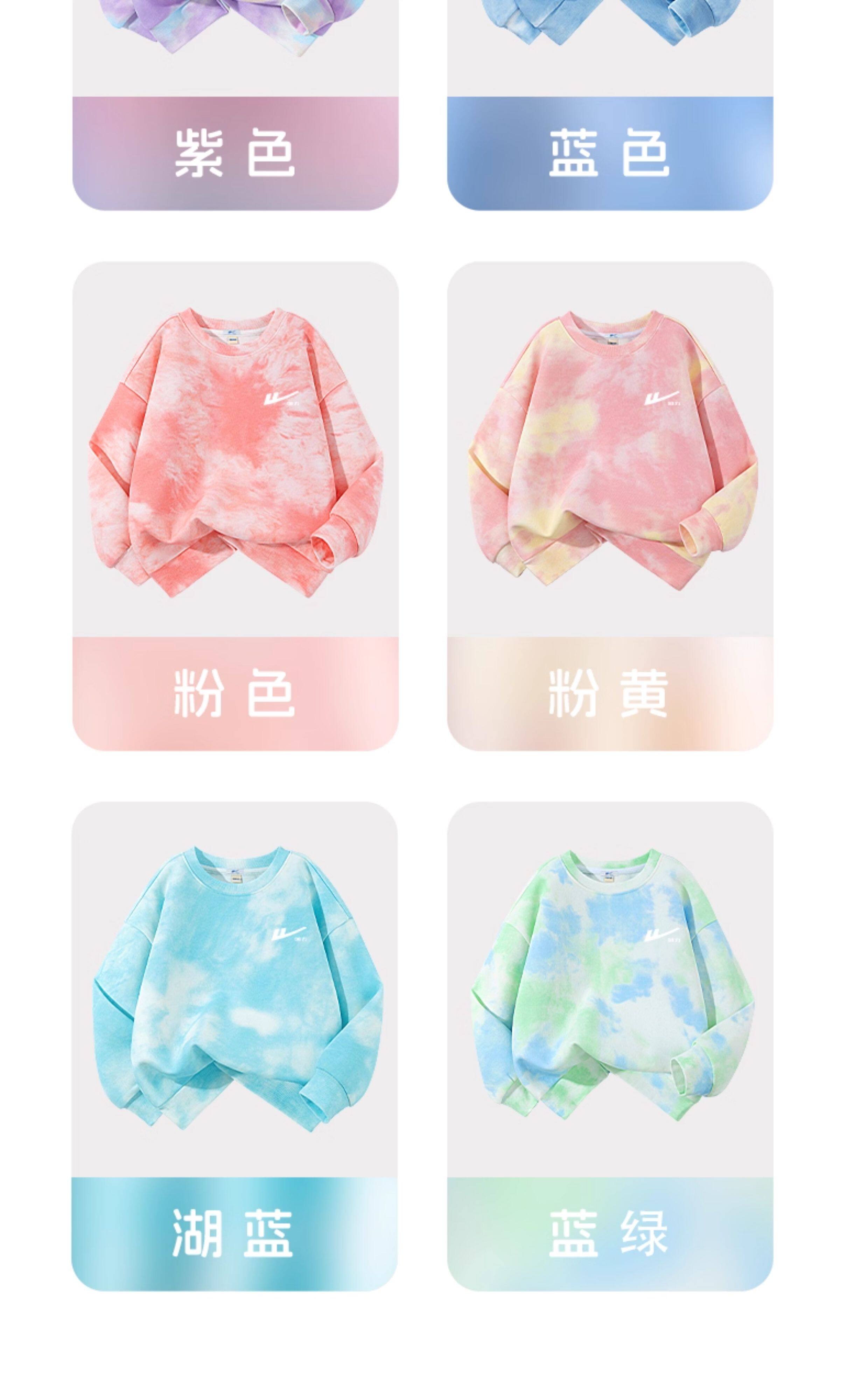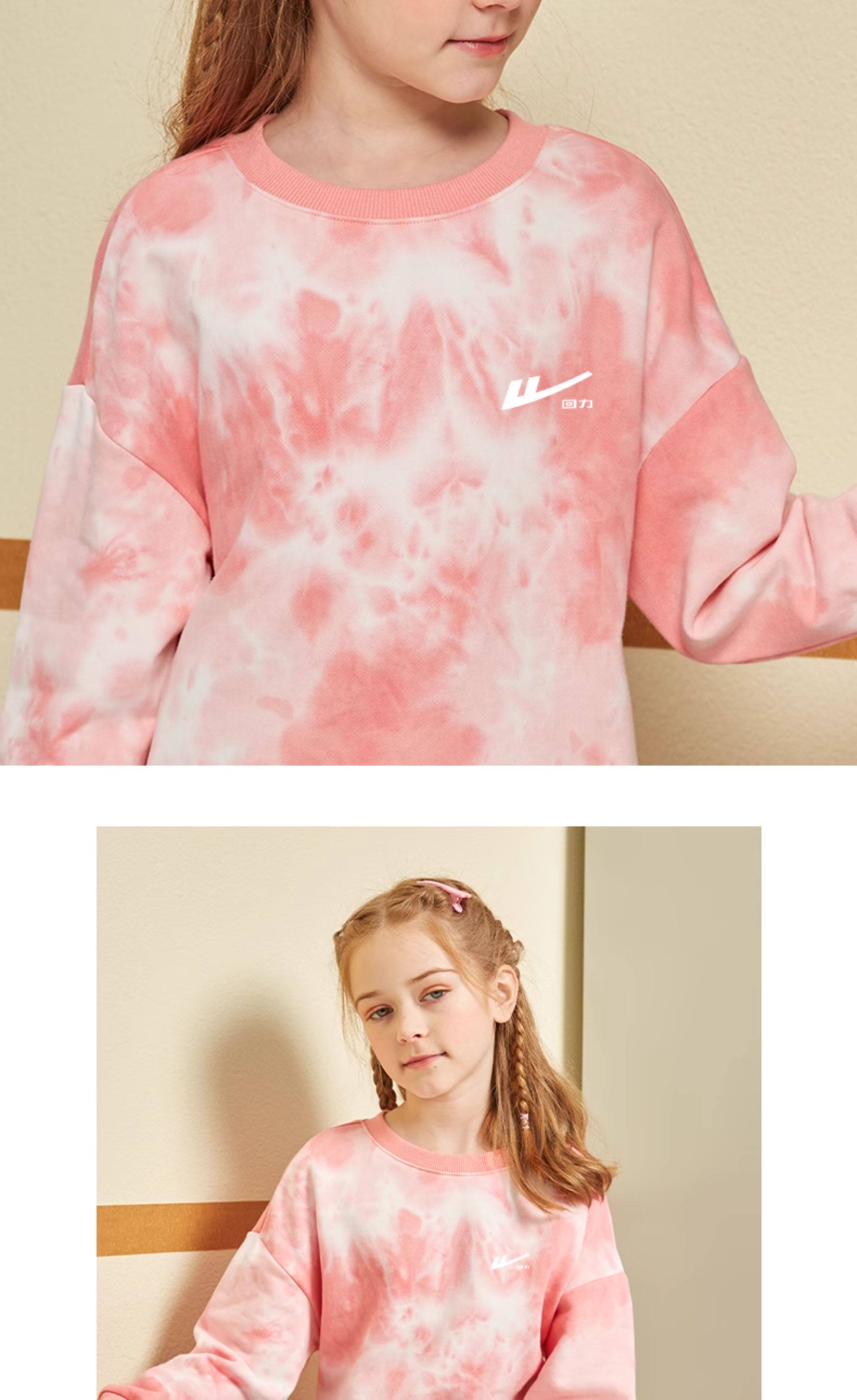 回力童装男童套装春秋款青少年春季圆领长袖春装儿童2026新款扎染卫衣 湖蓝/H白回力小K-灰/H白回力小K 110