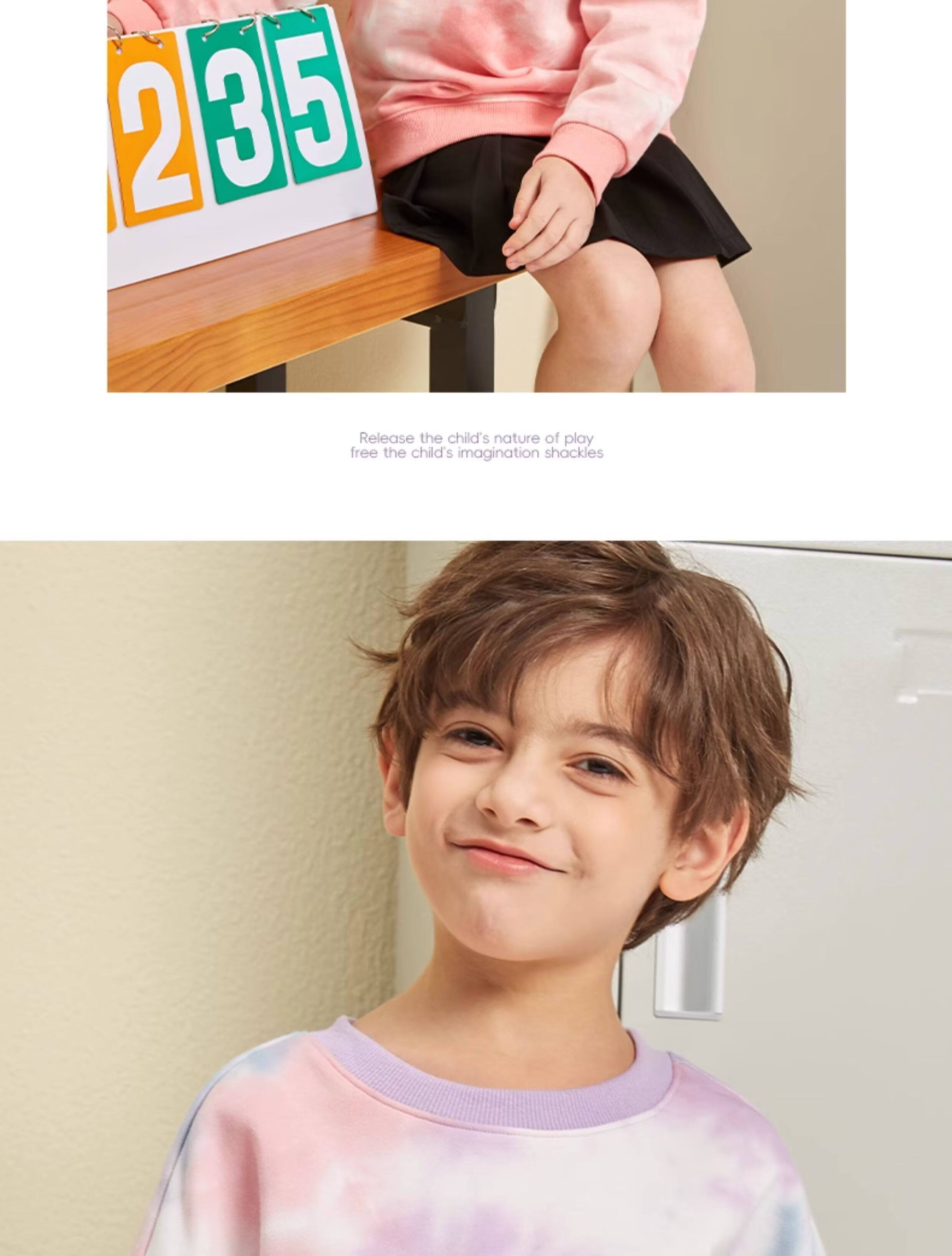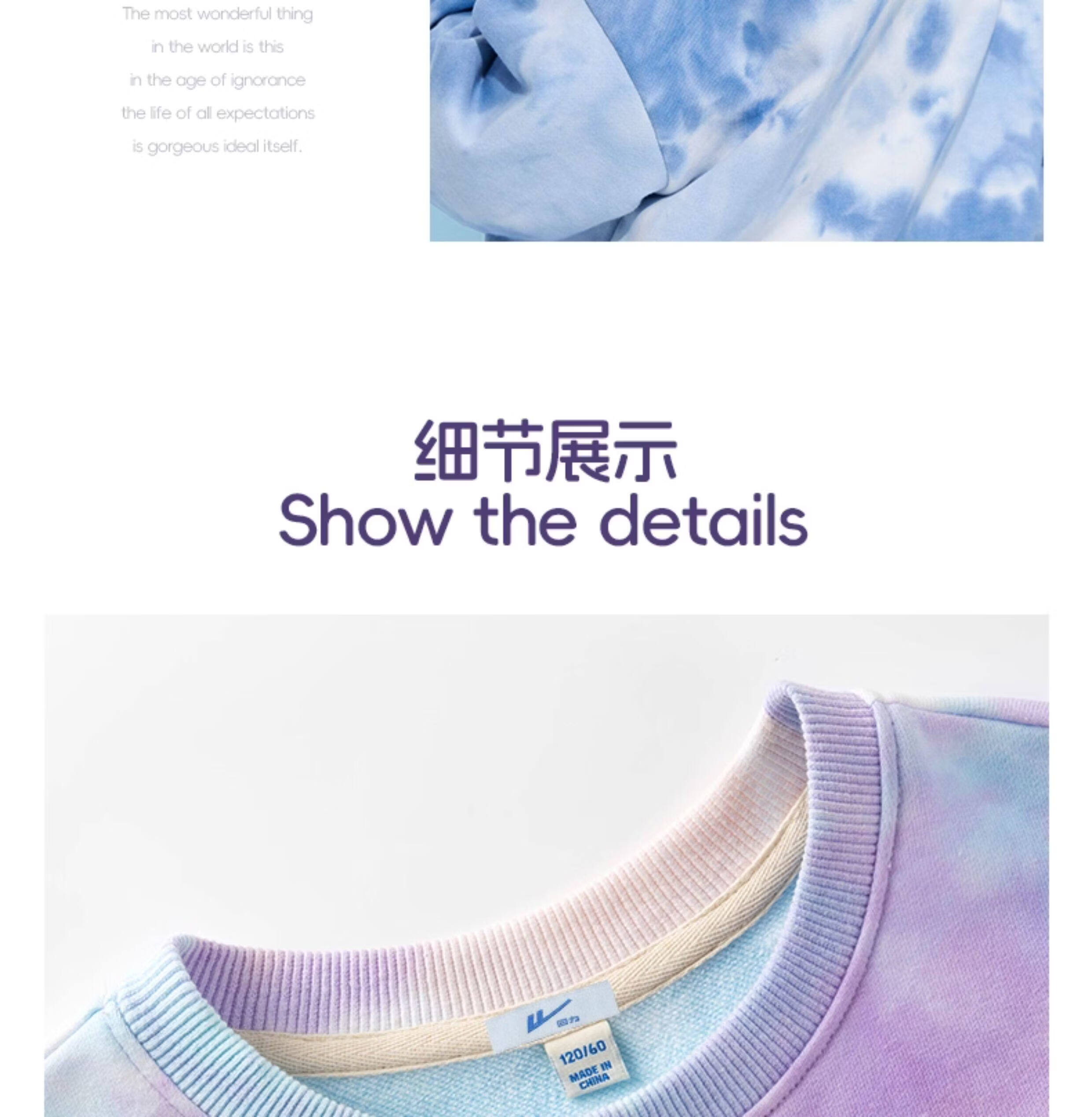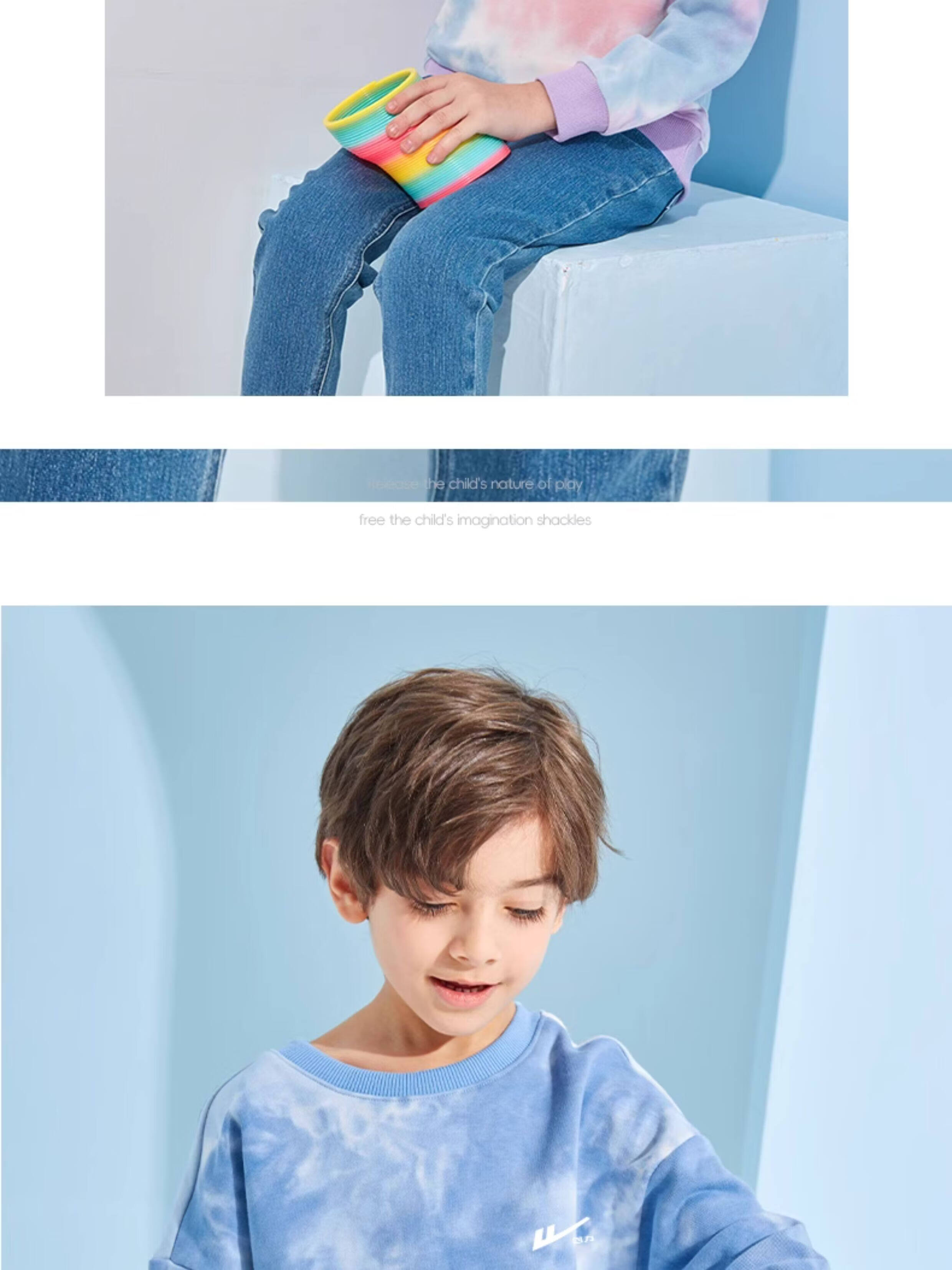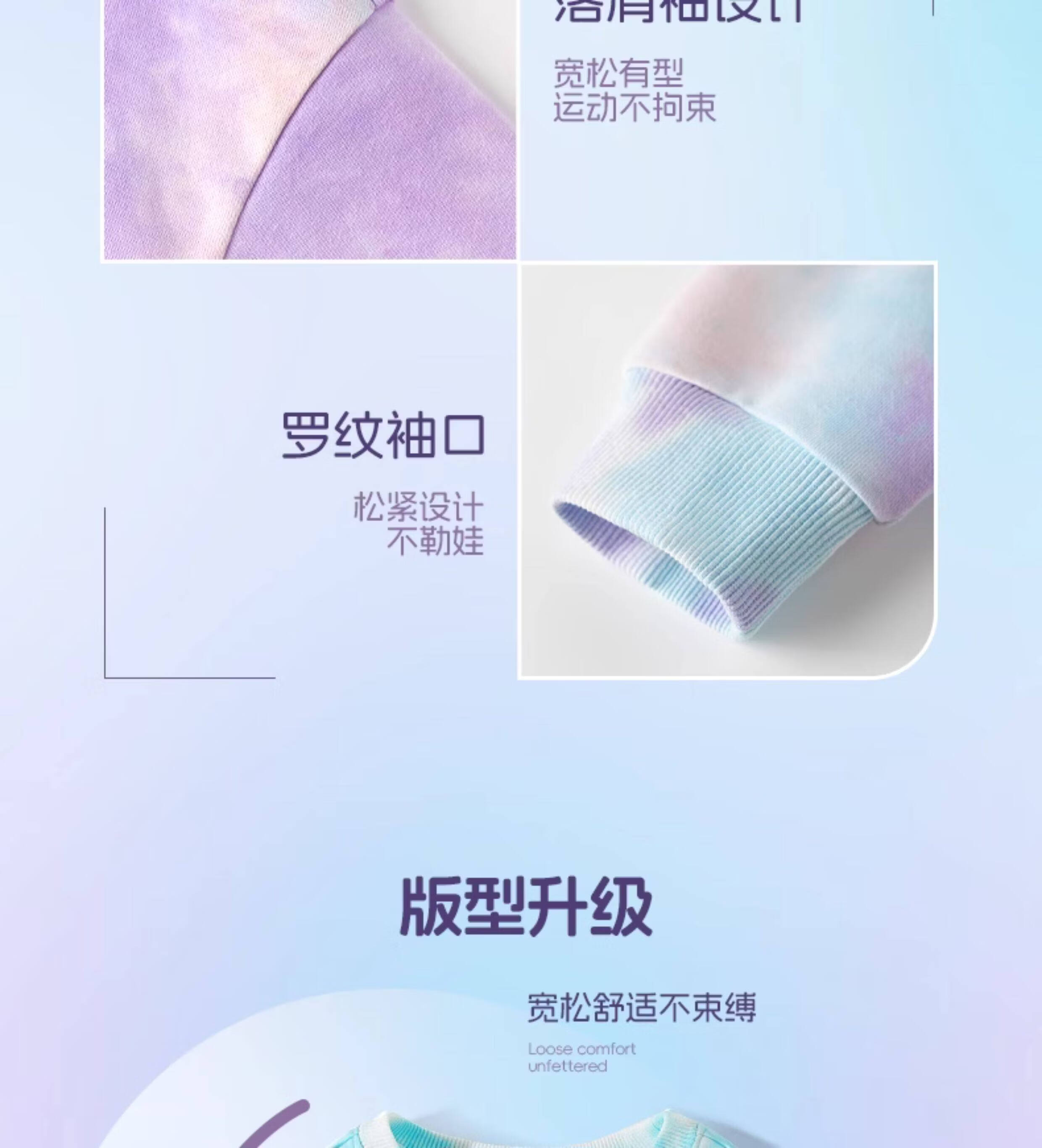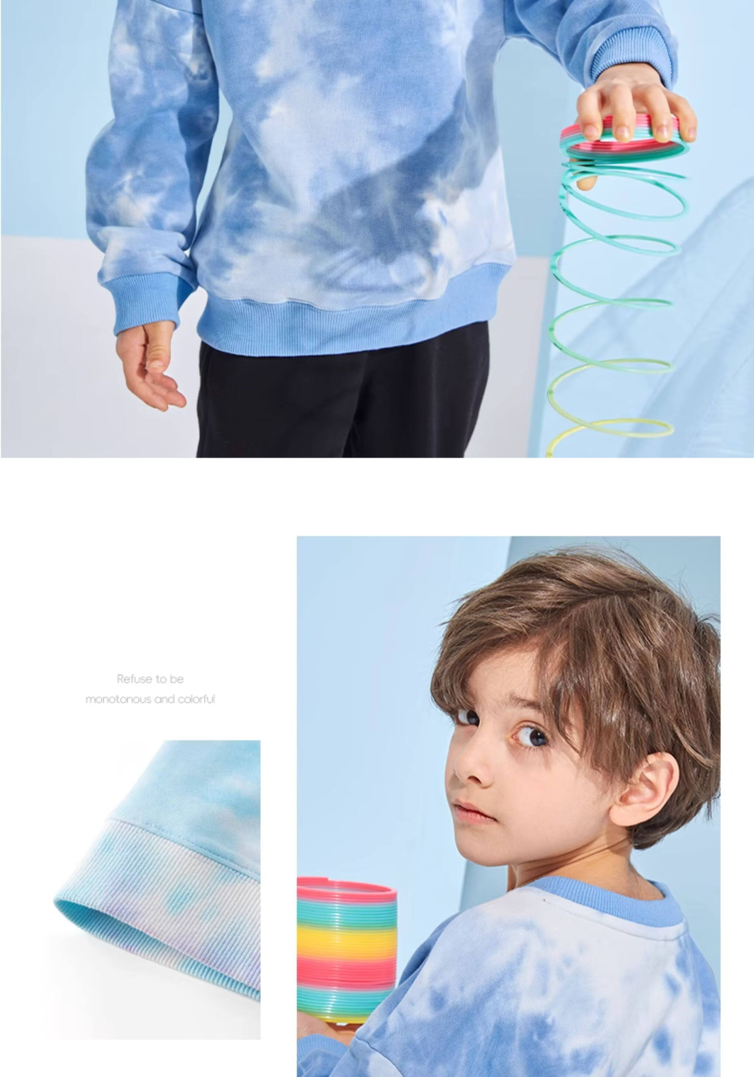 回力童装男童套装春秋款青少年春季圆领长袖春装儿童2026新款扎染卫衣 湖蓝/H白回力小K-灰/H白回力小K 110