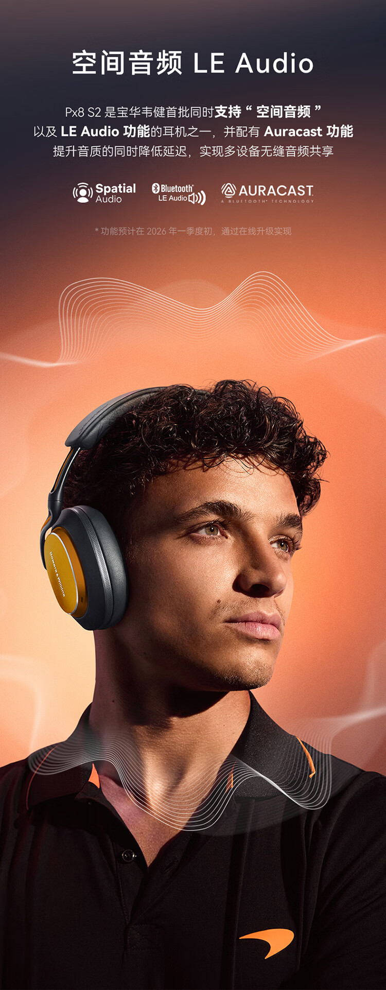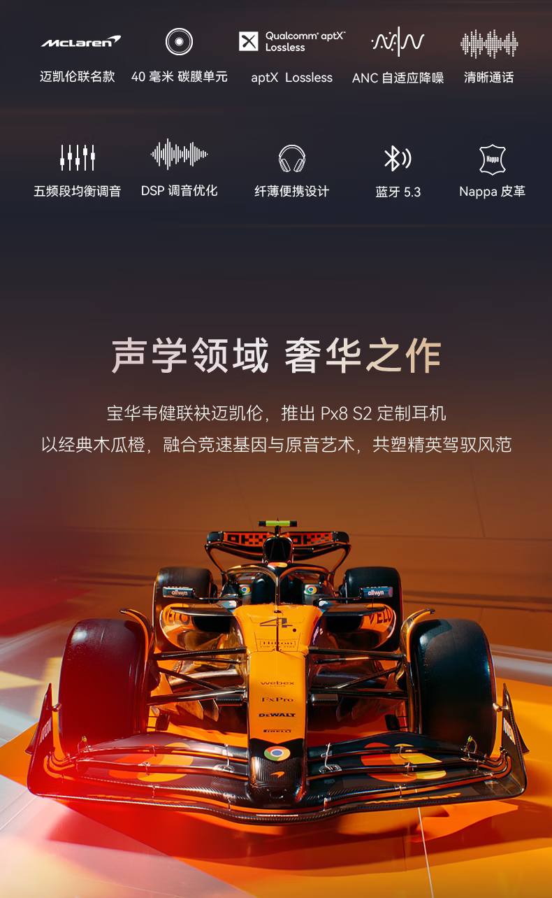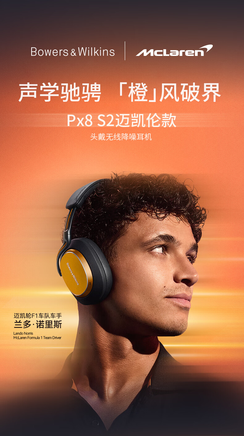 宝华韦健Px8S2迈凯伦联名款【新品上市】旗舰无线HiFi头戴式蓝牙耳机 B&W智能主动降噪高保真音乐运动跑步 Px8S2 迈凯伦联名款