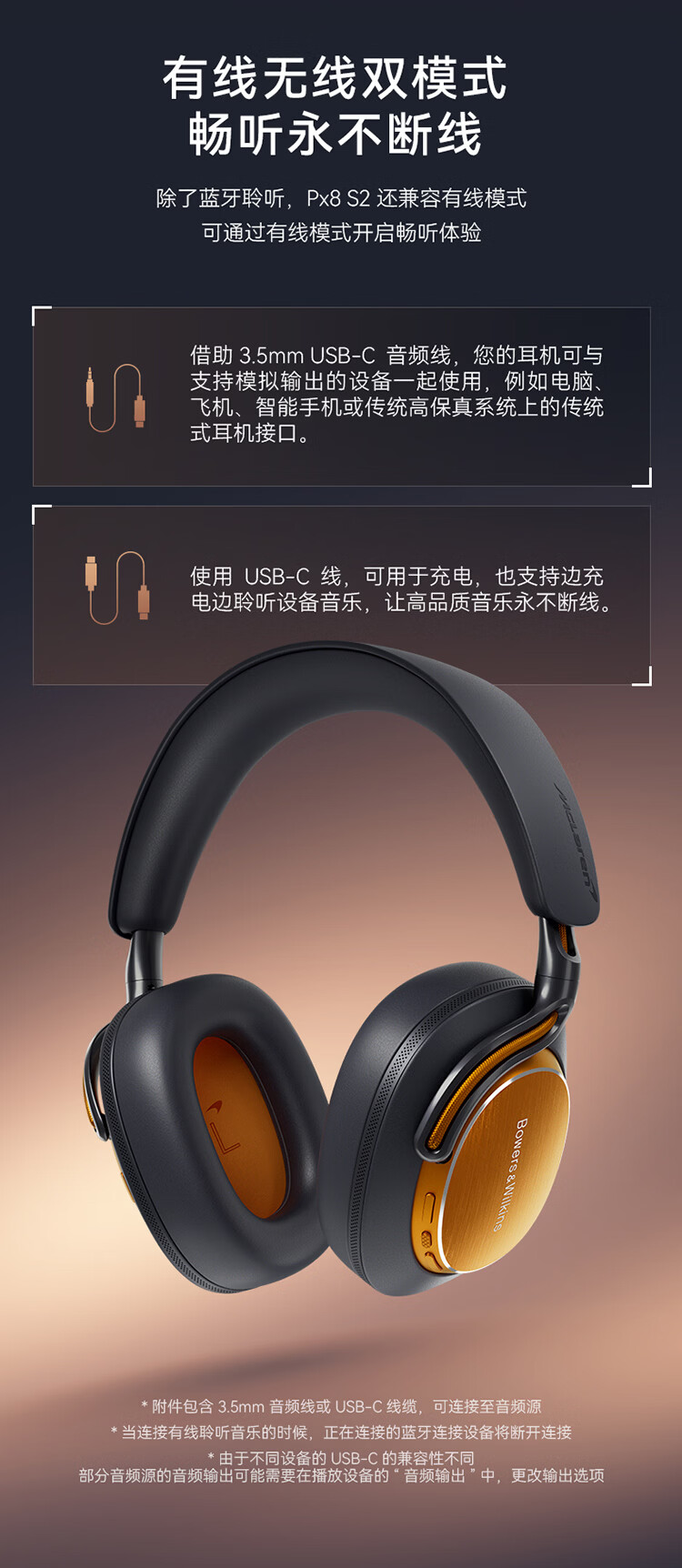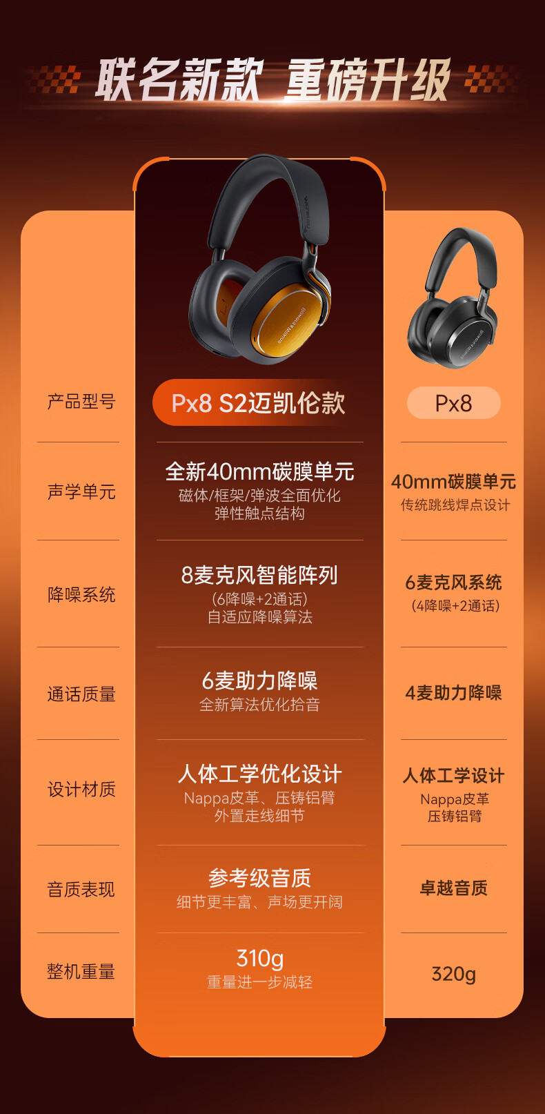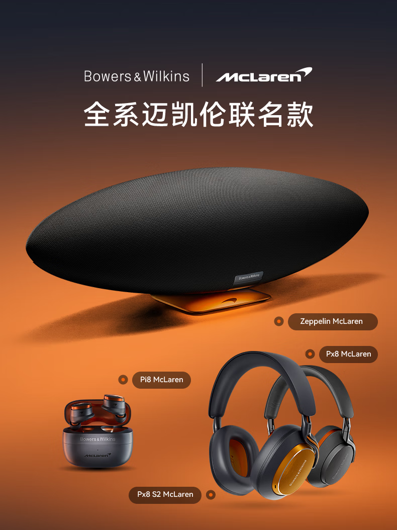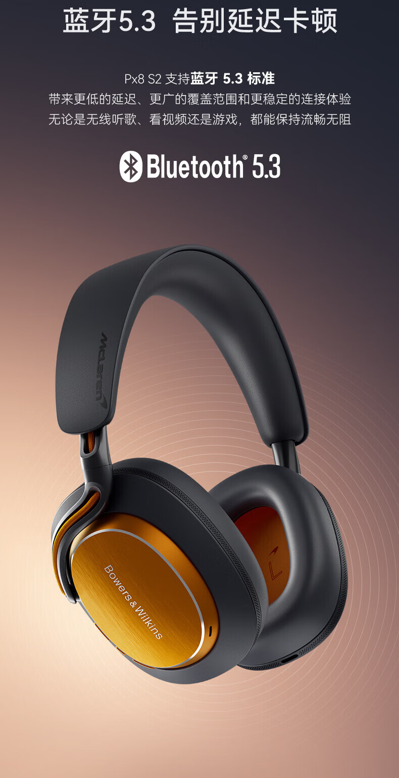 宝华韦健Px8S2迈凯伦联名款【新品上市】旗舰无线HiFi头戴式蓝牙耳机 B&W智能主动降噪高保真音乐运动跑步 Px8S2 迈凯伦联名款