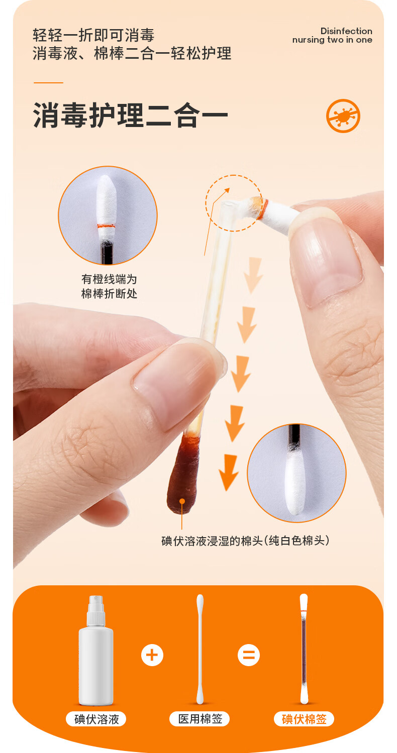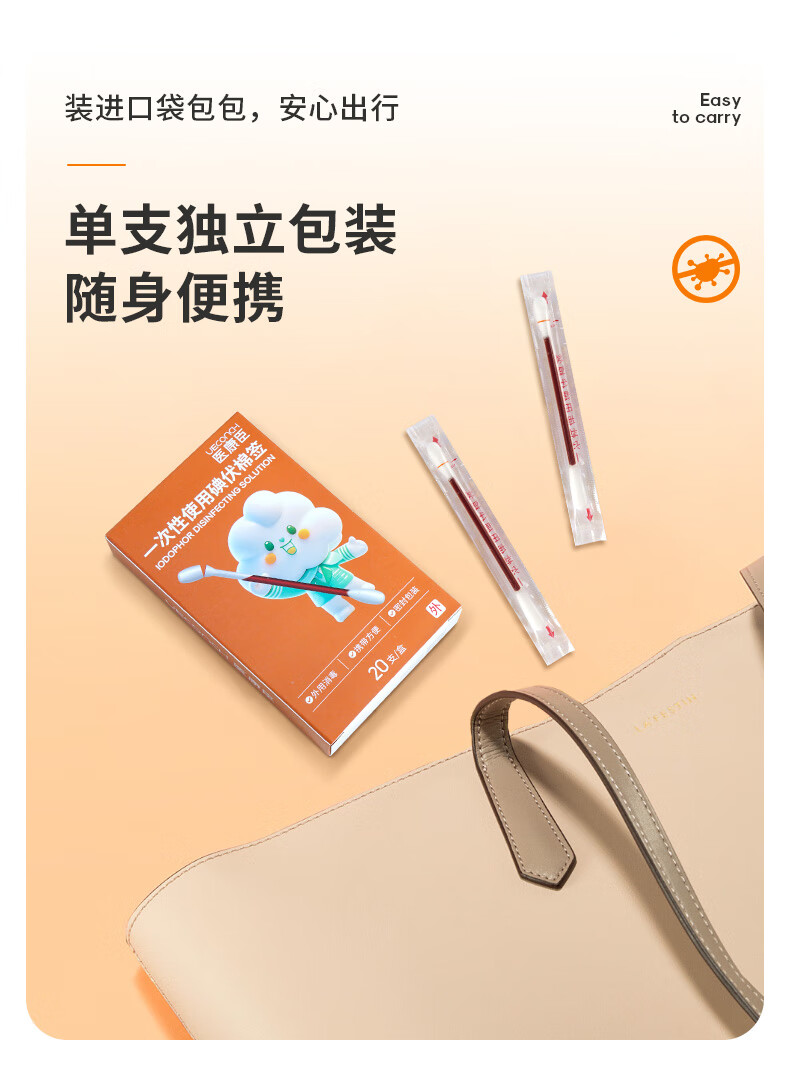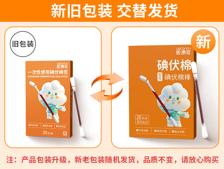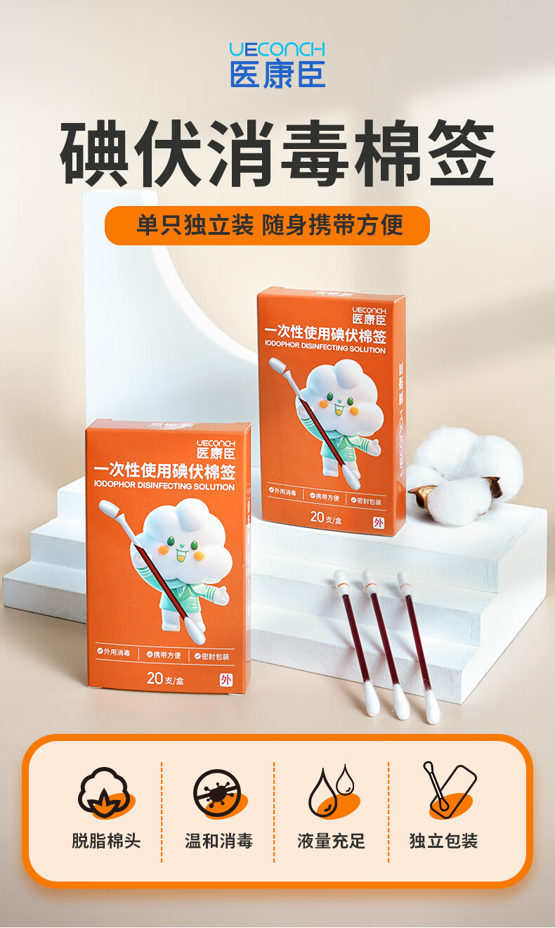 医康臣(UECONCH)碘伏棉医用消毒液棉签棉棒 新生儿婴儿肚脐消毒碘酒伤口消毒20支