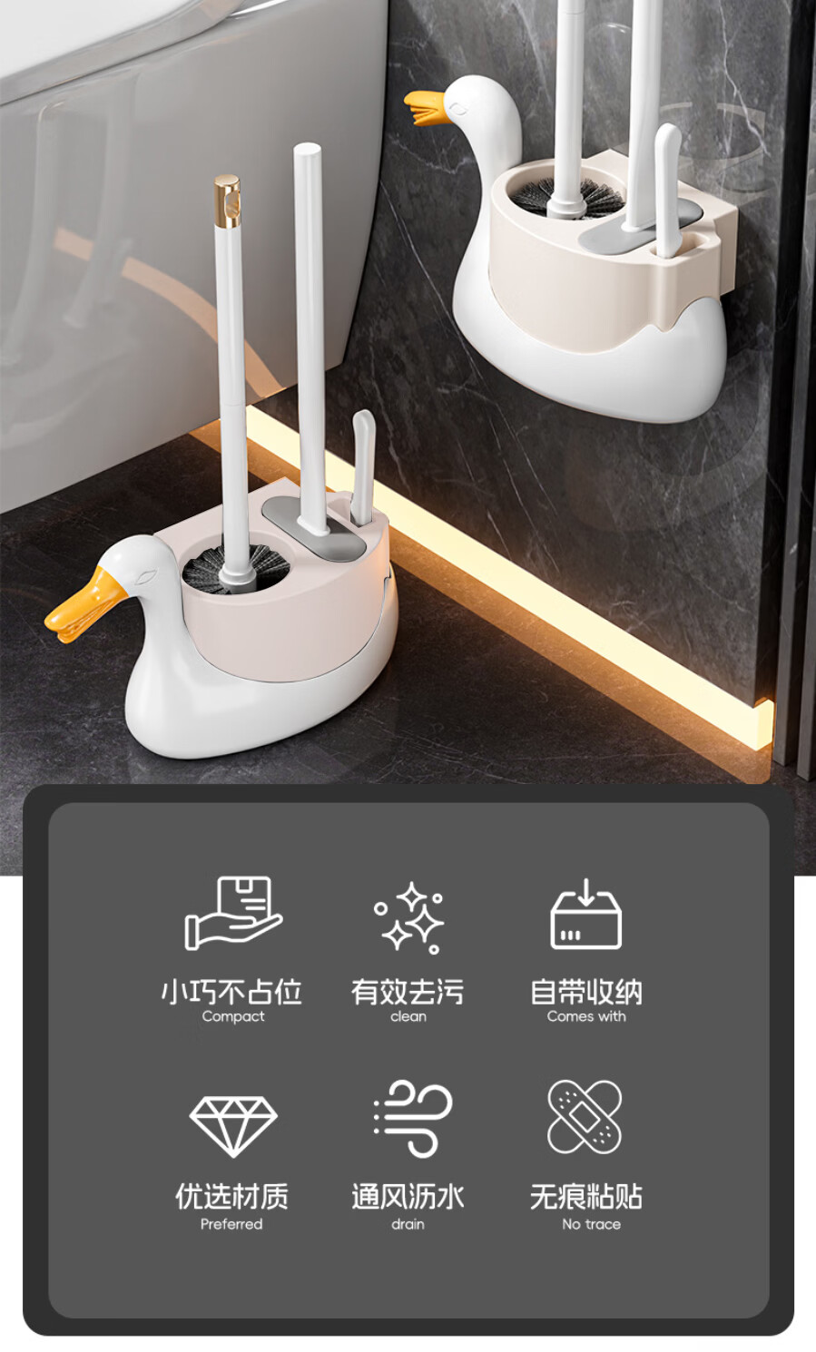 美家生活三合一马桶刷壁挂式家用轻奢无死角卫生间缝隙刷子多功能清洁套装
