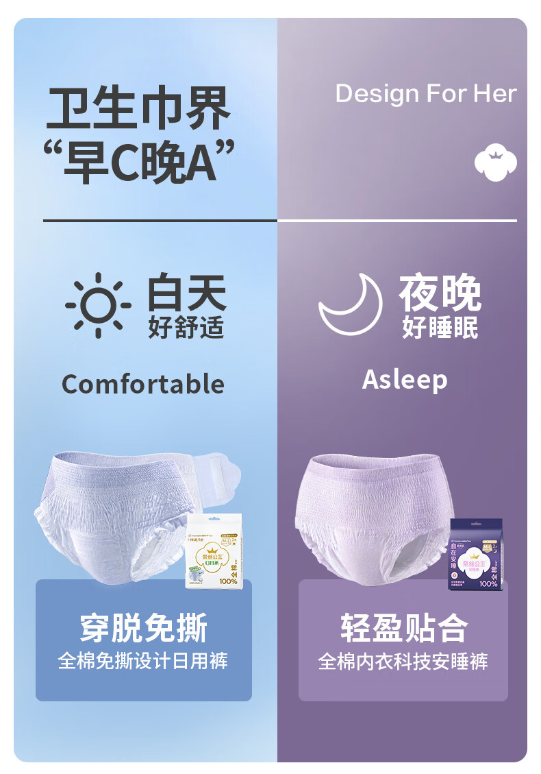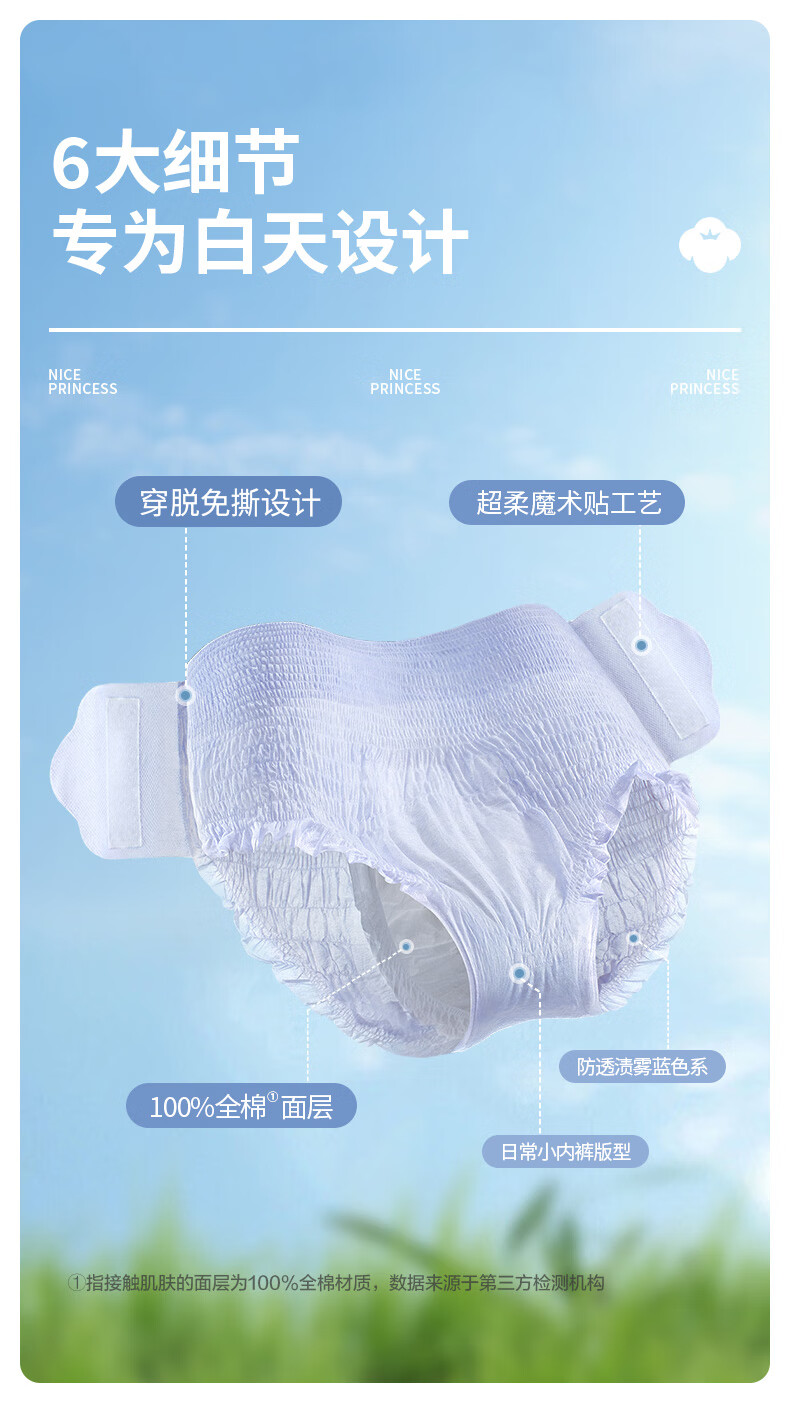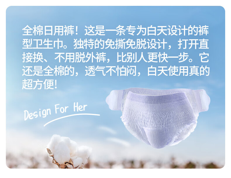 全棉时代【卢昱晓推荐】奈丝公主安心裤早安裤裤型卫生巾ML码10条