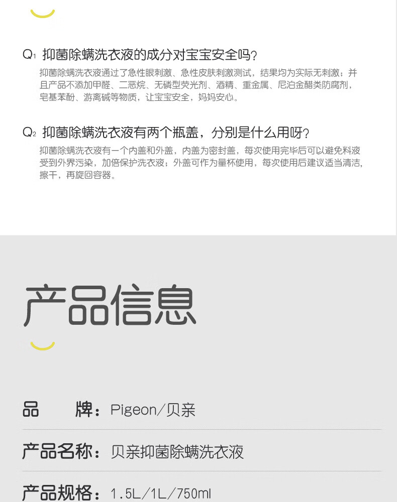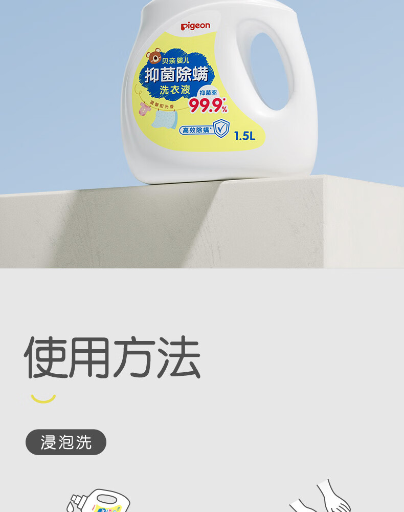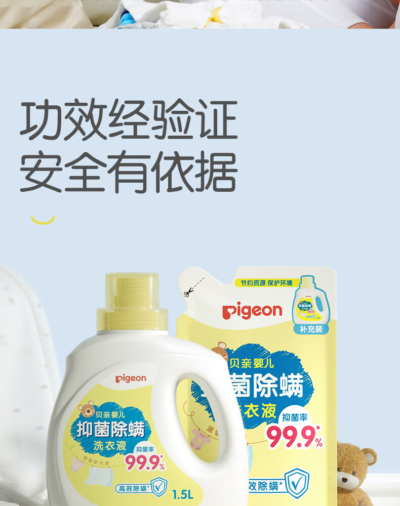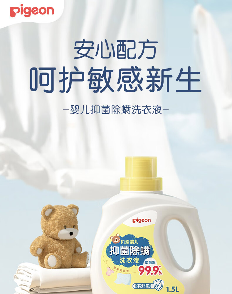 贝亲婴儿洗衣液 儿童洗衣液 抑菌除螨洗衣液 99.9%有效抑菌 温暖阳光香3L