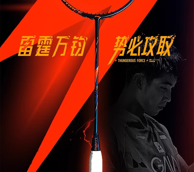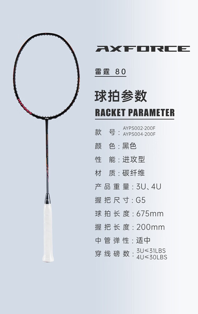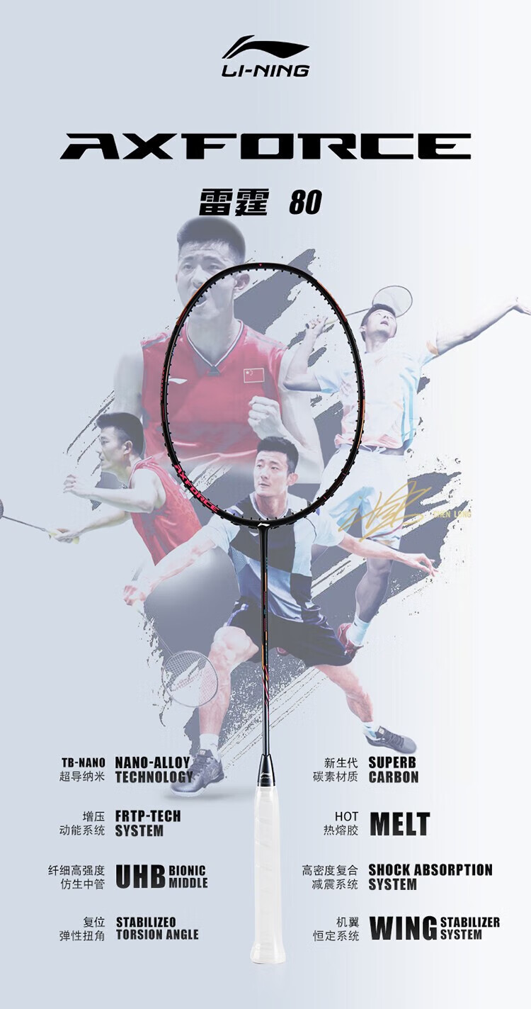 李宁(LI-NING)羽毛球拍雷霆80light 谌龙同款全碳纤维专业进攻控制大赛球拍单拍 雷霆80 黑金4Ug5 送定制穿线+手胶