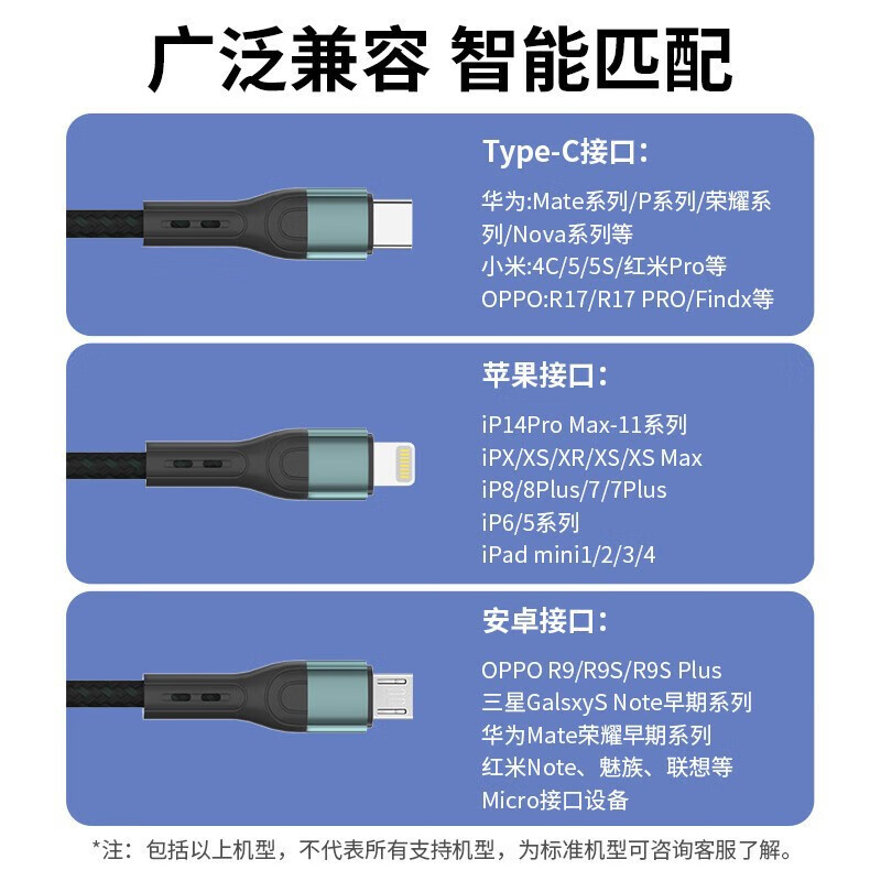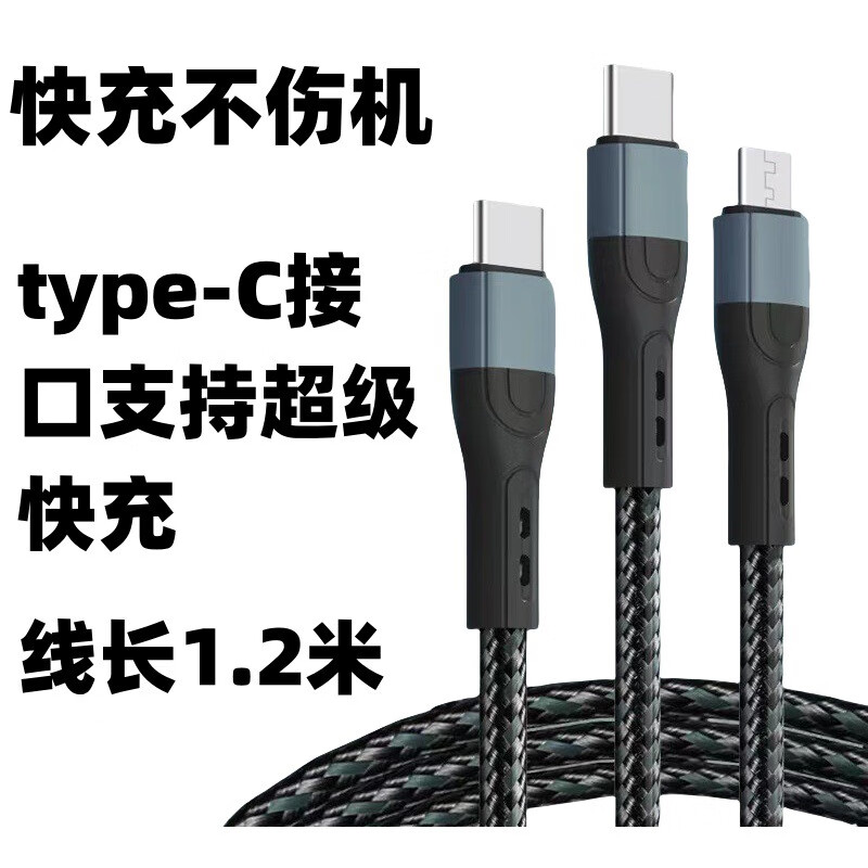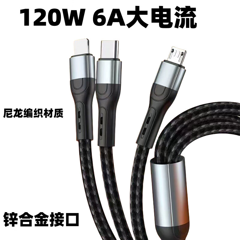 【严选好物】一拖三快充手机数据线适用于苹果typec三合一充电线 黑色 1.2米