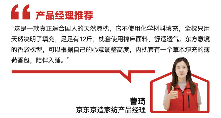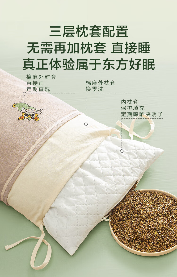 京东京造决决枕100%全决明子枕头枕芯成人颈椎枕花草荞麦枕6kg真材填充