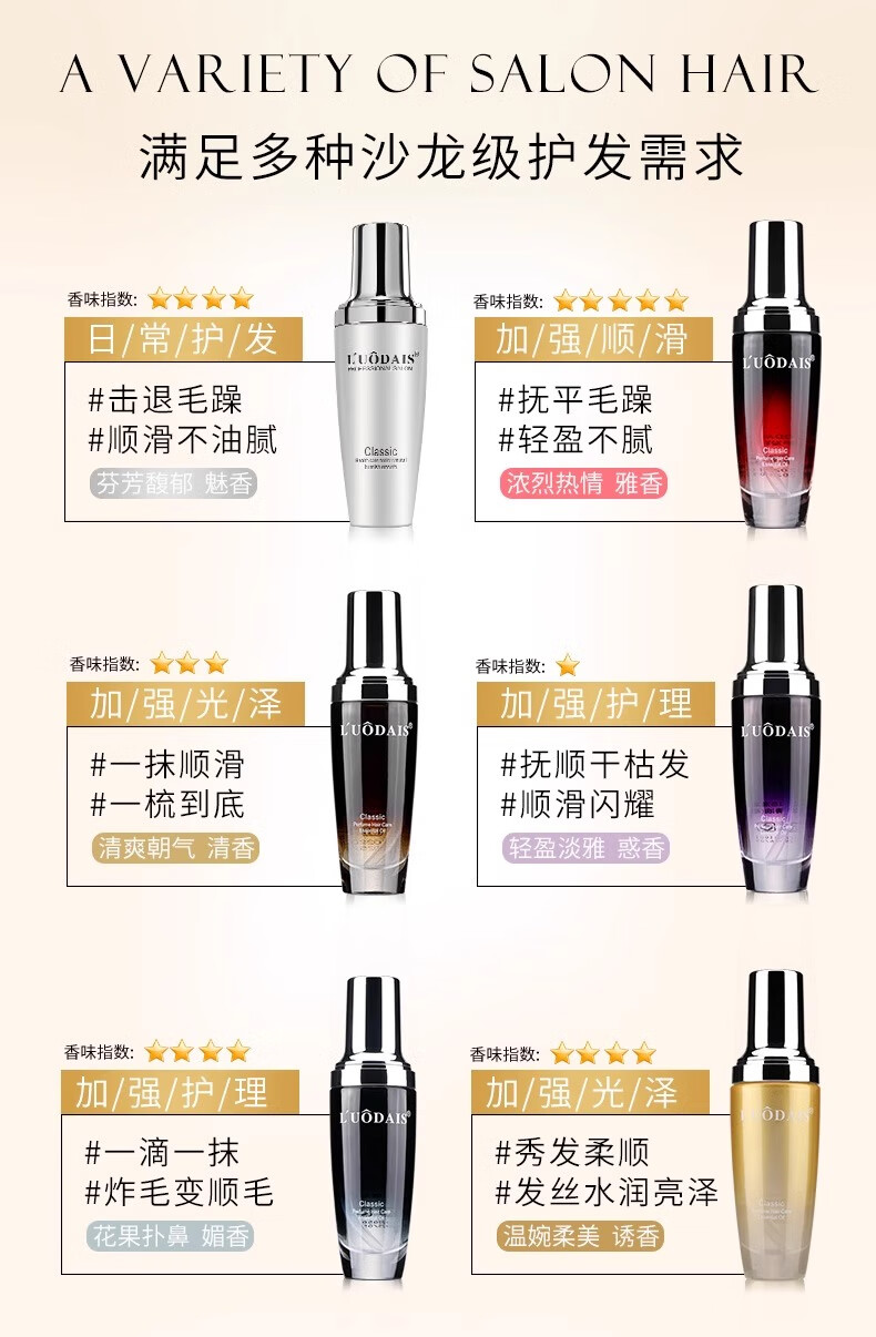 洛黛诗香水免洗护发精油卷发直发免洗烫染干枯分叉毛躁头发60ml 【浓郁】雅香*1瓶