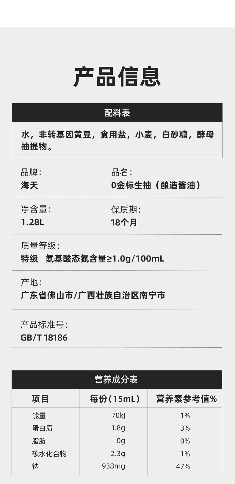 海天 0金标生抽酱油1.28L*2【特级酱油】金标系列 0添加防腐剂