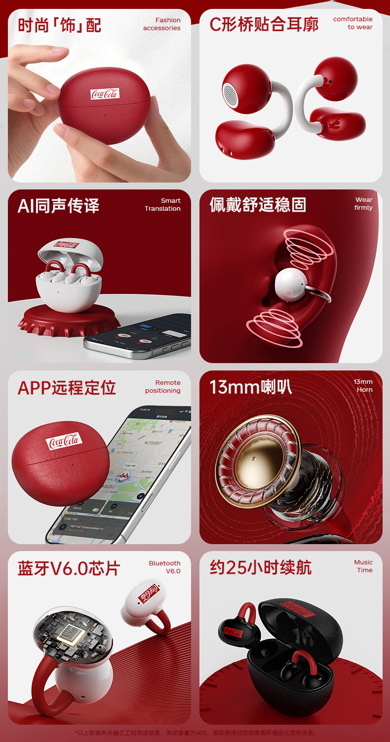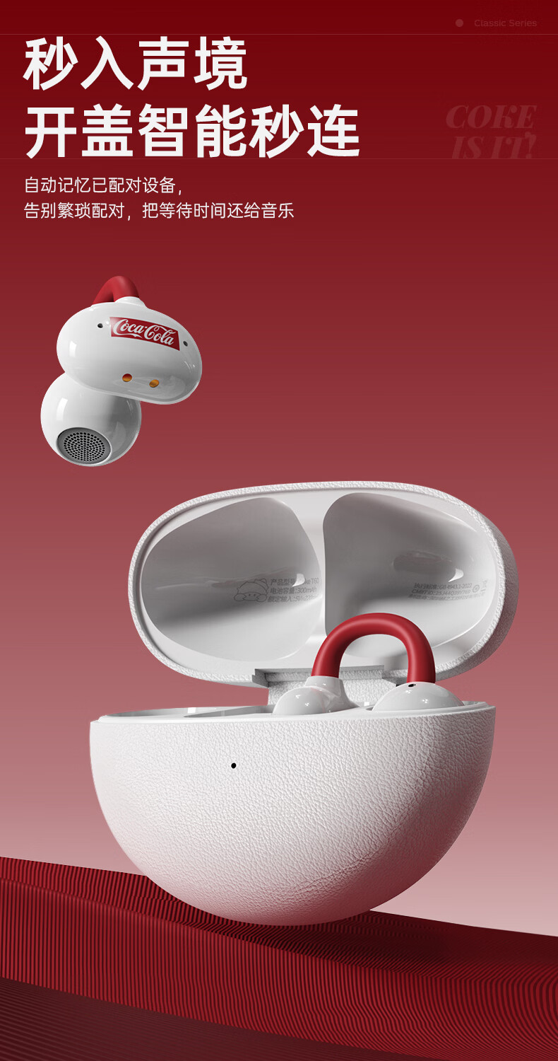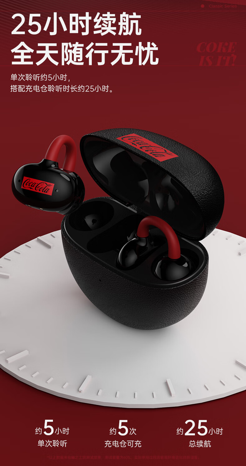 可口可乐(Coca-Cola)【2026限定骐骥红】T60耳夹式蓝牙耳机骨传导概念开放式无线不入耳运动跑步游戏耳机情侣学生礼物