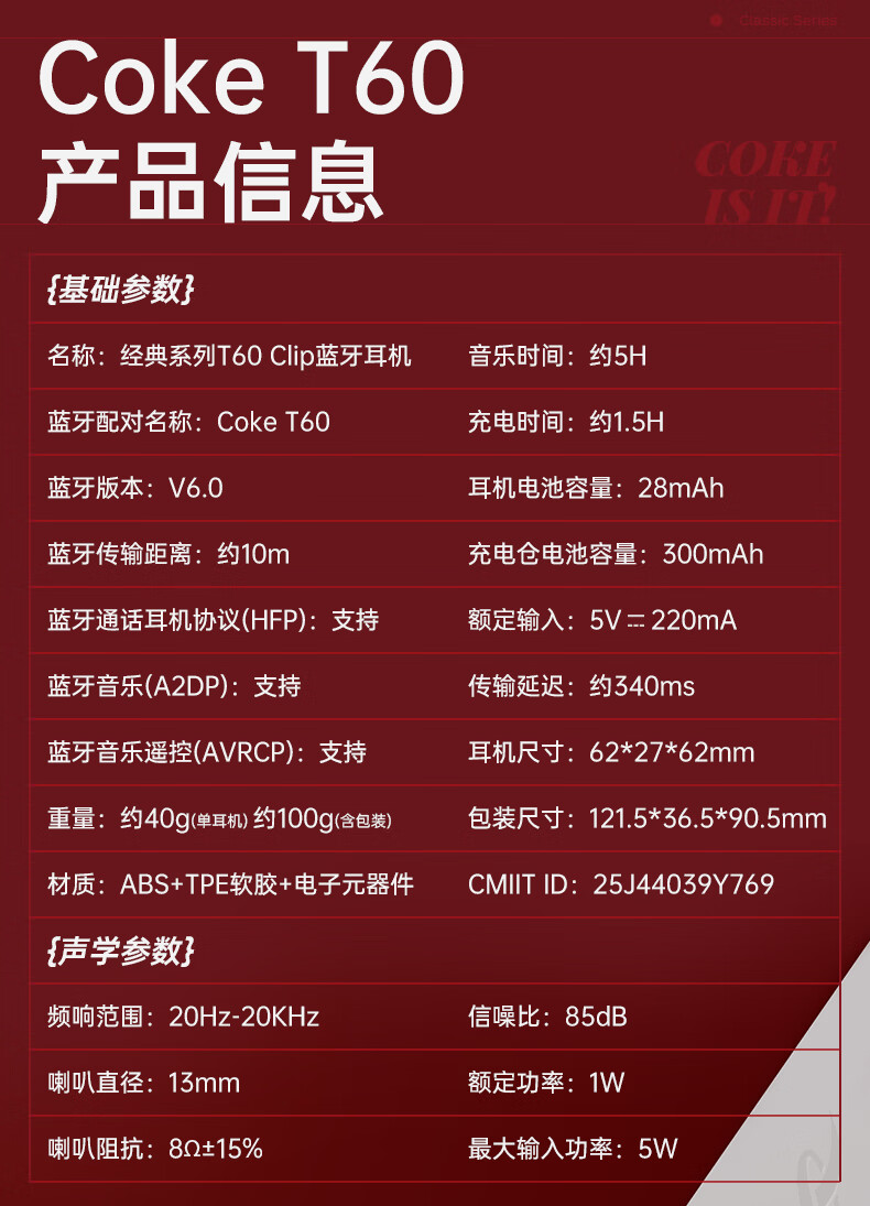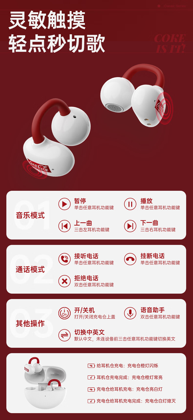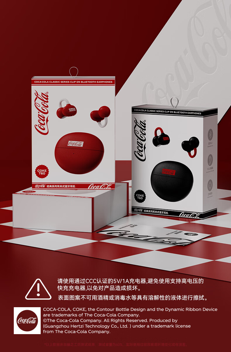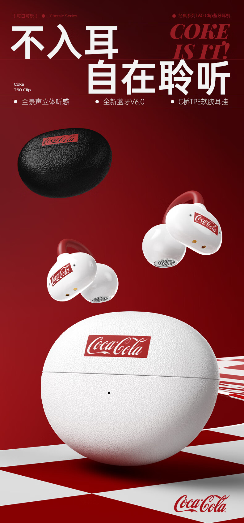 可口可乐(Coca-Cola)【2026限定骐骥红】T60耳夹式蓝牙耳机骨传导概念开放式无线不入耳运动跑步游戏耳机情侣学生礼物