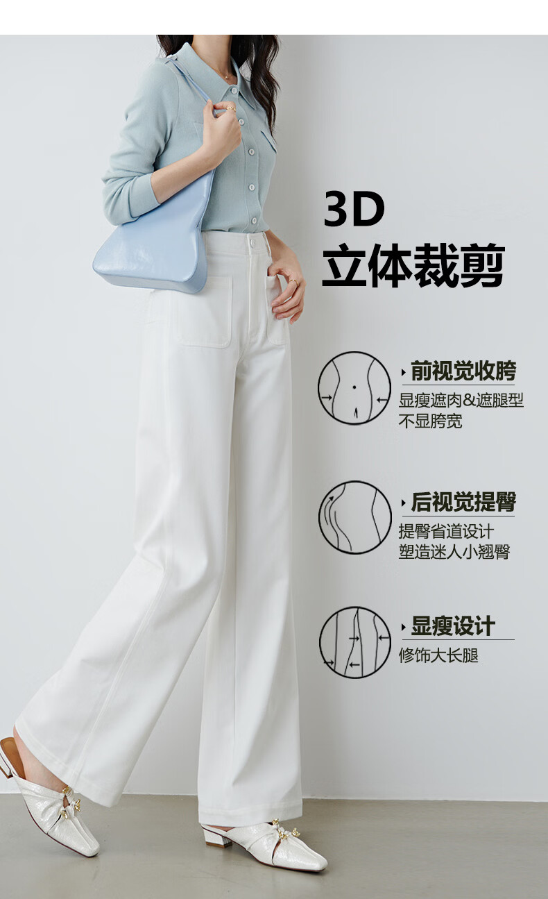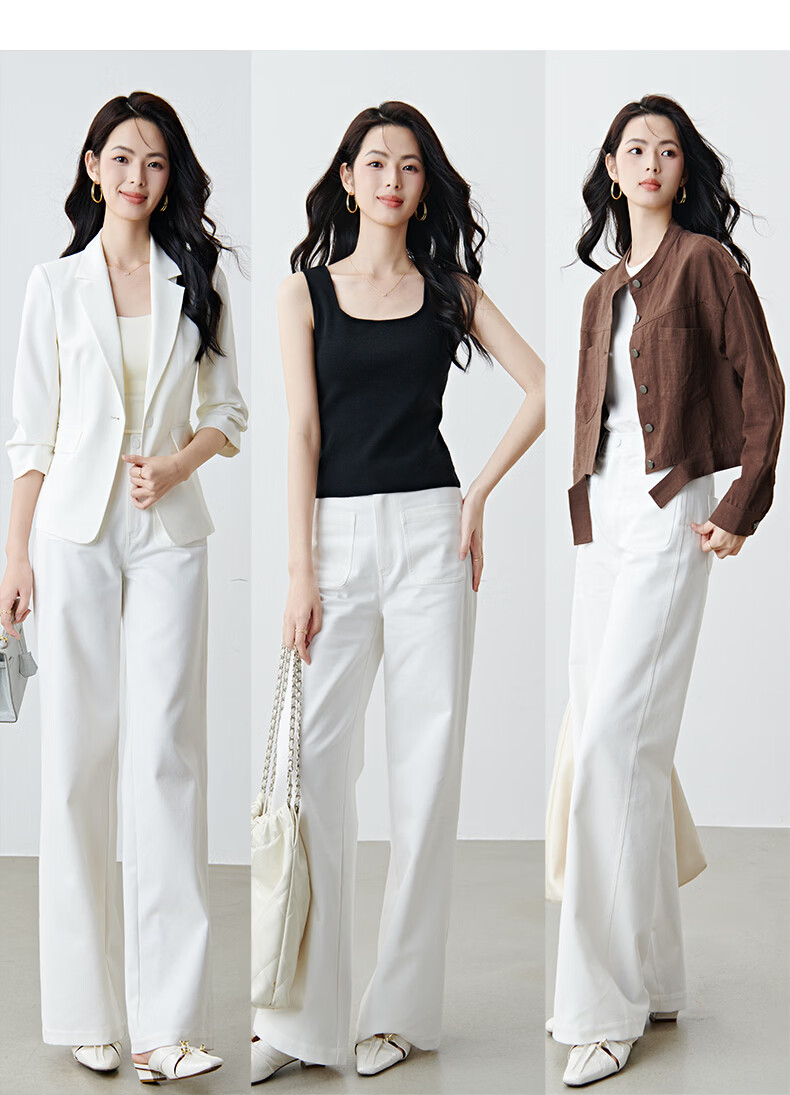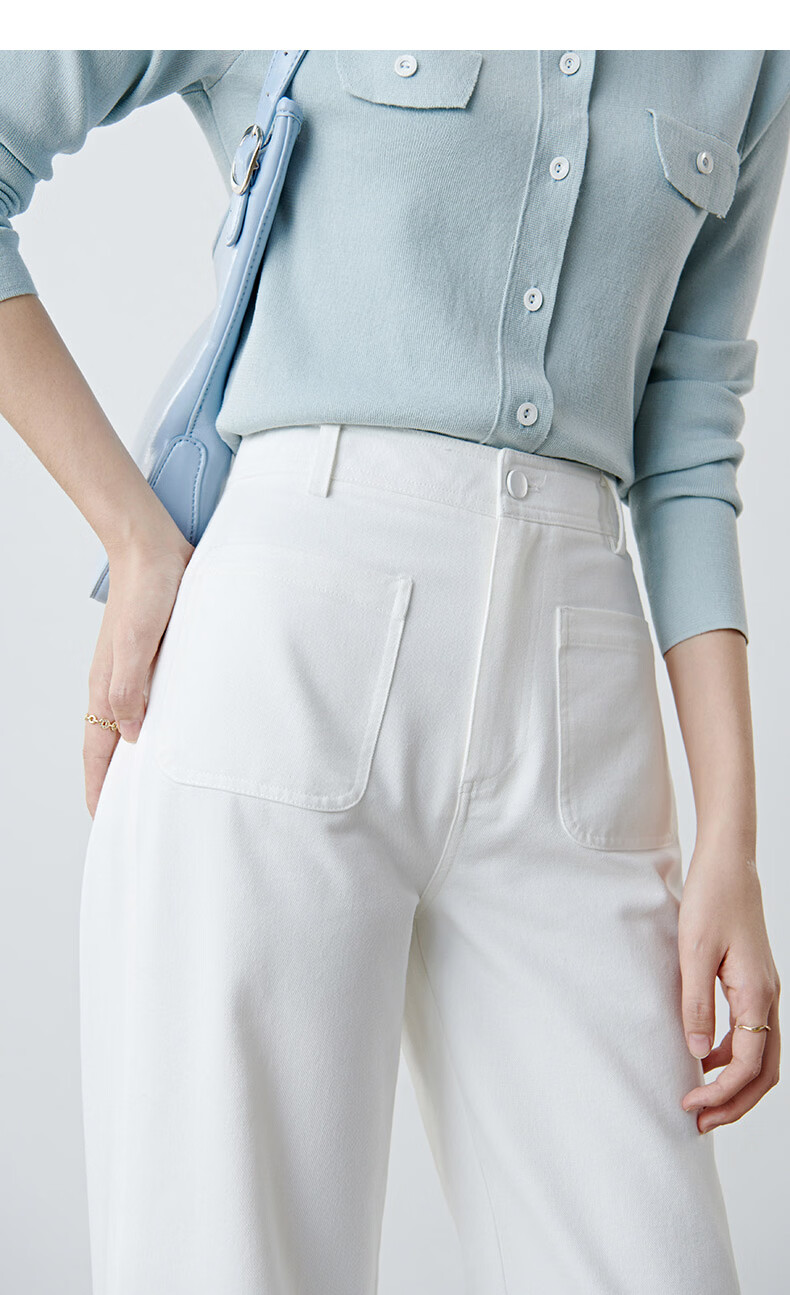 晚白2026年春款高支棉高腰白色牛仔裤宽松显瘦窄版阔腿裤女 白色 26