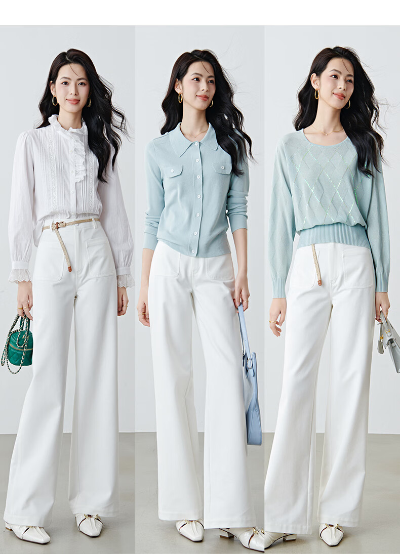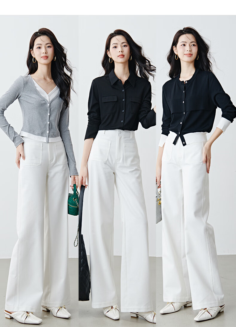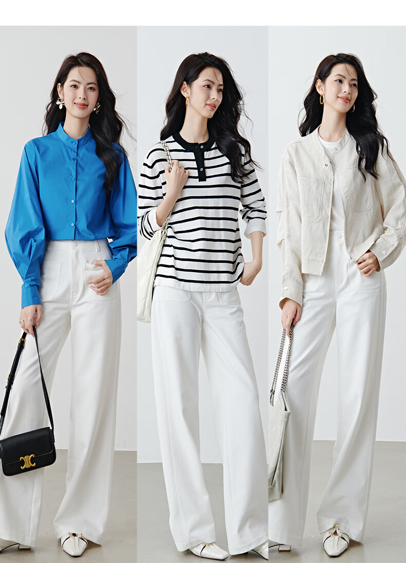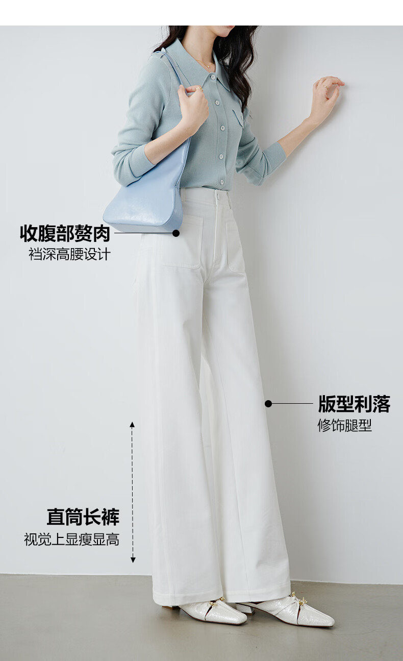 晚白2026年春款高支棉高腰白色牛仔裤宽松显瘦窄版阔腿裤女 白色 26
