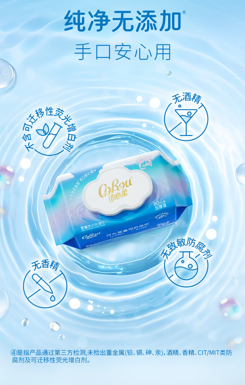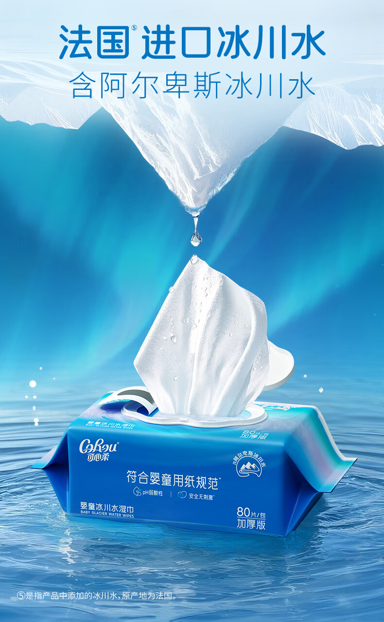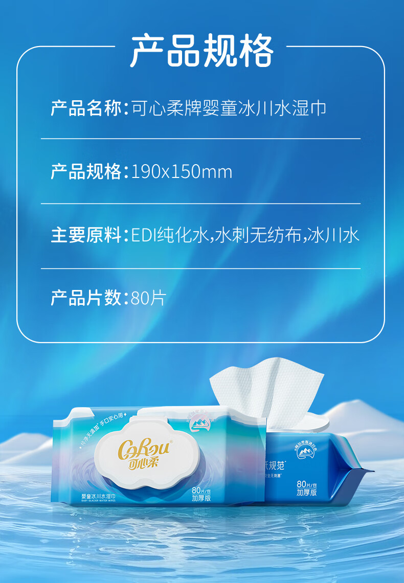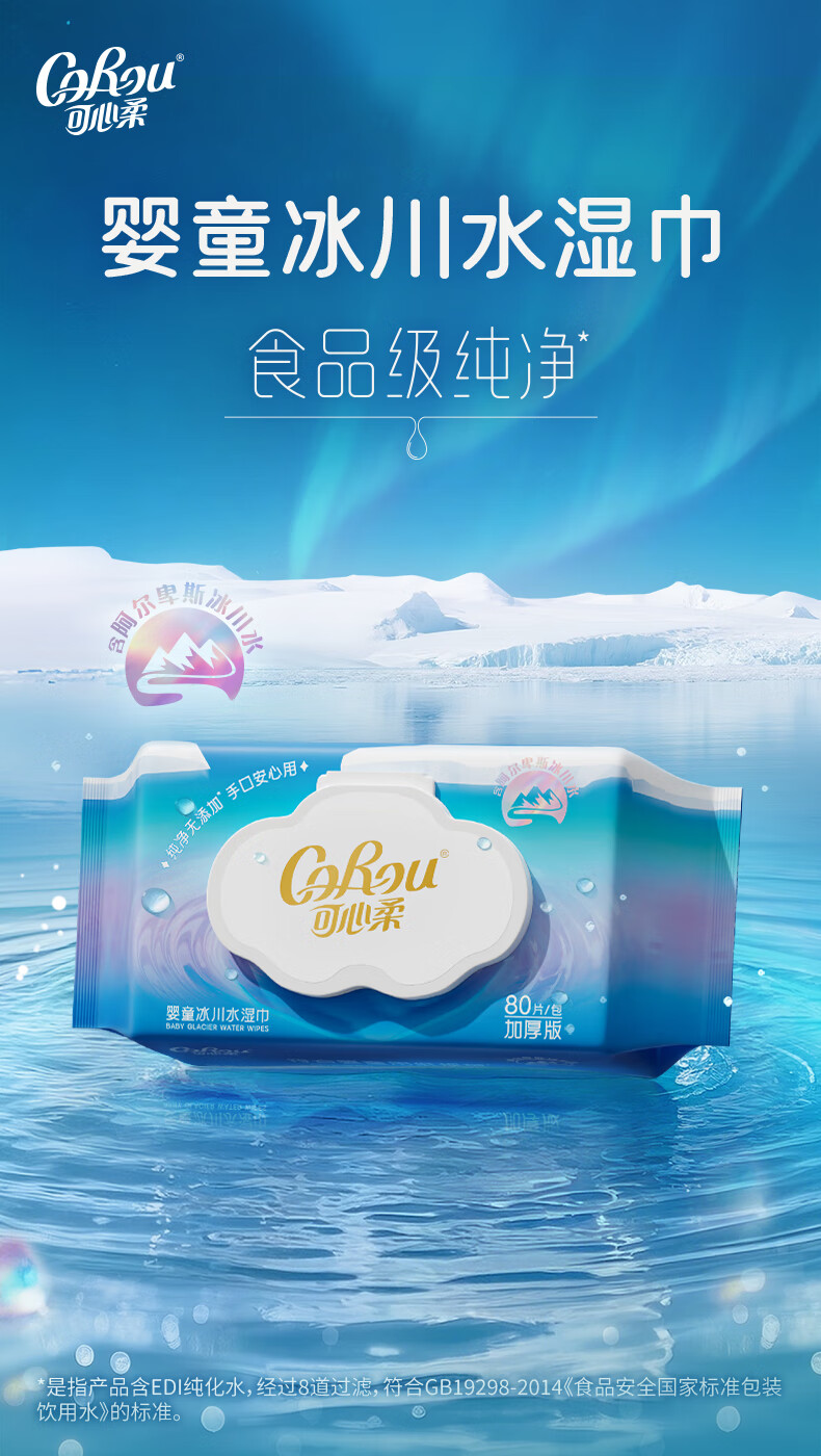 可心柔湿巾婴儿手口湿纸巾80抽1包冰川加厚湿巾纸婴幼儿适用