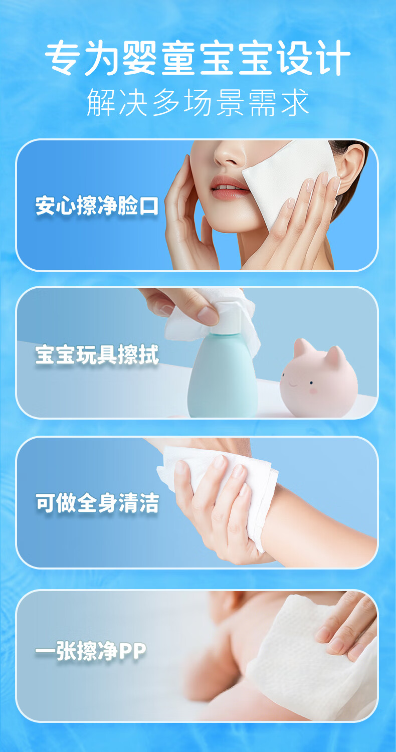 蓬松生活产妇日常护理湿巾家用大包婴儿擦屁屁专用湿纸巾儿童清洁母婴用品 【经典款】蓝色80抽/包*10包
