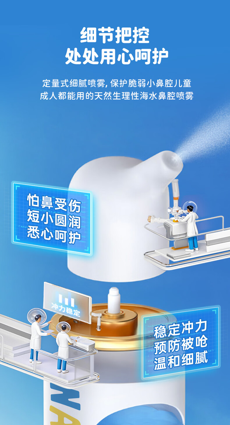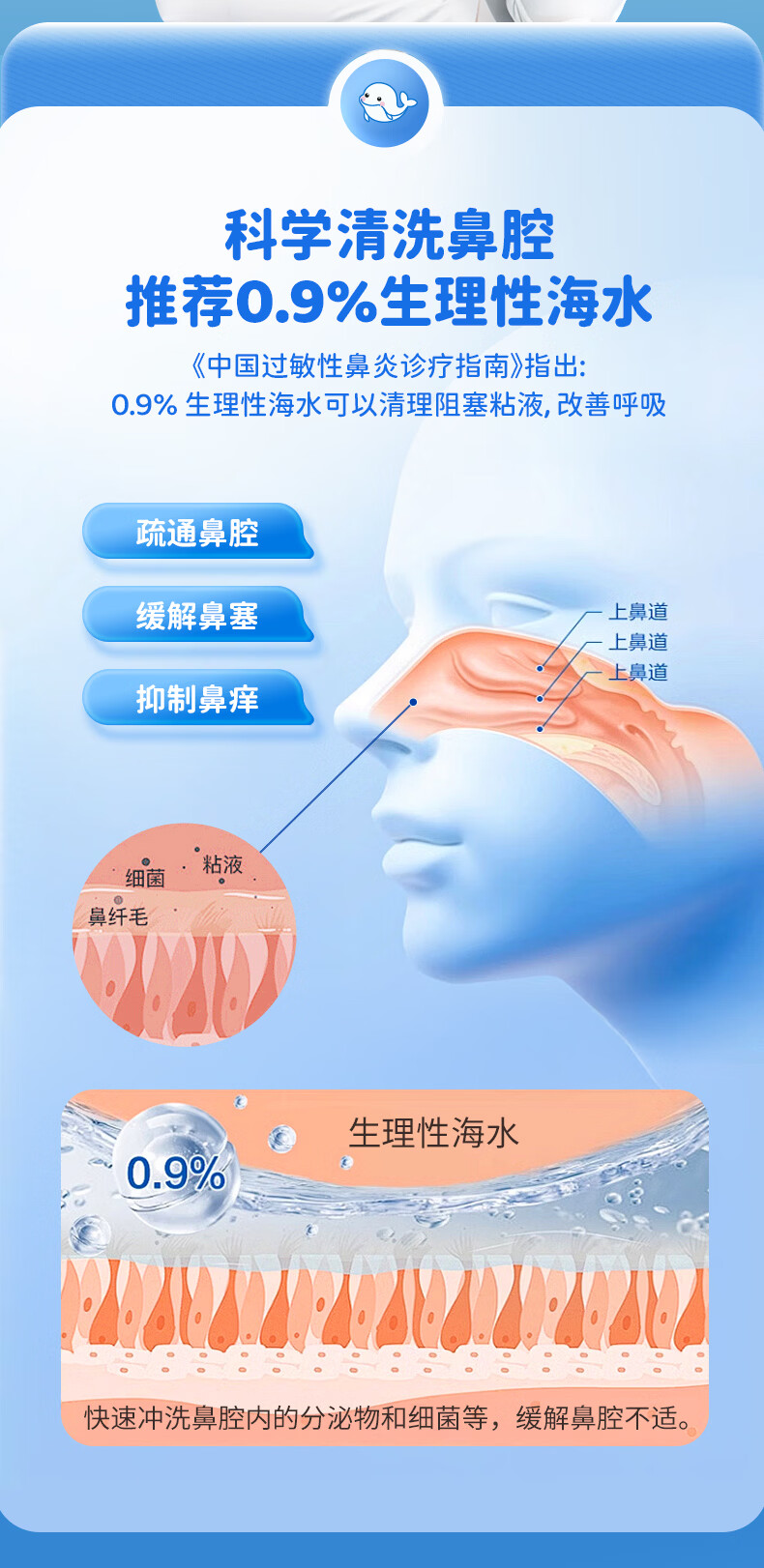 sister care婴儿生理盐水洗鼻器儿童海盐水喷鼻冲洗器鼻塞鼻腔喷雾冲鼻器80mL