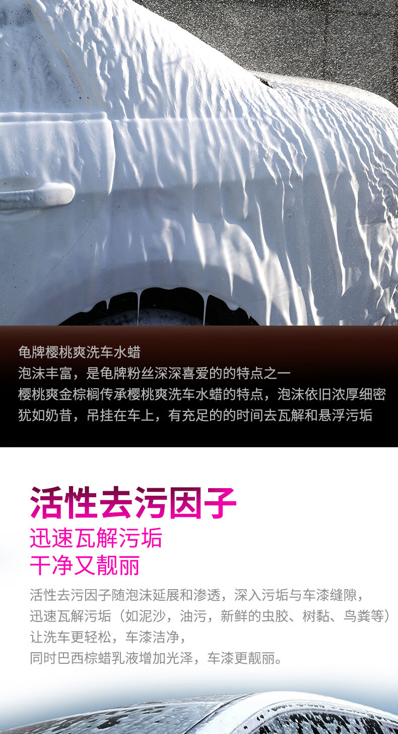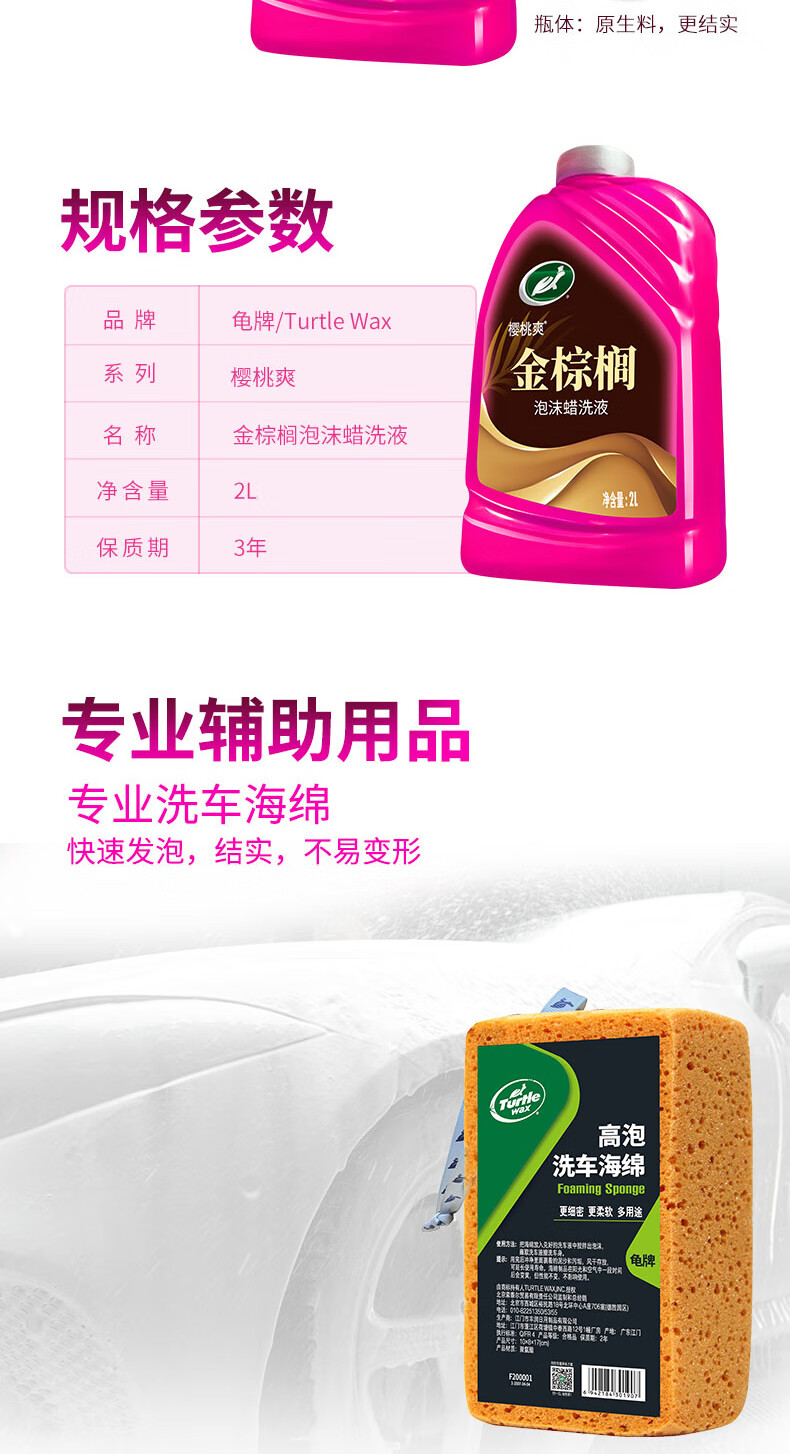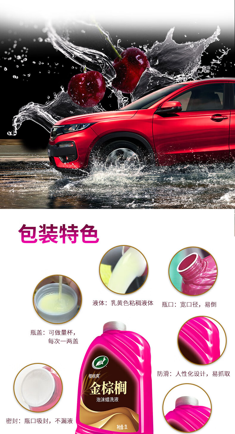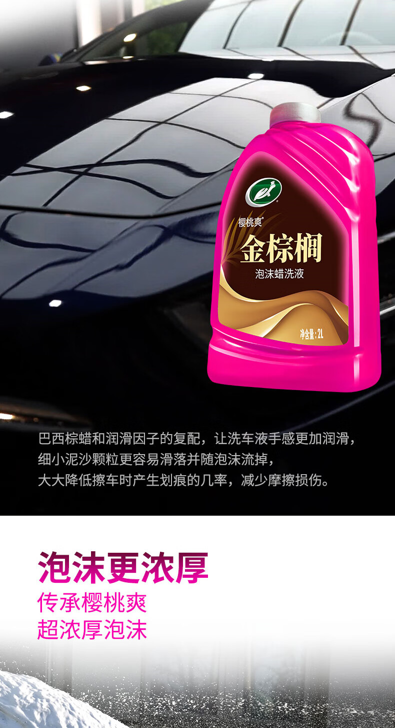 龟牌(Turtle Wax)樱桃爽金棕榈2L洗车液水蜡汽车去污高泡沫清洗剂套装 400704