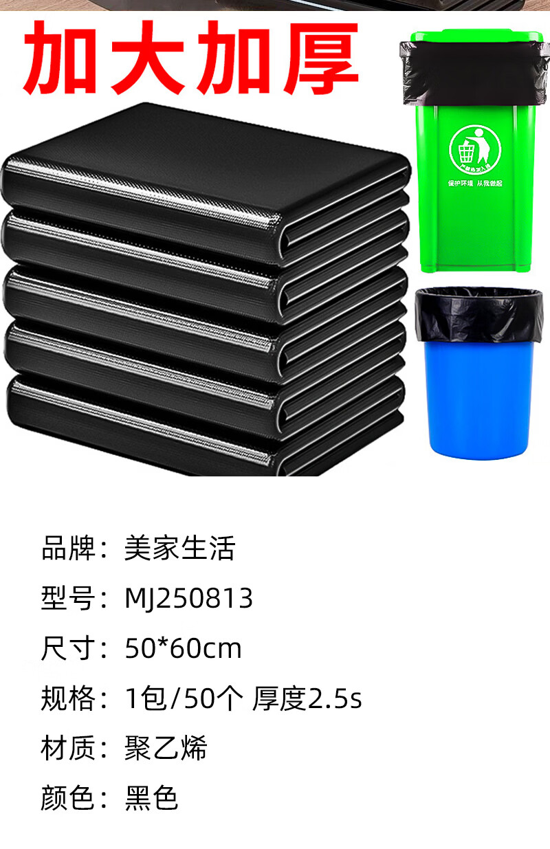 美家生活MJ250813 50个【黑宽50x长60x厚2.5丝】垃圾袋(计价单位:个)黑色