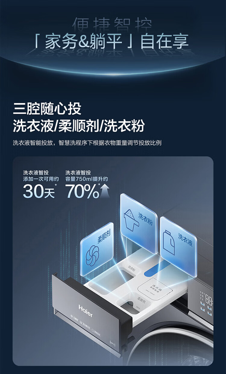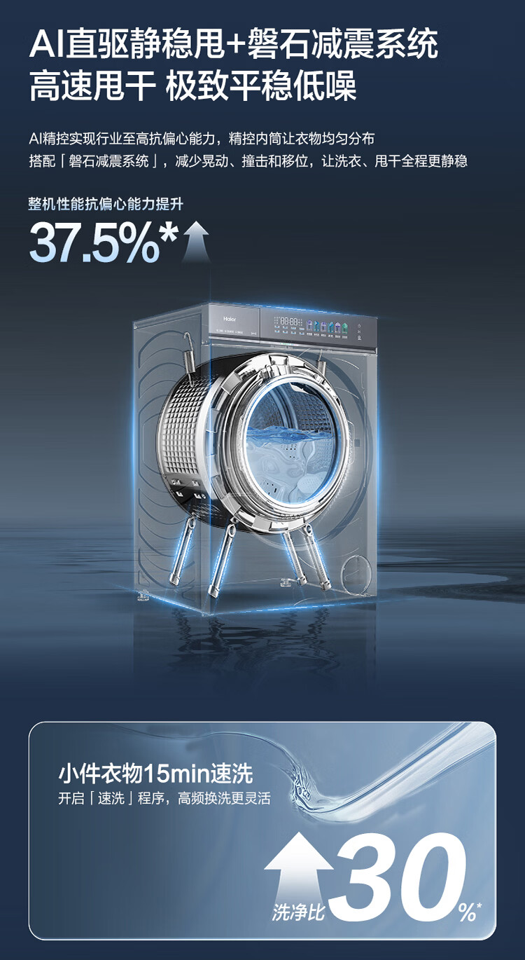 海尔(Haier)云溪5.0滚筒 D1洗烘套装10公斤/12公斤 AI直驱滚筒洗衣机全自动+双擎热泵烘干机 家电换新补贴 7AD1+7AD3 云溪5.0洗烘套装10公斤