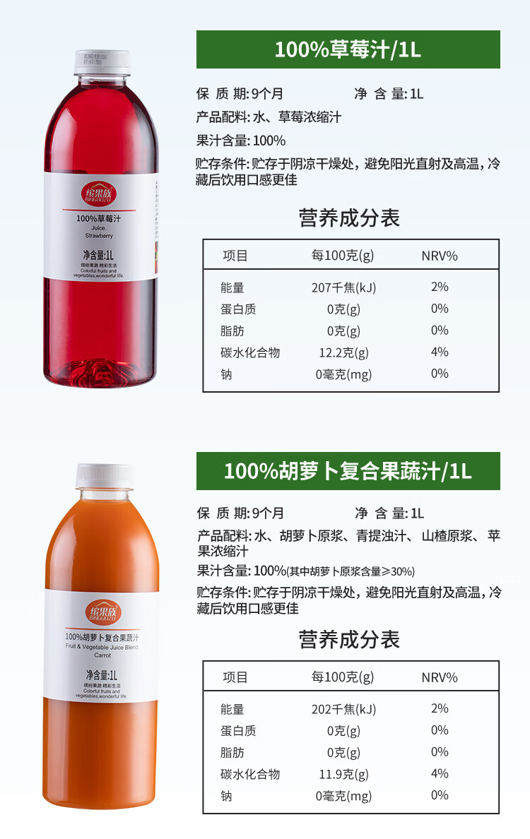 缤果族果汁饮料100%阳光玫瑰草莓山楂苹果整箱批发1L 总仓发 【果蔬汁组合】番茄1瓶+胡萝卜1瓶