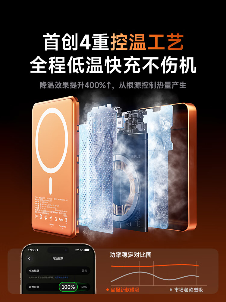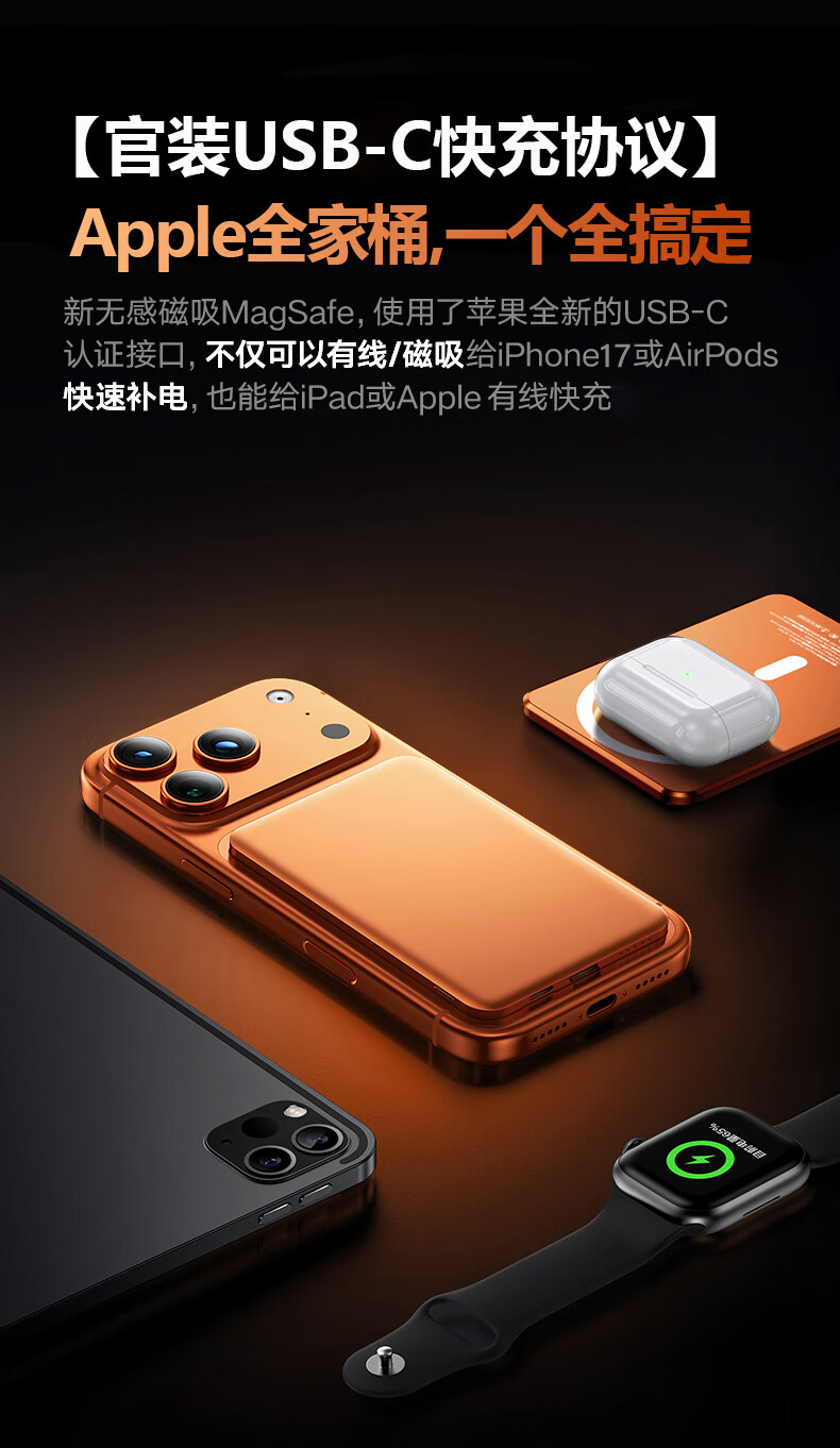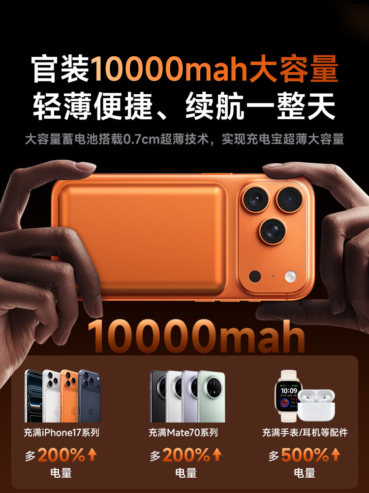 SOULUX【新国标3C认证】MagSafe苹果磁吸充电宝10000毫安可上飞机高铁轻薄便携20w超级快充无线移动电源 【爱马仕橙】10000毫安 | 可上飞机 2026新款 | 原版正装1:1全功能