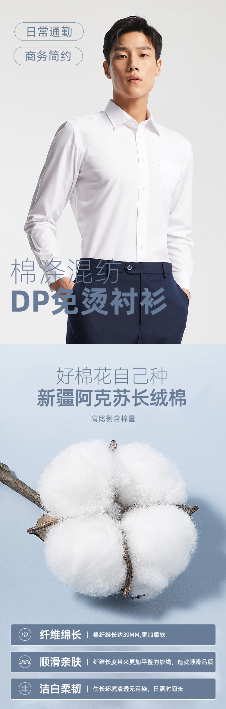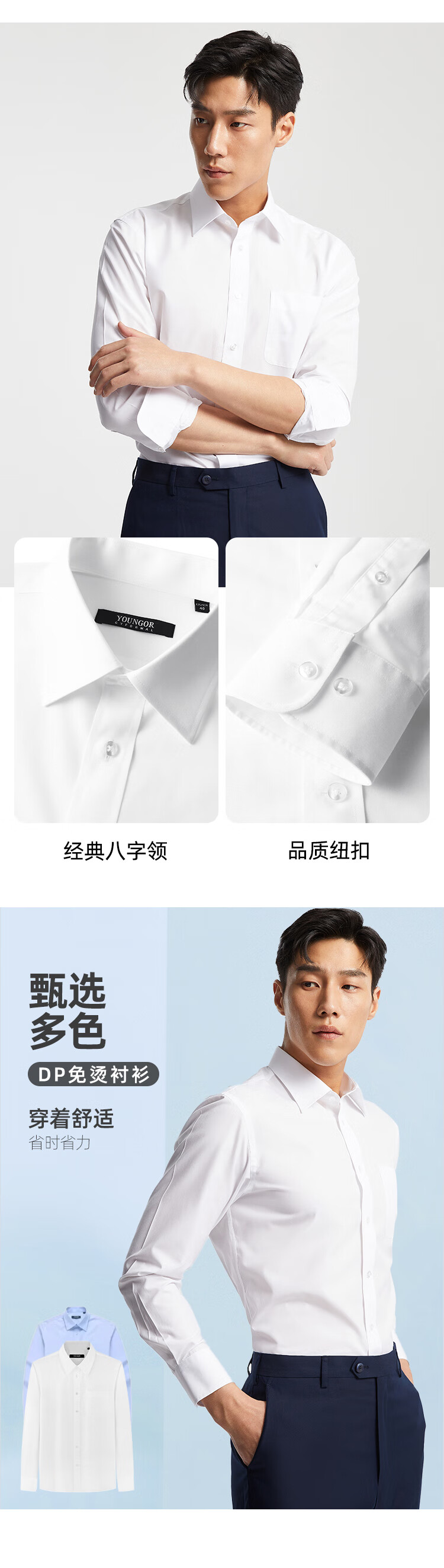 雅戈尔(YOUNGOR)2026四季免烫抗皱不易皱纯色商务休闲通勤男长袖衬衫 白色GLVP19001BBA 41